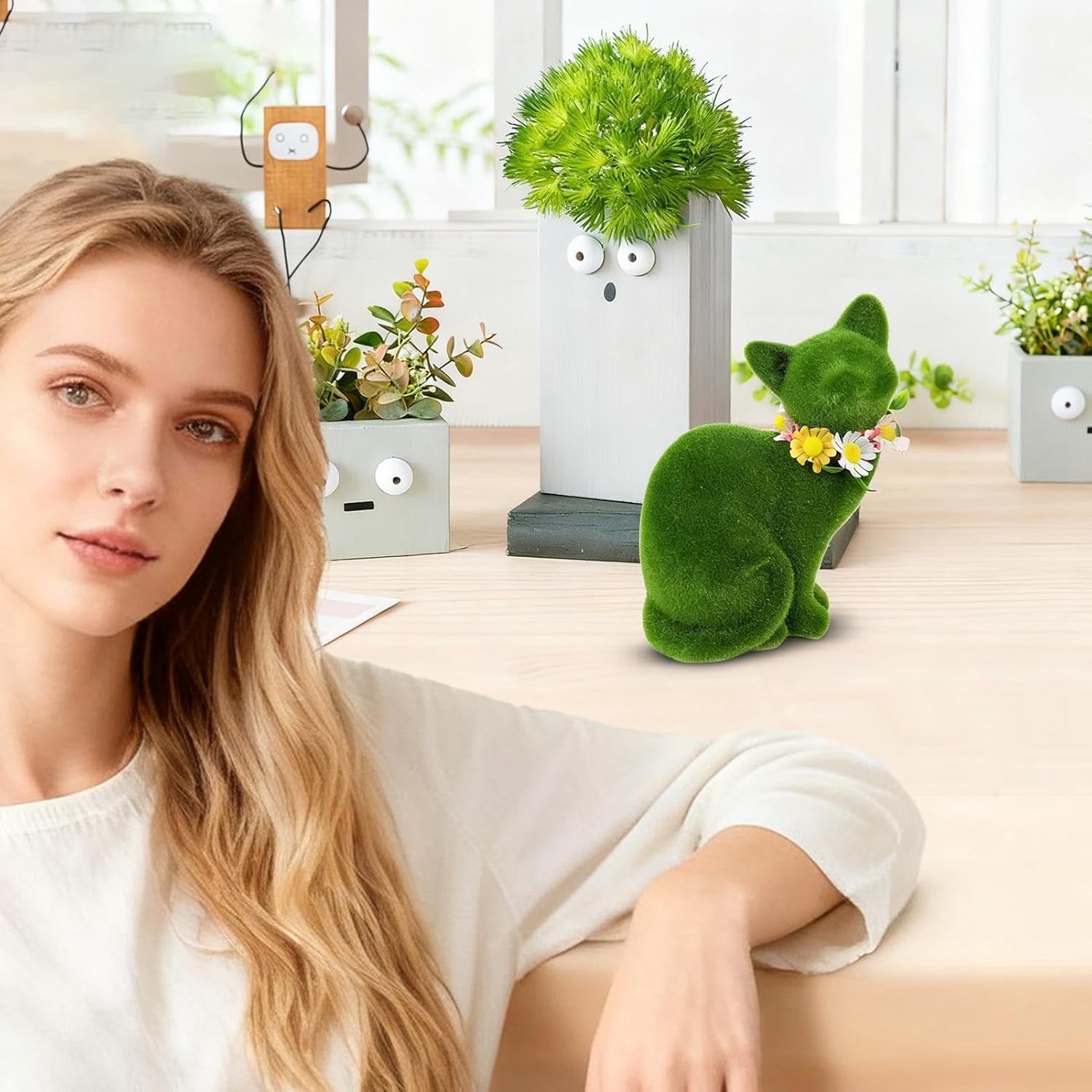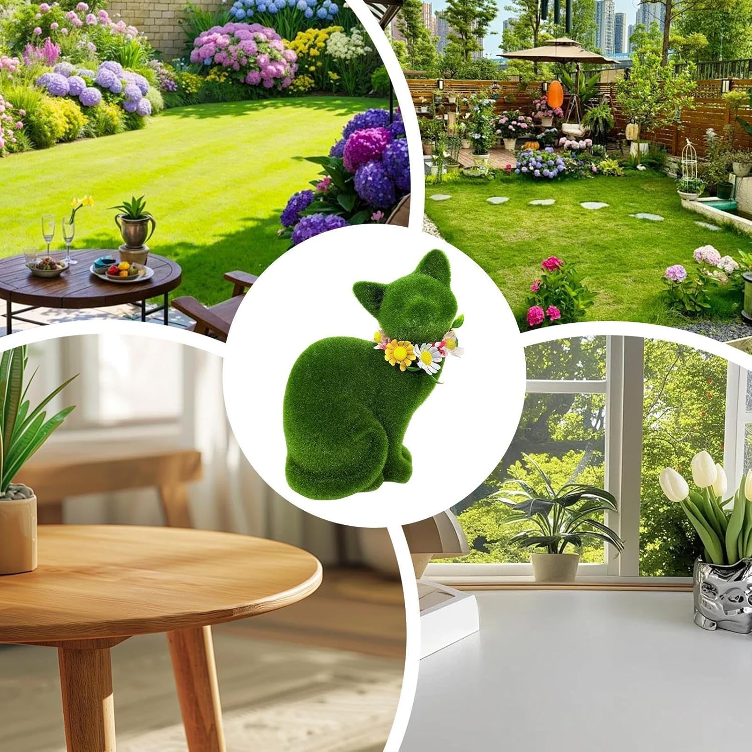 Design realistico del gatto: realizzata con materiale felpato verde ben curato, questa statua da giardino per gatti vanta un design realistico e giocoso, che funge da vivace pezzo d'accento che migliora la visibilità e lo stile sia posizionata in giardini, spazi abitativi o aree esterne, portando vita ed energia ovunque esposto Elegante dettaglio decorativo: caratterizzato da un accessorio per il collo realizzato a mano ornato con una corona floreale, queste statue di gatto per giardino confermano la compatibilità multi-stile e offrono una consistenza ricca, migliorando sia l'eleganza che il fascino artistico per migliorare l'estetica del tuo giardino o patio Adattabilità per tutte le stagioni: questa statua di gatto all'aperto presenta una struttura in resina di lunga durata, garantendo un uso duraturo pur essendo forte ma leggera per un facile trasferimento all'interno o all'aperto, rendendolo ideale per giardini, cortili o spazi abitativi per migliorare l'arredamento con finitura resistente allo sbiadimento durata in varie condizioni atmosferiche senza perdere il suo fascino nel tempo Idea regalo premurosa: caratterizzate da disegni adorabili e pregevole fattura, queste statue di gatti da giardino sono ottimi regali per le vacanze che comunicano calore e premurosità, arricchendo gli spazi esterni creando ricordi duraturi tra i destinatari in vari scenari Grande vestibilità per piccoli spazi: progettata con una dimensione compatta e versatile, questa statua di gatto floccato offre opzioni di posizionamento flessibili, si adatta perfettamente a piccoli spazi come davanzali o librerie, migliorando l'atmosfera mentre funge da delizioso espositore da scrivania in varie impostazioni