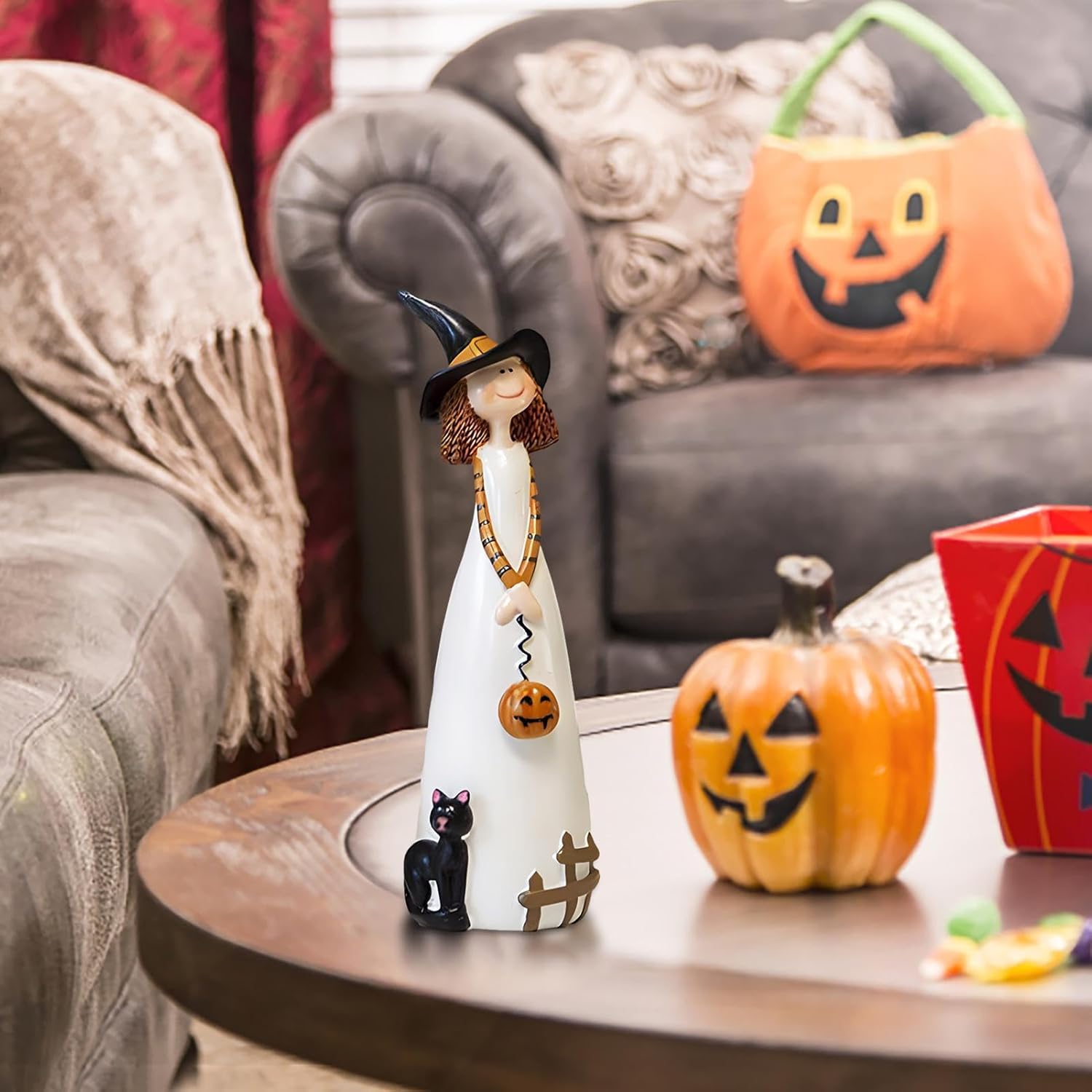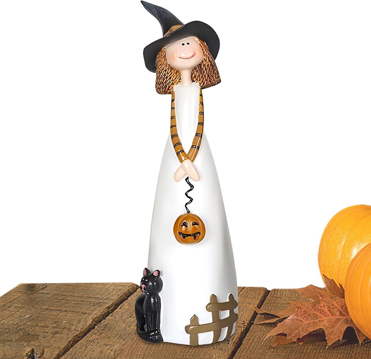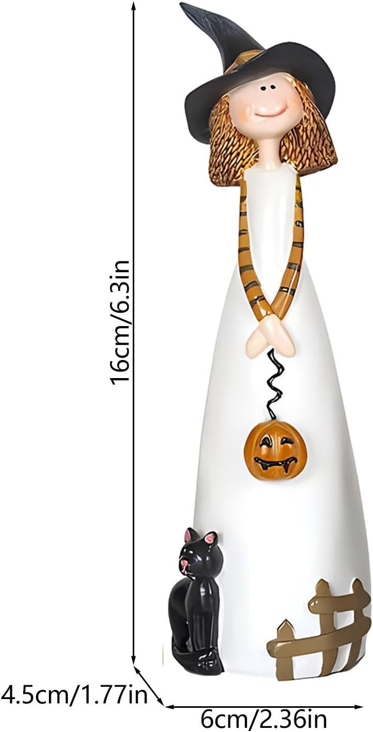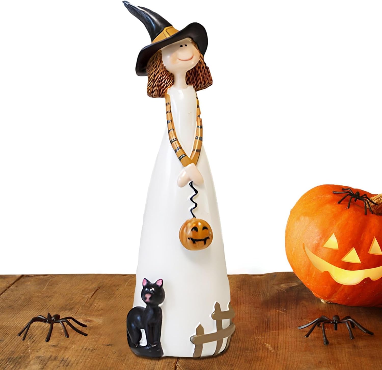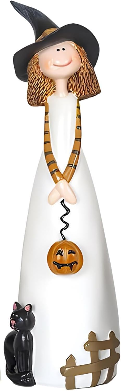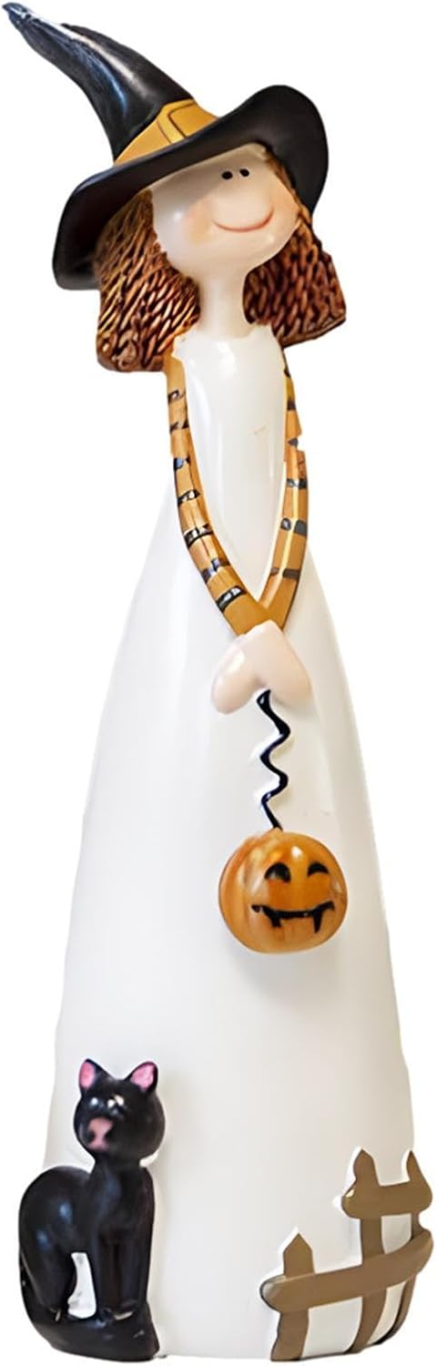 Simpatica statua della strega: questa decorazione festosa per la casa porta un design pronto per le vacanze con il classico fascino di Halloween, rendendola un pezzo decorativo adatto per il tuo salotto o la tua cucina durante la stagione. Design ricco di accessori: evidenziata da accenti di ragno, zucca e felino abbinati a un look ispirato alla scopa, questa statua vanta sculture dettagliate e un elegante cappello a cilindro per l'arredamento stagionale. Opzioni di esposizione versatili: progettata per fornire opzioni di esposizione versatili, questa statua della strega di Halloween combina la vibrante lavorazione artigianale della resina con una base stabile, a condizione che si adatti perfettamente a varie ambientazioni ispirando la creatività dell'arredamento autunnale. Affidabile e accattivante: presenta un'ampia base resistente alla punta realizzata con materiale affidabile, che fornisce stabilità e longevità alla decorazione della tua statua della strega di Halloween pur mantenendo la pregevole fattura e i dettagli dipinti per un display sorprendente. Atmosfera festosa indispensabile: progettata per l'uso su mensola o scaffale, questa statua della strega di Halloween eleva l'atmosfera della casa stregata, creando un'atmosfera festosa coinvolgente e mostrando al contempo la sua ampia applicazione in varie composizioni di decorazioni a tema spettrale