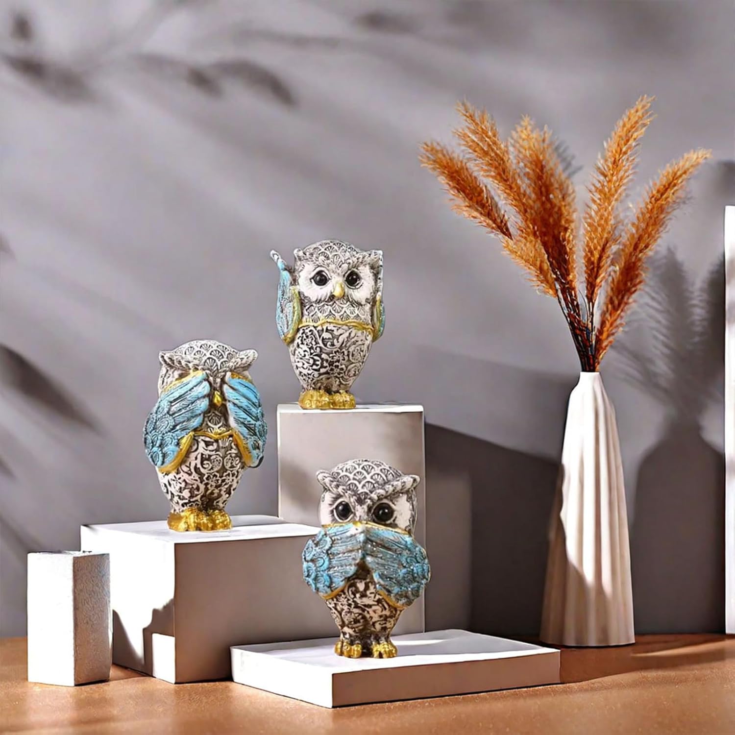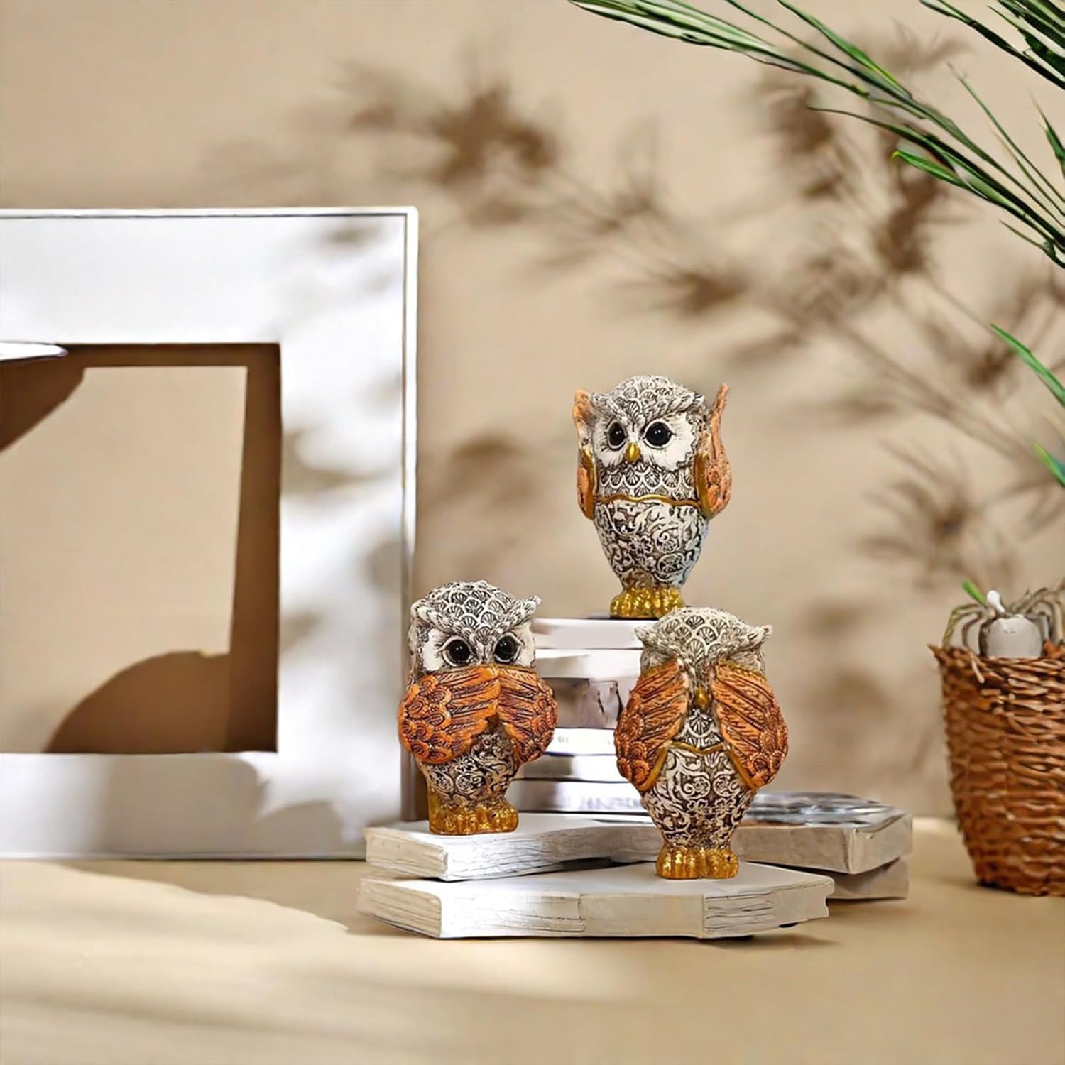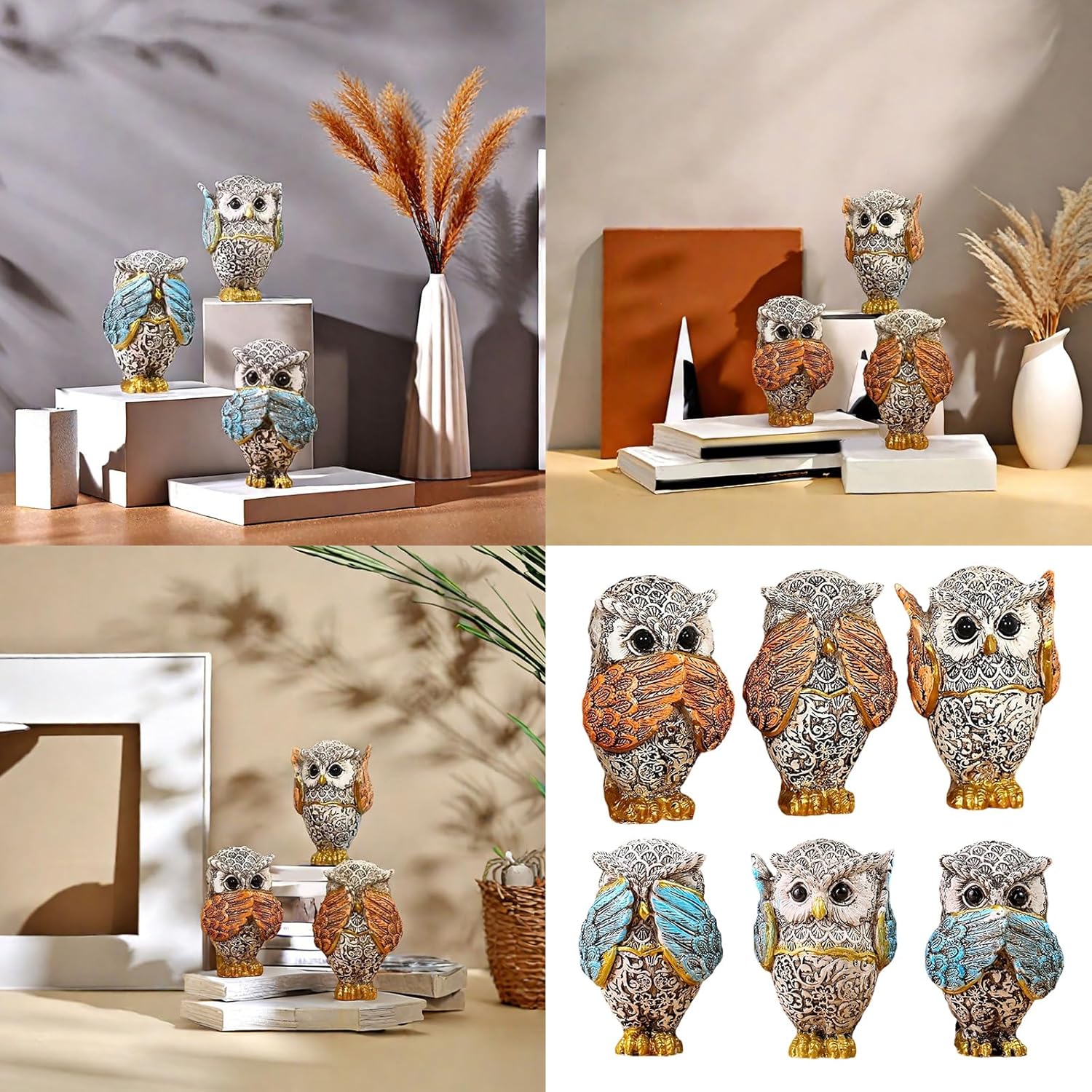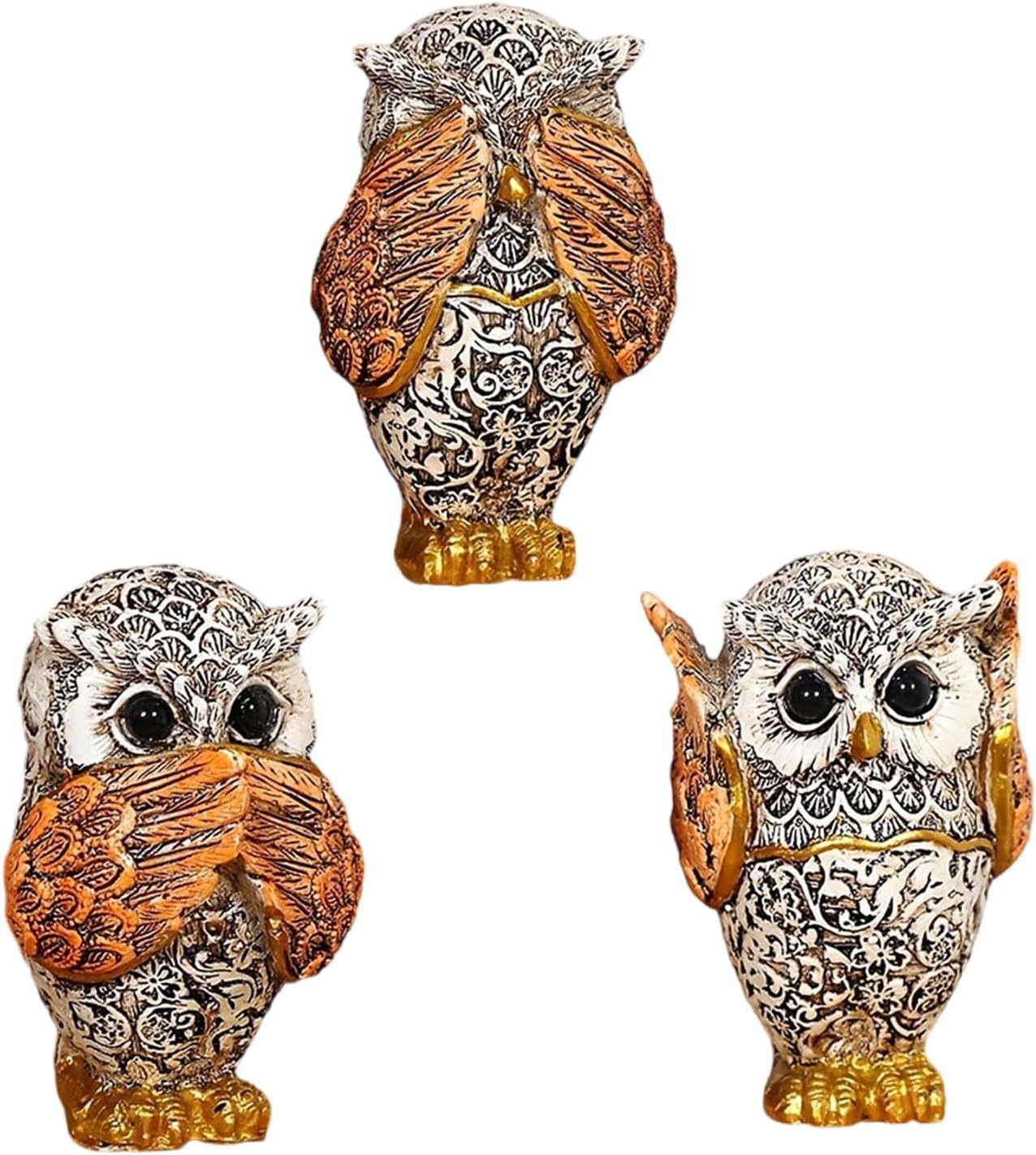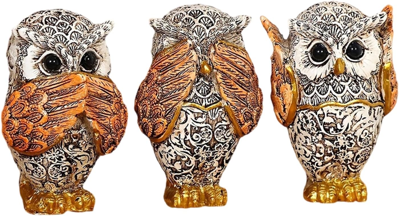 in interni o all'aperto, queste sculture animali fungono da grandi oggetti decorativi e si fondono perfettamente nell'ambiente e nel giardino Perfetto per gli appassionati di natura e arte e questi personaggi per gli individui che apprezzano, personalizzati ed eleganti decorazioni per la casa Ideale per diversi ambienti come soggiorno, ufficio, libreria o camera da letto, queste decorazioni a forma di gufo aumentano l'estetica generale di qualsiasi stanza Migliora la decorazione della tua casa con i personaggi a 3 pezzi di gufo, dispone di un accattivante design "non sentire, non parlare" che conferiscono a ogni stanza un'artista unica Artigianato realizzato con resine di alta qualità, queste statue di gufo sono di qualità e dettagliate, facili da pulire e mantenere la loro bellezza nel tempo