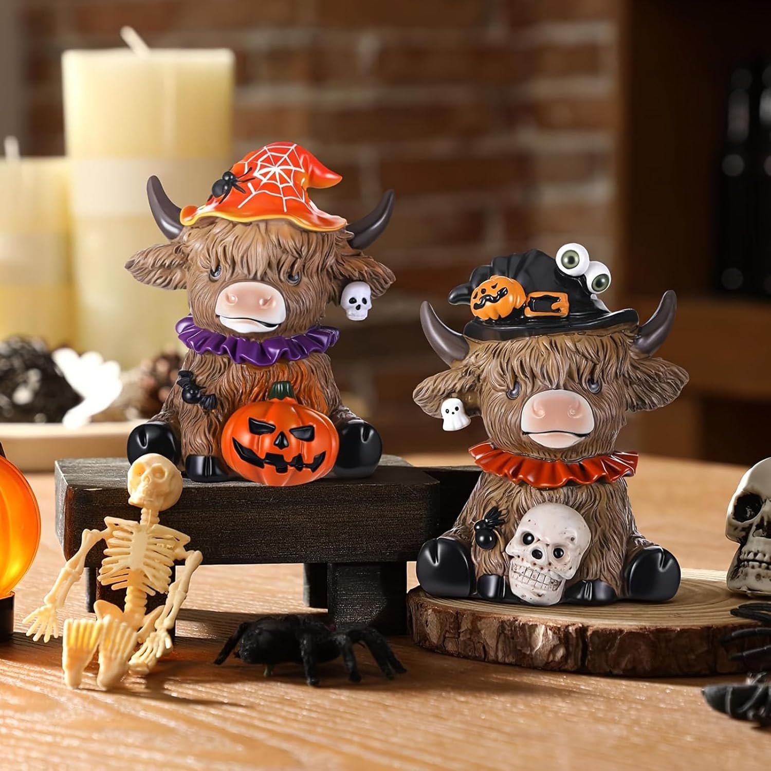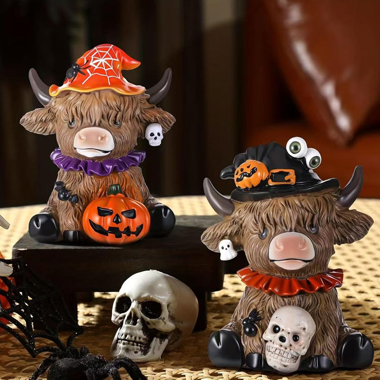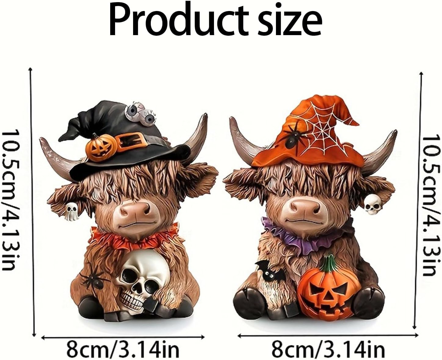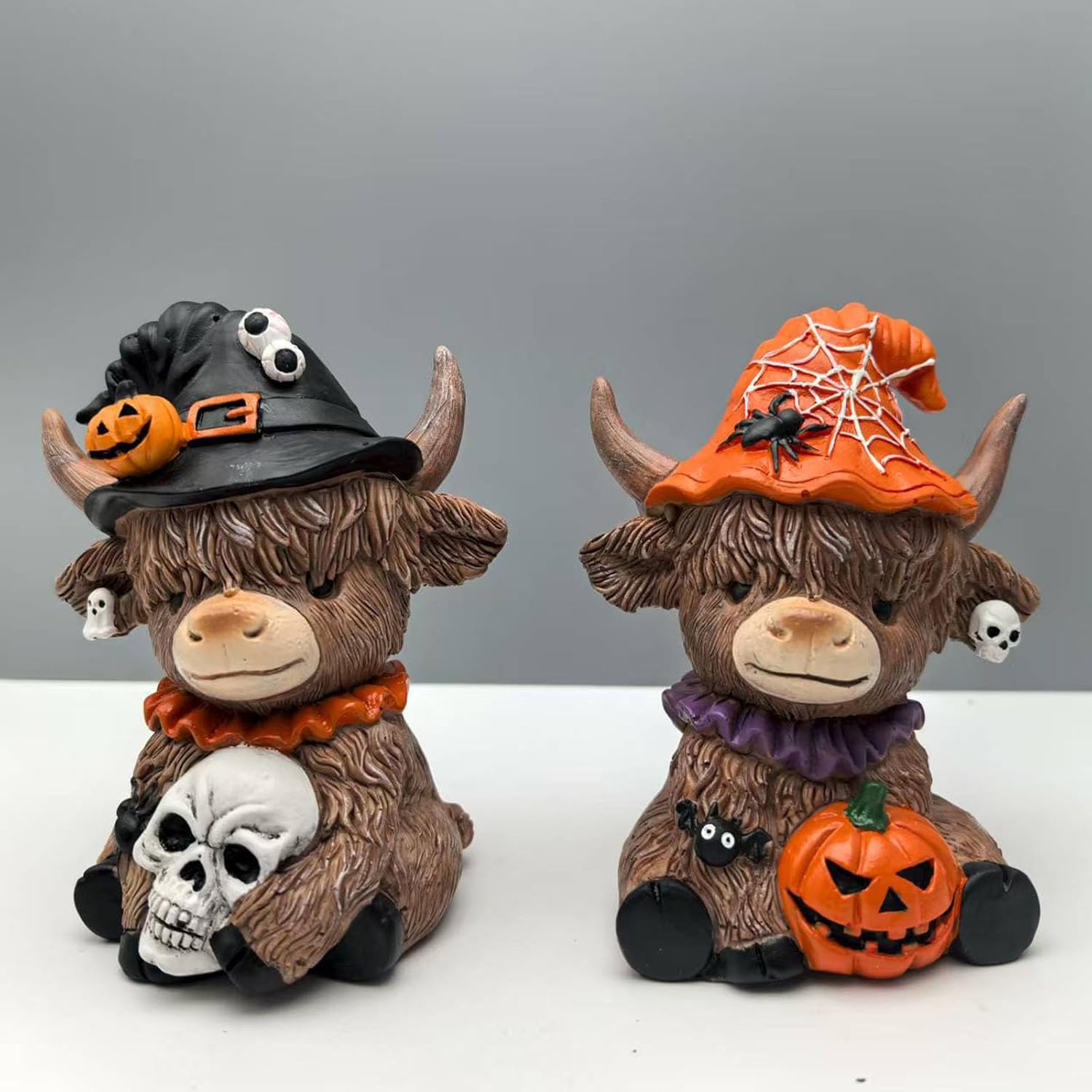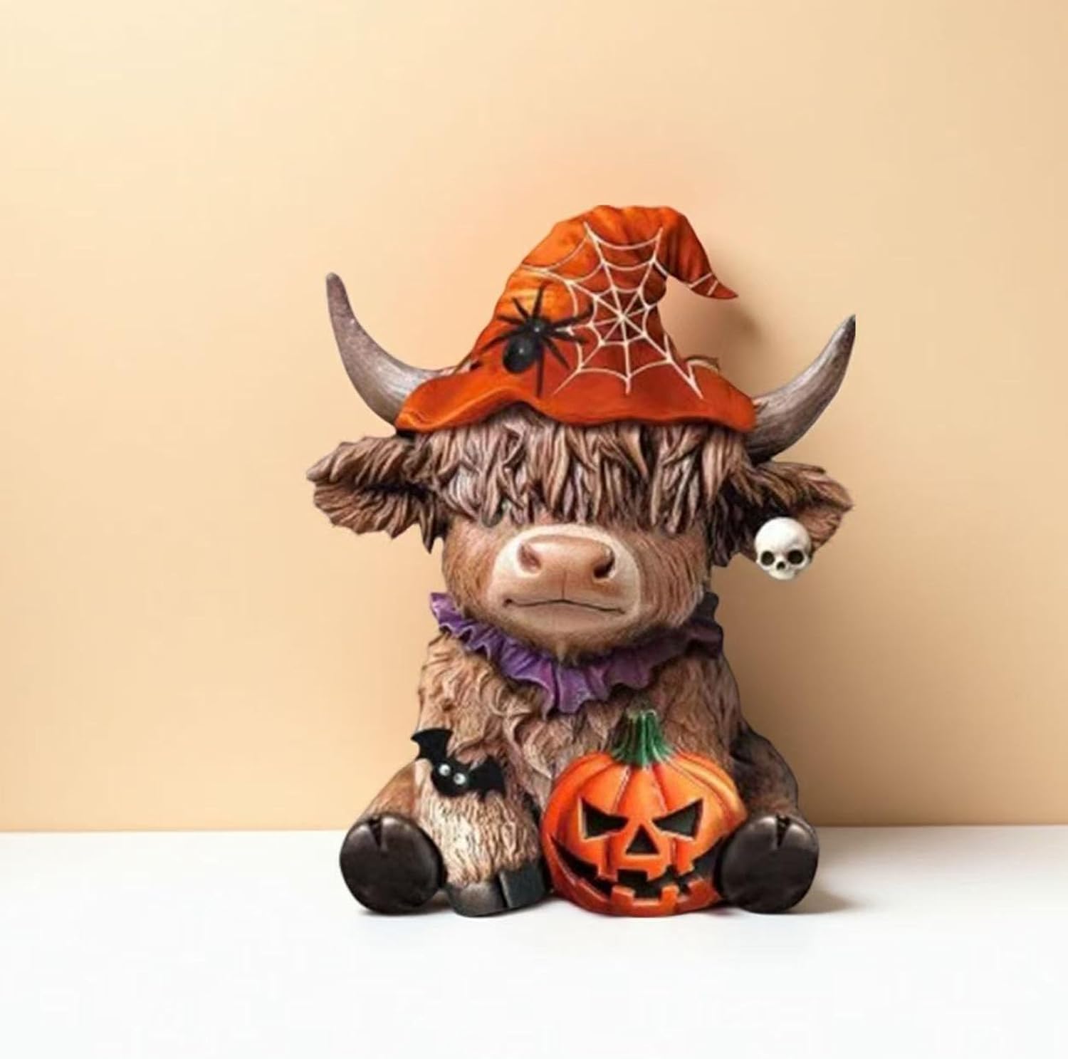 Progettato per gli appassionati di Halloween, gli amanti delle decorazioni per la fattoria e i genitori che cercano accenti natalizi adatti ai bambini che rendano narrativa fantasiosa. Mostralo ben visibile su mantelli, gradini o scrivanie da ufficio per creare un punto focale festivo istantaneo durante Halloween fondendosi perfettamente con decorazioni per la casa a tema. Questa opera d'arte multifunzionale funge anche da divertente inizio di conversazione per tutto l'anno, stravagante con l'estetica paesaggistica per collezionisti di sculture decorative uniche. Migliora le tue decorazioni di Halloween con questa statua di mucca dell'altopiano realizzata a mano con cappello da strega, realizzata in resina sintetica di alta qualità per durata e dettagli duraturi. Questa statua resistente agli agenti atmosferici con una trama strutturata realistica mantiene l'integrità del colore all'interno o all'esterno richiedendo una spolverata minima