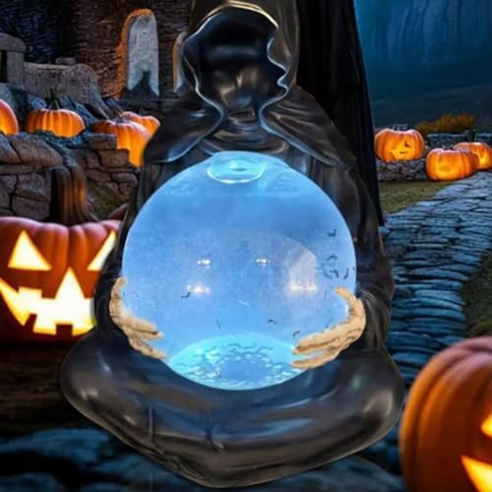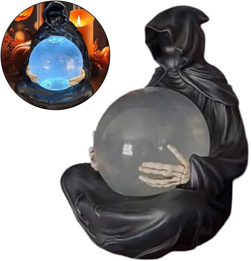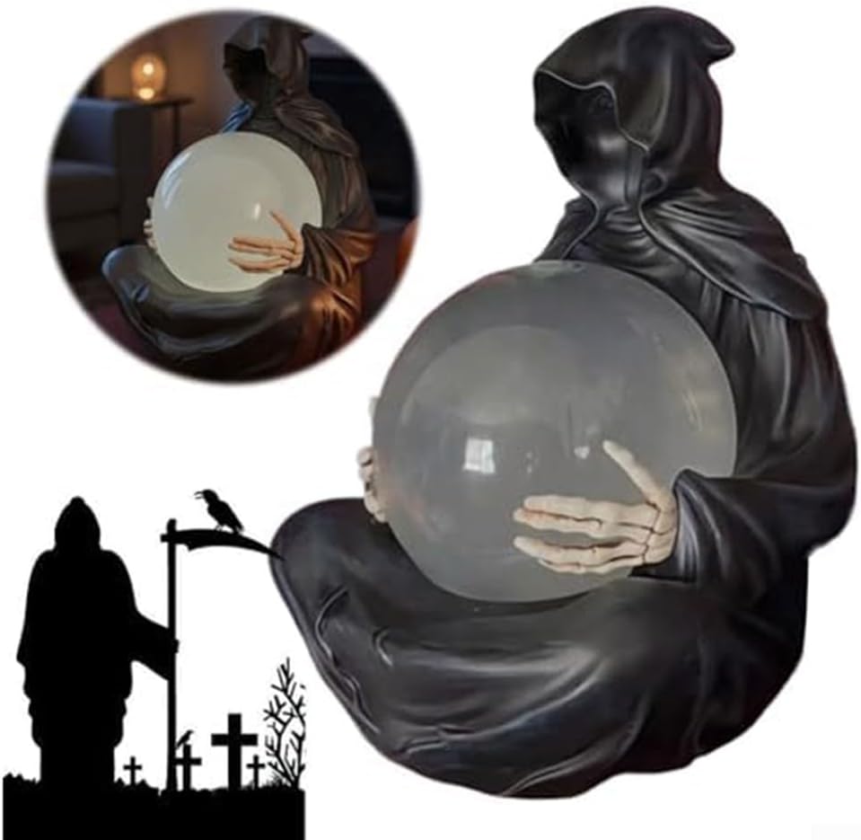 [Centrotavola luminoso] Caratterizzata da un'incantevole sfera che emette una luce soffusa, questa decorazione proietta una luce inquietante che valorizza magnificamente qualsiasi ambiente. [Miniature fluttuanti] La palla contiene delicate miniature che sembrano fluttuare e muoversi, creando un'esperienza visiva coinvolgente che affascina gli spettatori e aggiunge fantasia al tuo arredamento. [Statua mistica di Grimm] Con il suo design oscuro e l'assenza di una faccia da teschio, questa statua di Grim combina una bellezza inquietante con uno stile moderno, rendendola un'aggiunta accattivante alla tua collezione. [Esponilo ovunque] Perfetta da posizionare su scaffali, scrivanie o altari, questa decorazione funge sia da spettrale accento di Halloween che da pezzo da esposizione per tutto l'anno. [Per collezionisti macabri] Questa caratteristica statua di Grim piacerà agli appassionati di estetica o a chiunque desideri incorporare temi oscuri nel proprio ambiente domestico.