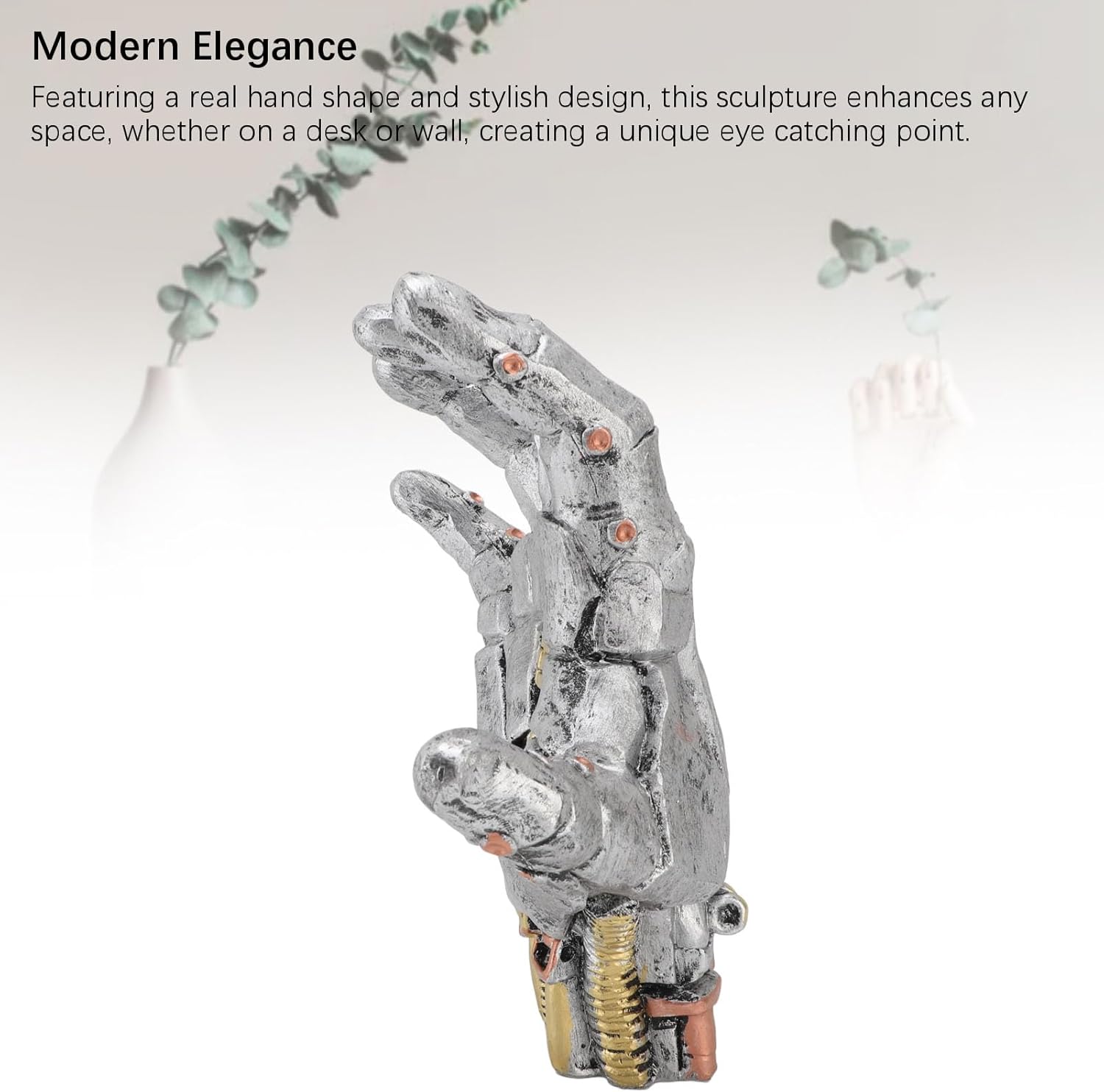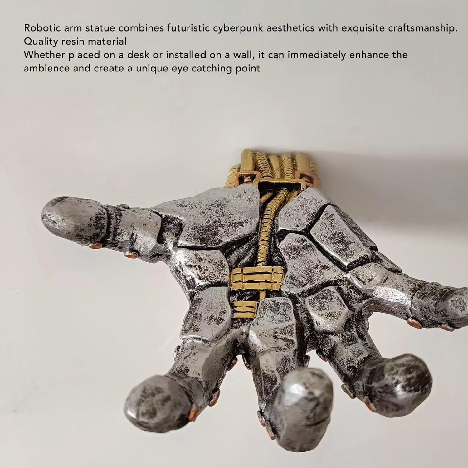 [Futuristic Aesthetics] sperimenta una fusione di estetica cyberpunk e squisita artigianato con questa statua meccanica delle mani, scatenando visioni di un futuro accattivante. [Resin Craft] Realizzato in resina di qualità, questa scultura a mano robot vanta un design intricato e una costruzione robusta, garantita per impressionare tutti gli osservatori. [Eleganza moderna] Eleva qualsiasi spazio con questa elegante scultura a forma di mano, trasformando scrivanie e pareti in punti accattivanti unici che migliorano l'arredamento. [Per gli appassionati] Ideale per i giocatori, gli appassionati di cyberpunk e coloro che apprezzano l'arredamento unico, questa statua è un per varie occasioni, tra cui Natale e compleanni. [Ambience Enhancer] Trasforma istantaneamente gli spazi ordinari in ambienti straordinari con un tocco moderno, edificando il tuo ambiente con questa scultura meccanica delle mani.