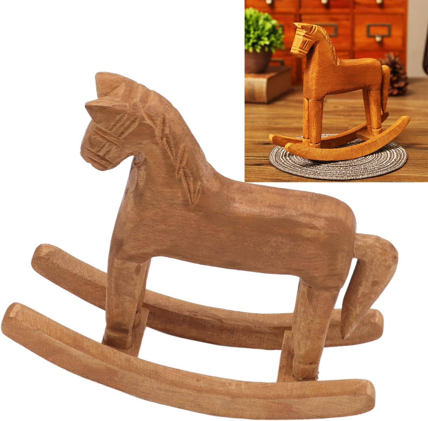 MATERIALE PREMIUM: La scultura del cavallo di Troia è realizzata in legno di pino di prima qualità, resistente all'usura, robusto e bello. Regali per bambini: decorazione da tavolo con cavallo a dondolo in legno, semplice e carina, regala ai tuoi bambini un sogno da favola. Significa il cavallo riuscirà. Buona fortuna: il cavallo a dondolo in legno è un bello ed elegante, ottimo come per parenti e amici, significa buona fortuna e successo. Ampia gamma di scene: lo stile del cavallo a dondolo in legno è unico e carino, adatto per la visualizzazione di decorazioni, adatto per essere posizionato in corridoio, camera da letto, ufficio, ecc. REALIZZATO CON ESPERIENZA: Il cavallo a dondolo in legno è intagliato e scolpito a mano con meticolosa attenzione ai dettagli.