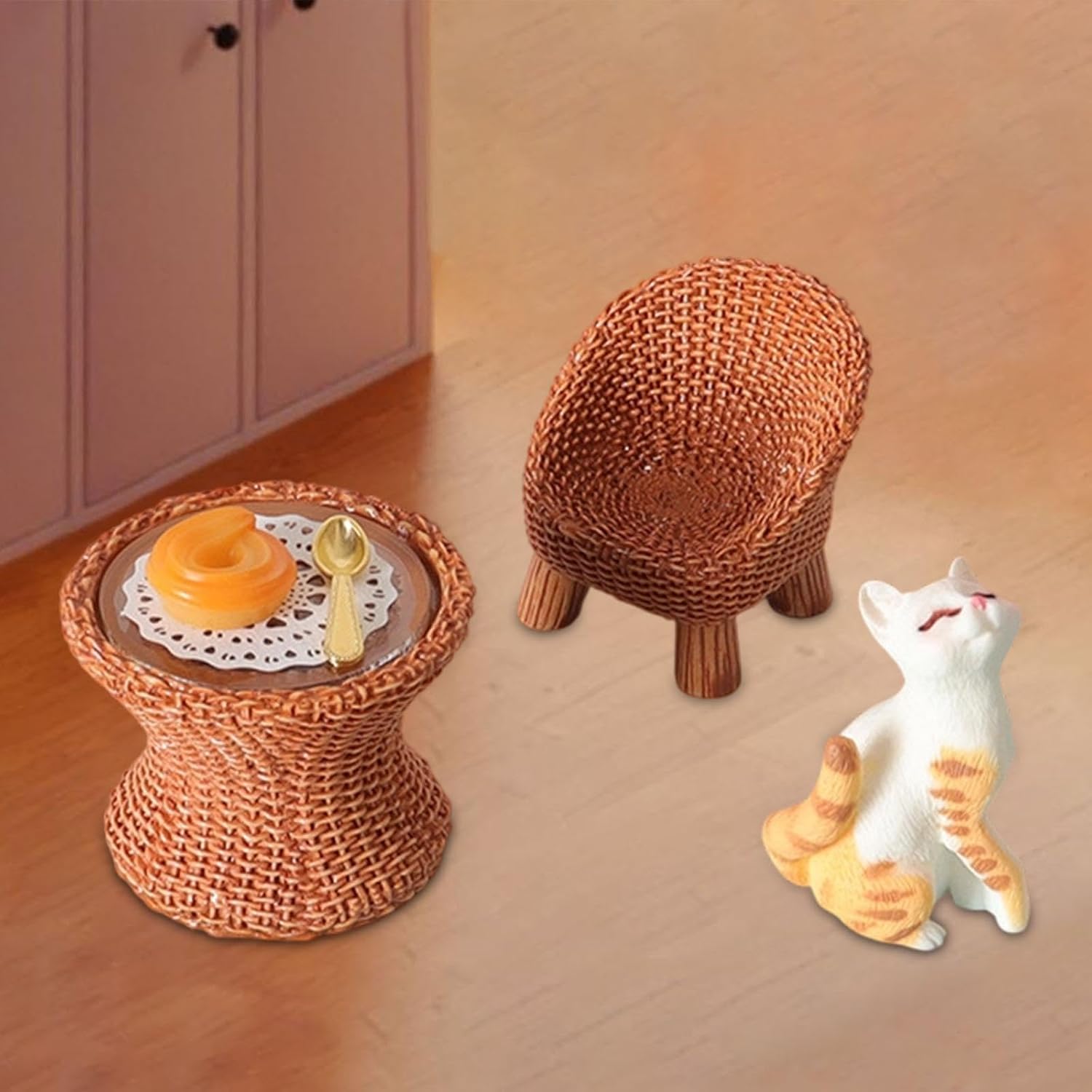 【Multiuso】I set da tavolo da pranzo in miniatura sono adatti per costruire giocattoli con scenari di tavoli di sabbia, modellini di treni, modelli architettonici, giardini delle fate, micro paesaggi, modelli di scene fai-da-te, ecc. 【Design classico】: la decorazione della scena in miniatura include tavolo, sedia, piatto di cibo, tovaglietta e 【Adorabile figurina di gatto】: questa mini figurina di gatto aggiunge un tocco di stravaganza e personalità alla tua scena, rendendola la compagna perfetta per i residenti della tua casa delle bambole o un pezzo eccezionale nella tua collezione 【Materiale】: Mobili per case delle bambole realizzati in resina e lega, questo divano per case delle bambole è robusto e duraturo 【Progetti fai da te】: il tavolino e la sedia in miniatura sono un'ottima decorazione per la tua casa delle bambole, creando scene di vita