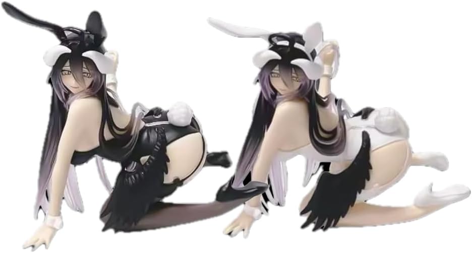 Statuetta Albedo inginocchiata in abito da coniglietto bianco e nero (13 cm) Scultura altamente dettagliata con pittura vivida Statue in PVC da 13 cm, ideali per esporre anime e decorazioni per stanze otaku Regalo da collezione perfetto per i fan di Overlord e gli amanti dei manga