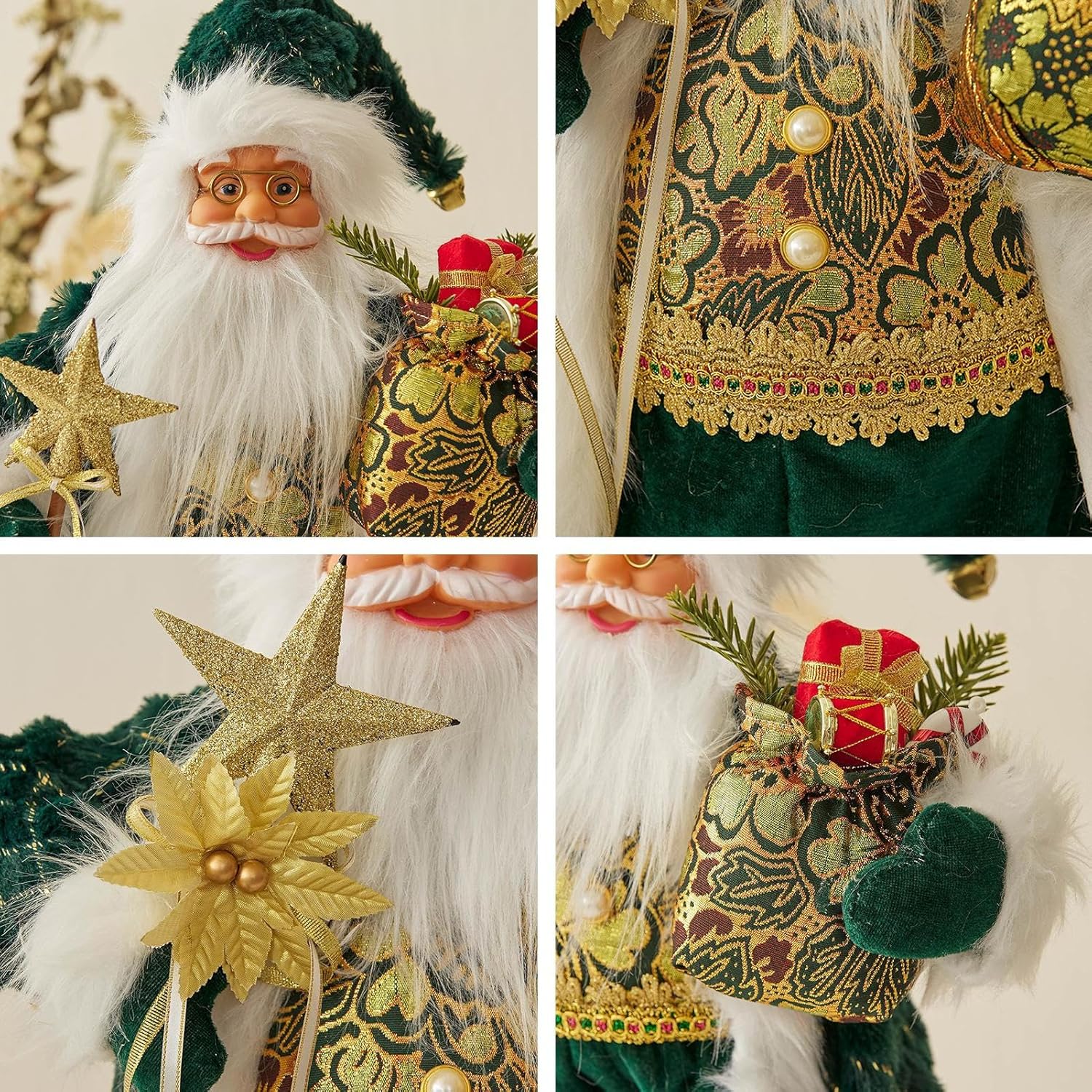 Aspetto poco distintivo: incorporando una miscelazione di colori distintiva Ruolo decorativo: la squisita lavorazione confezionata a mano rende vivido ogni dettaglio, migliora l'atmosfera festosa e conferisce ai tuoi mobili natalizi un forte effetto decorativo Uso a lungo termine: la nostra bambola di Babbo Natale è realizzata con cura con materiali ecologici per garantire durata e sicurezza. Con un design sostenibile, ti garantisce anni di divertimento senza preoccuparti dell'arredamento delle tue vacanze. Regalo ideale: è un regalo ideale per parenti e amici, porta gioia e gioia festosa in ogni casa, rendendolo una deliziosa aggiunta alle decorazioni natalizie. Una vasta gamma di usi: migliora il tuo spazio abitativo con il fascino della nostra bambola di Babbo Natale. Rendi audace la tua scrivania, sala studio, davanzale della finestra, biblioteca o camera da letto con questo adorabile oggetto decorativo. Crea un'atmosfera gioiosa per le vacanze e diffondi gioia a casa o al lavoro
