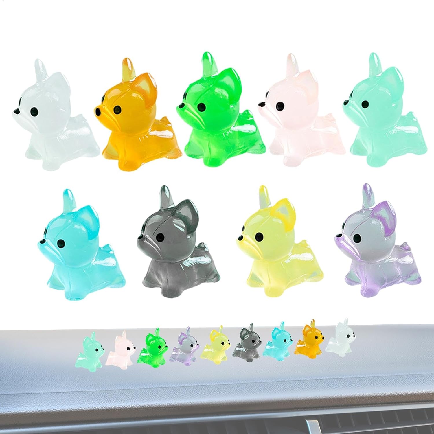 Design delizioso: illumina il tuo spazio con questa deliziosa miniatura di cucciolo in resina Noctilucous, una statuetta affascinante e carina che si illumina al buio e aggiunge personalità al tuo arredamento Cucciolo radioso che si illumina al buio: la nostra miniatura di cane in resina nottilucente è straordinario spettacolo notturno. Posizionali alla luce del sole o alle luci per assorbire abbastanza energia e irradieranno un bagliore accattivante al buio Liscio, robusto: realizzato in resina di alta qualità, progettato con cura e robusto; non facile da rompere o sbiadire, impermeabile, liscio, robusto, garantendo longevità e uso persistente Quantità sufficiente: crea a tuo piacimento con 9 pezzi di figurine Tiny Puppy in 9 colori vivaci, dando ampio spazio alla libertà creativa e all'espressione Ampia applicazione: perfetta per famiglie, coinquilini, compagni di classe e studenti che amano creare decorazioni; condividilo con i tuoi amici e familiari