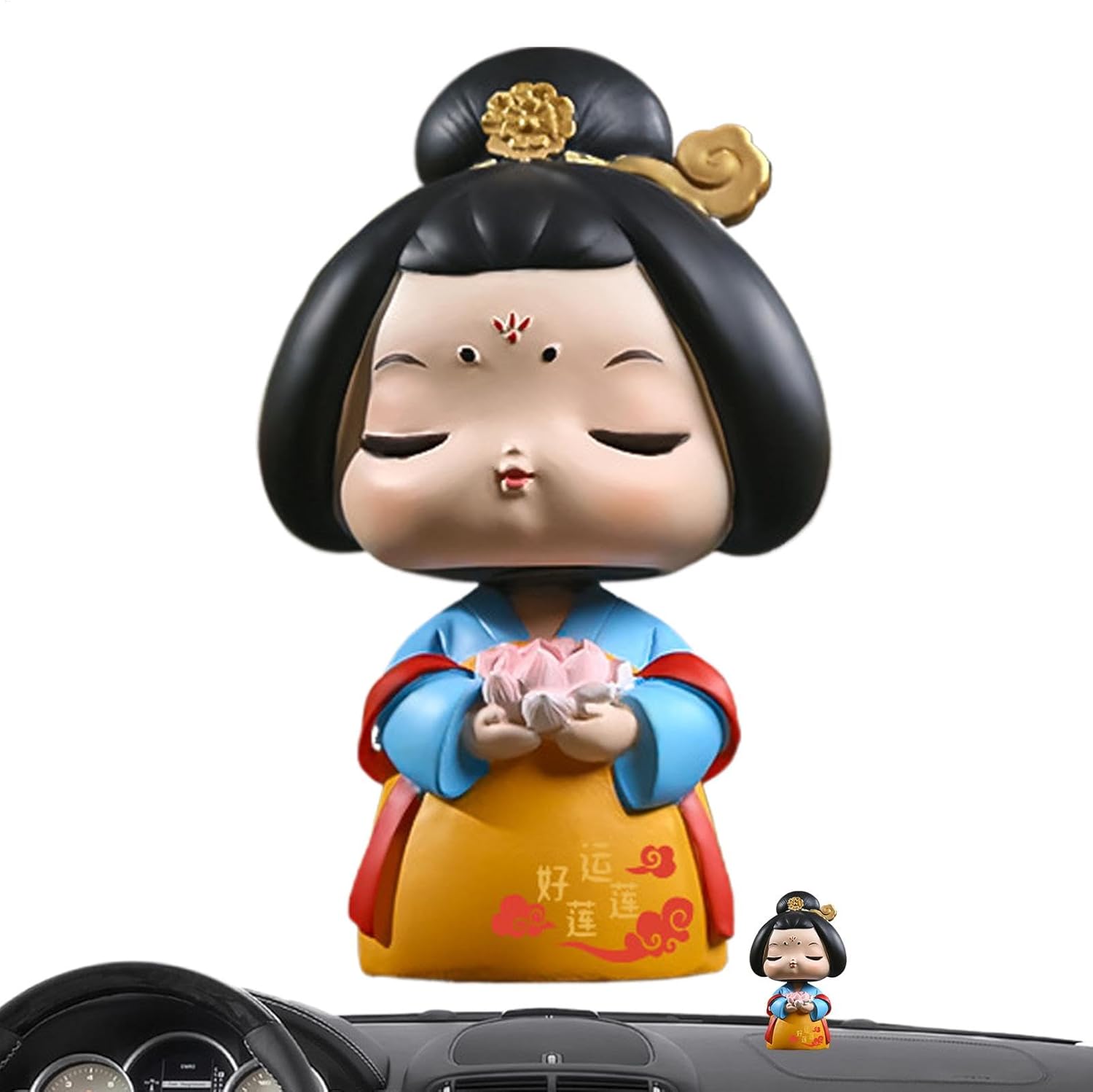 Crea un'atmosfera calda: la delicata espressione del viso e le figurine dall'aspetto molto pacifico creano un'atmosfera rilassante nella tua auto. Ogni ornamento ha un bellissimo trucco per il viso e aggiunge un tocco caldo e rilassante per dare il tono a un viaggio tranquillo. Funziona alla grande. Prodotti: Ogni bobblehead è scolpito a mano da abili artigiani utilizzando eccellenti materiali in resina, ottenendo un livello di eleganza senza pari con linee belle e morbide. Queste figure rappresentano un artigianato perfetto che impressionerà anche i collezionisti più esigenti. Porta gioia: le nostre figure bobblehead presentano un esclusivo design a piume integrato che migliora l'atmosfera della tua auto. Oscillando in modo naturale, aggiunge un fattore divertente e interattivo al tuo viaggio e trasforma ogni corsa in un'avventura. Ampia varietà di stili: le nostre figurine sono disponibili in quattro stili tra cui scegliere. Includono accessori come uno specchio, un ventilatore, un o sono decorati con graziose maniche per soddisfare le diverse preferenze dell'utente, rendendoli un'aggiunta affascinante a qualsiasi collezione o attuale. Ampia applicazione: queste figurine sono l'aggiunta perfetta ai piccoli spazi. Con le loro dimensioni moderate, sono adatti a qualsiasi auto, casa o studio e possono essere esposti ovunque. Fungono da decorazione unica e affascinante che non occupa troppo spazio