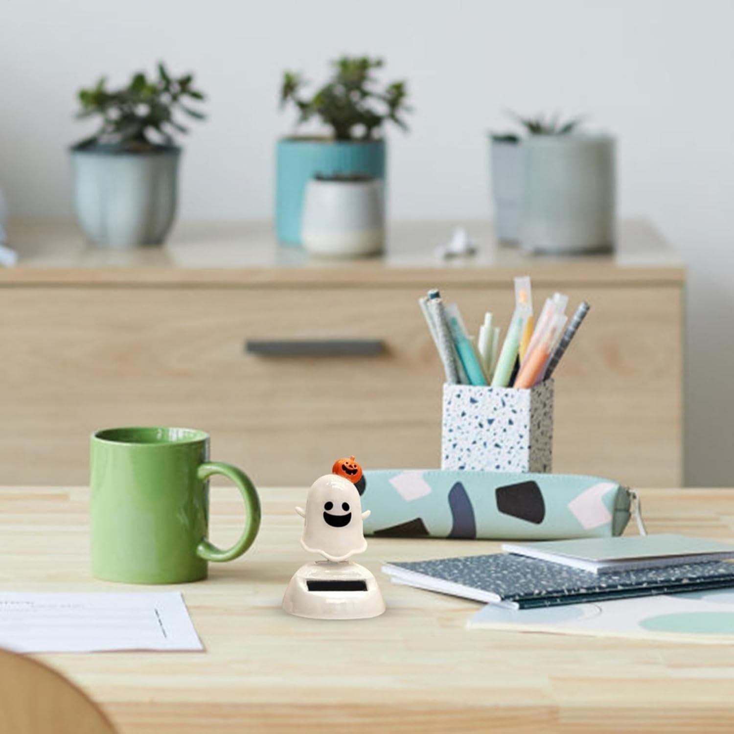 Ecologica e resistente: realizzata in materiale ABS ecologico, questa testa bobble di Halloween a energia solare vanta proprietà resistenti allo sbiadimento, anti-deformazione e di lunga durata. Goditi l'intrattenimento senza sosta mentre dondola la testa sotto la luce del sole, rendendolo un complemento perfetto per la tua auto, finestra o scrivania. Immagine adorabile: aggiungi un tocco spettrale alla tua scrivania con questo solare di Halloween. Alimentato dall'energia solare, galleggia senza batterie. Un pezzo decorativo perfetto non per Halloween ma anche per una decorazione carina che dura tutto l'anno sulla tua scrivania! Emozioni a energia solare: migliora il tuo arredamento di Halloween con questa statuetta a energia solare che si muove autonomamente al sole. Non sono necessarie batterie o prese: il suo design ecologico ti consente di goderti l'emozione di Halloween senza danneggiare l'ambiente. Posizionalo sulla scrivania, sullo scaffale o su qualsiasi luogo soleggiato per ore di intrattenimento spettrale. Ampiamente usato: illumina Halloween con la nostra solare Halloween che si illumina al buio. Il design carino e giocoso aggiunge un tocco unico al tuo lavoro, a casa o in auto. Questi divertenti giocattoli agiscono come un perfetto antistress, portando gioia a chiunque si senta stanco o annoiato. Mettili semplicemente al sole per goderti le loro teste che annuiscono! Regalo meraviglioso: metti un sorriso sui volti dei tuoi cari con questa affascinante statuetta solare di Halloween. Il regalo perfetto per ogni occasione, non sono necessarie batterie aggiuntive. Lascialo semplicemente crogiolarsi al sole o alla luce e guardalo annuire durante le riunioni di famiglia o le feste di Natale, aggiungendo un elemento divertente e unico che i tuoi destinatari adoreranno!