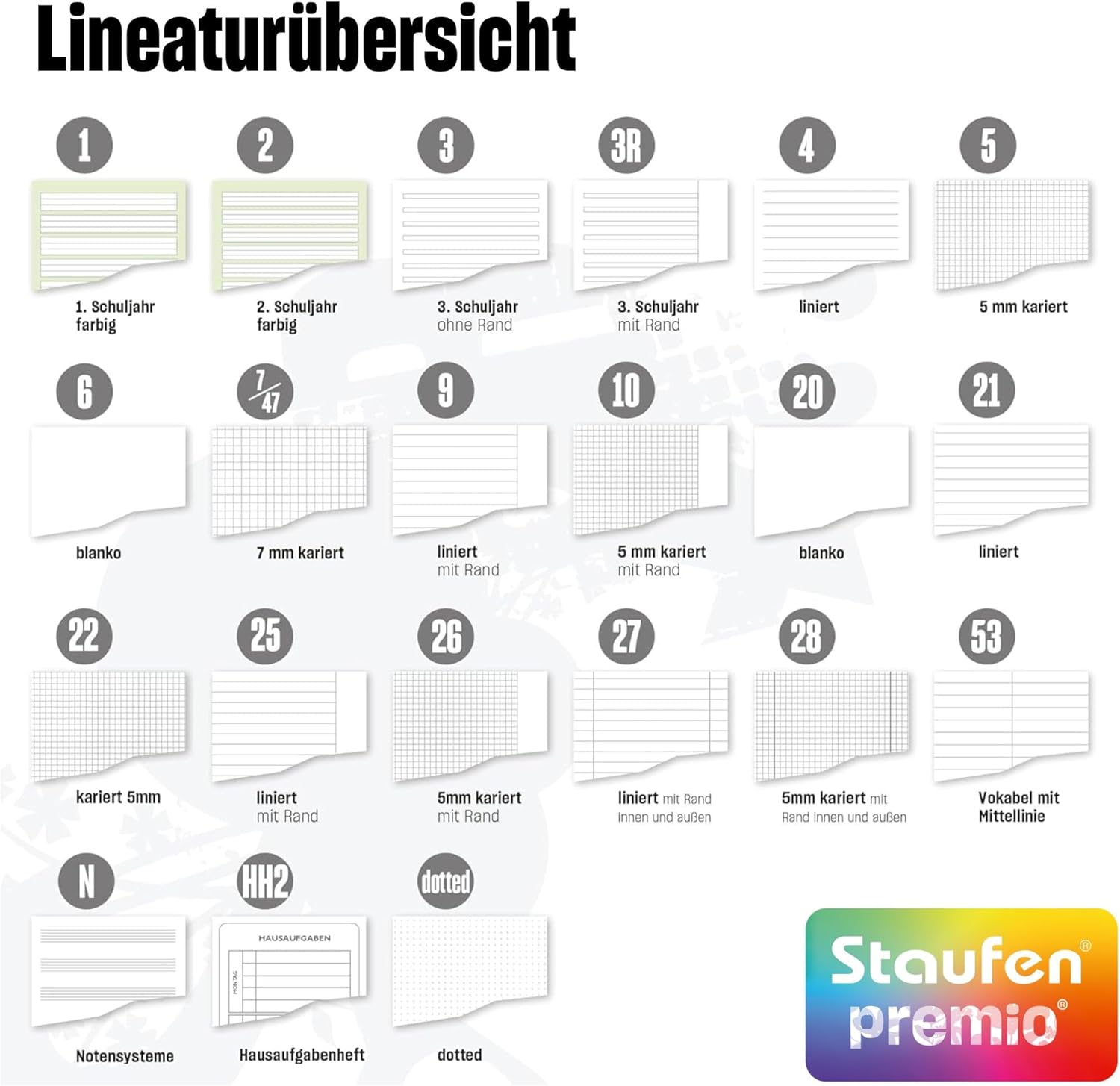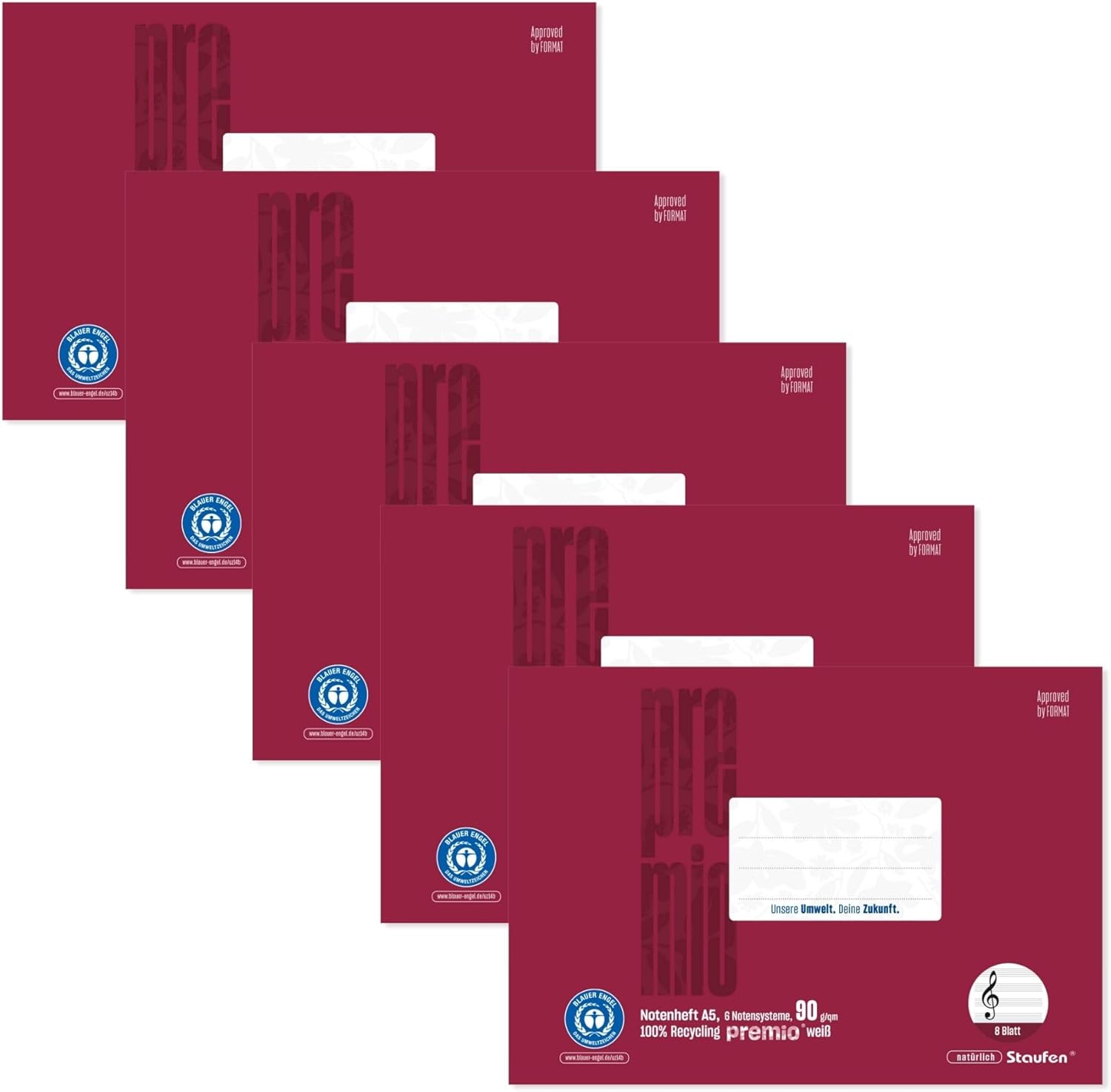 SCHREIBEN INTELLIGENTE: 5 quaderni ecologici in formato DIN A5 orizzontale, 8 fogli, riga N (6 righi) QUALITÀ CONFERMATA: Realizzato al 100% in carta riciclata bianca premium 90 g/m² NESSUNA ARRICCIATURA: Copertina rigida e angoli arrotondati per una migliore longevità BUONA COSCIENZA: Premiato con il marchio ecologico "Angelo Blu" PER IL TUO AMBIENTE: Tutti i prodotti Ursus Staufen premio sono prodotti nel rispetto del clima