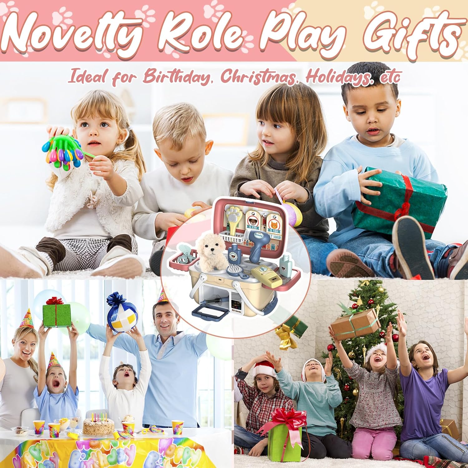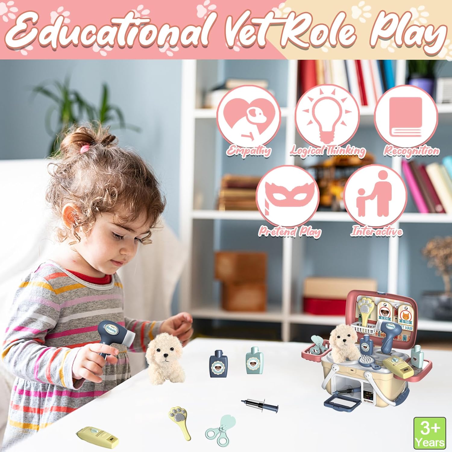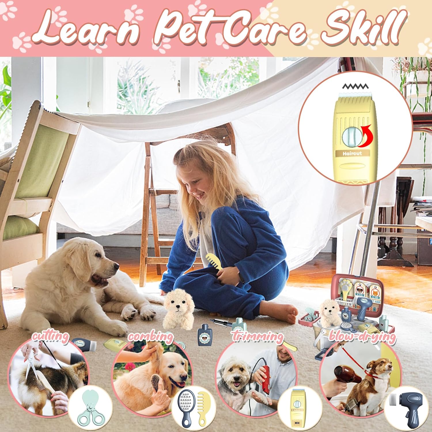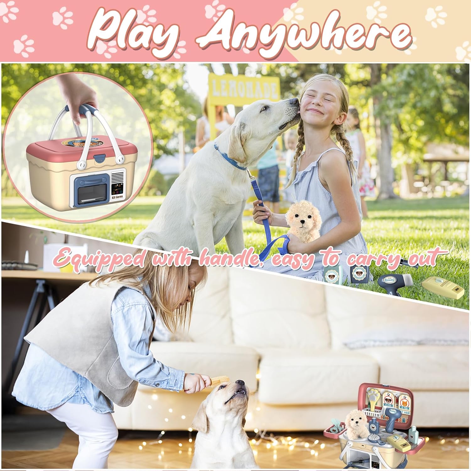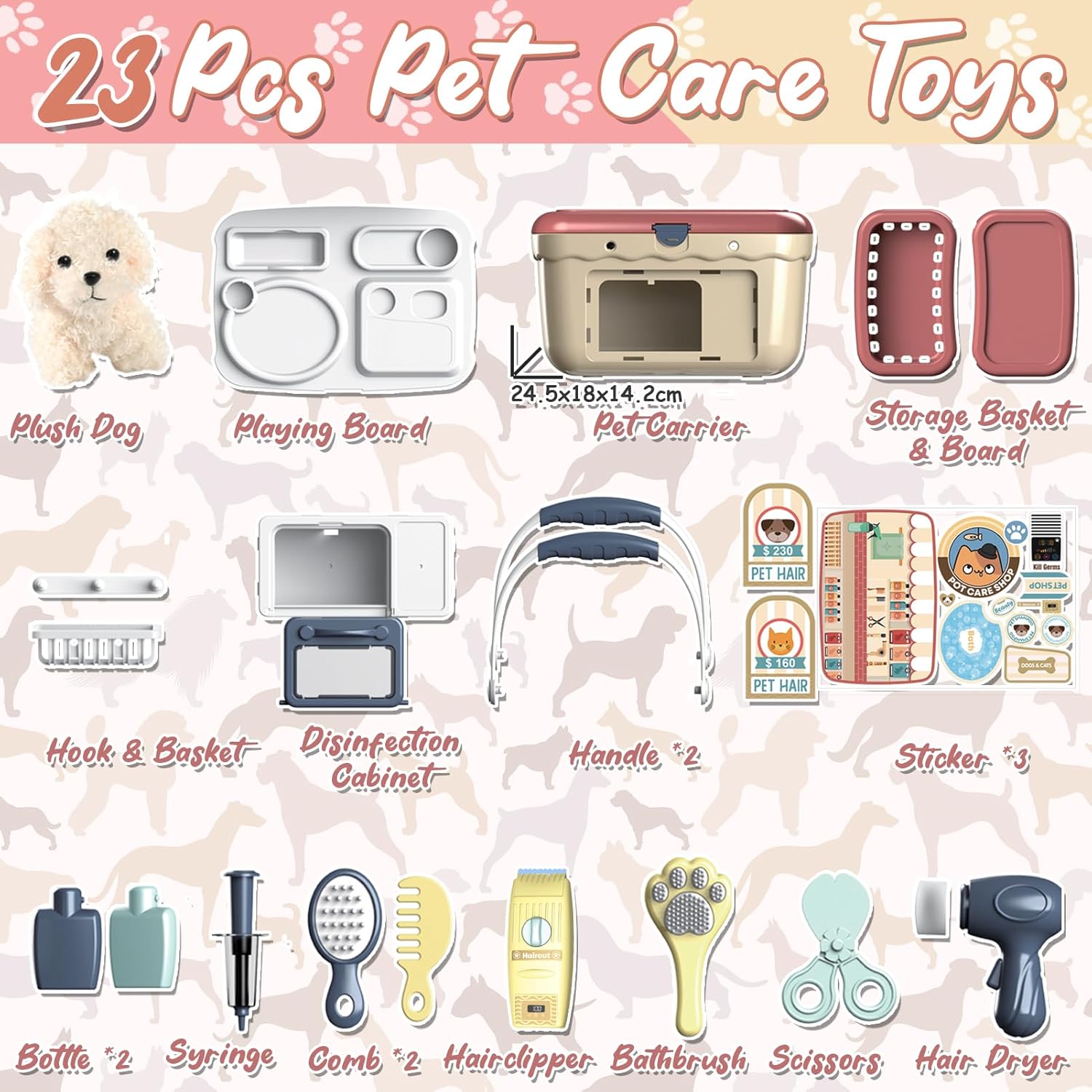 Divertitevi con il gioco di ruolo: Il negozio di animali è aperto. Con questo set di giochi di ruolo per la cura degli animali domestici, i bambini possono sperimentare un'ampia gamma di attività per la cura degli animali domestici! Possono fare il bagno, la toelettatura o la cura degli animali domestici. Questo aiuta i bambini ad apprendere più abilità nella cura degli animali domestici prima di possederne uno Set completo per la cura degli animali domestici: Questo set di giochi di ruolo per veterinari contiene 23 pezzi di giocattoli per la cura degli animali domestici, tra cui peluche per cani, trasportino per animali domestici, tagliacapelli, pettine, forbici, siringa e così via. Con questi accessori per la cura degli animali domestici, ricchi e diversificati, i bambini possono imitare i veterinari nella cura e nella toelettatura dei loro animali domestici Imparare giocando: I nostri set veterinari aiutano i bambini che intendono tenere animali domestici a comprendere questi processi banali ma necessari. Questo aiuta a sviluppare l'empatia e la responsabilità dei bambini, oltre alle loro capacità di cura. Inoltre, prendendosi cura dei loro amici cuccioli, i bambini possono migliorare l'abilità manuale e la capacità di riconoscimento Giocattoli di fantasia per bambini: Realizzati con materiali ABS di prima qualità, questi set da gioco per veterinari sono abbastanza resistenti per giocare a lungo. Tutti questi giochi di ruolo presentano angoli arrotondati e bordi lisci per evitare di graffiare le mani del bambino. Inoltre, questo set è stato progettato per essere abbastanza piccolo da adattarsi alla mano del bambino, consentendogli di afferrarlo facilmente Regalo di ruolo veterinario innovativo: I bambini lo adoreranno! Questo set di giochi di ruolo per la cura degli animali domestici permette ai bambini di vivere un'esperienza realistica nella cura degli animali domestici. È un regalo perfetto per gli amanti degli animali e per i bambini dai 3 anni in su che intendono tenere animali domestici. Ottimo per il compleanno, il Natale, la festa dei bambini, le vacanze e altre occasioni di regalo per bambini