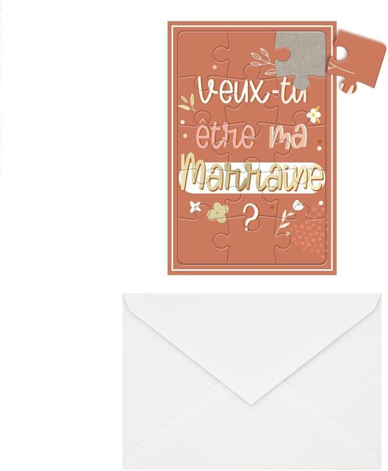 Scheda puzzle annuncio nascita-battesimo modello Vuoi essere la mia madrina?. 15 cartoncini + 1 busta bianca 15,5 x 10,5 cm.