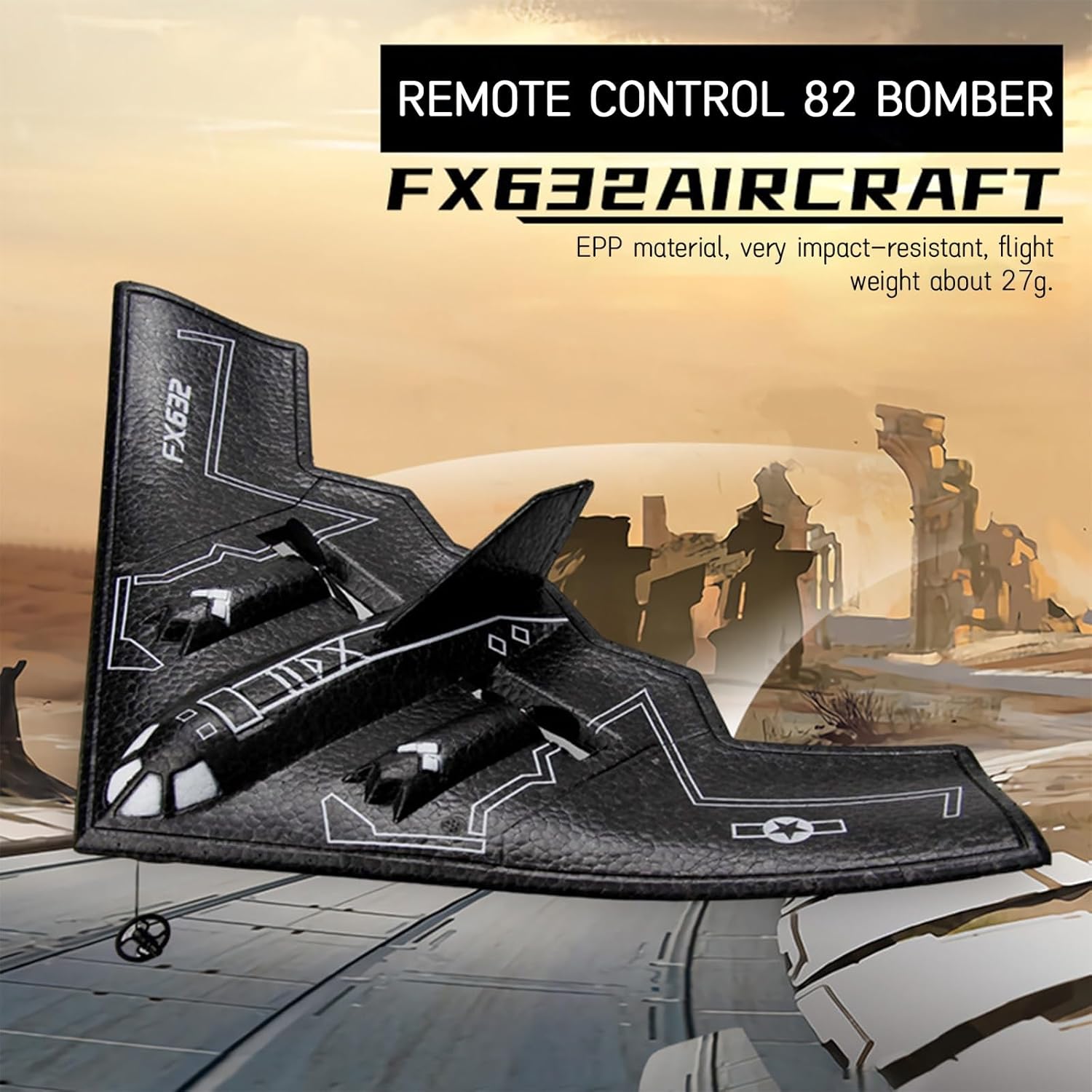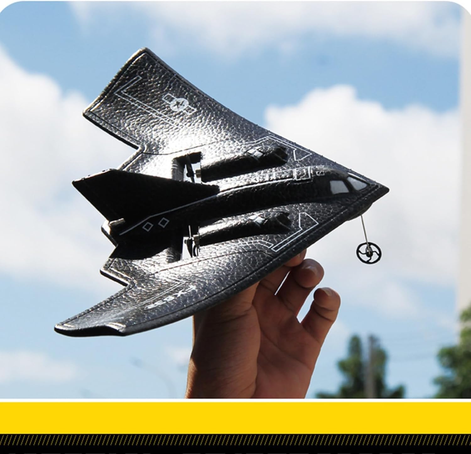 Scaling down according to the same proportion of B2 fighter, high realism. EPP material, very impact-resistant, light body, fun and durable. USB dedicated charging cable with protection plate, safe and stable. Simple operation, easy for beginners to master. Equipped with high-rate model aircraft lithium battery, strong power and long battery life.