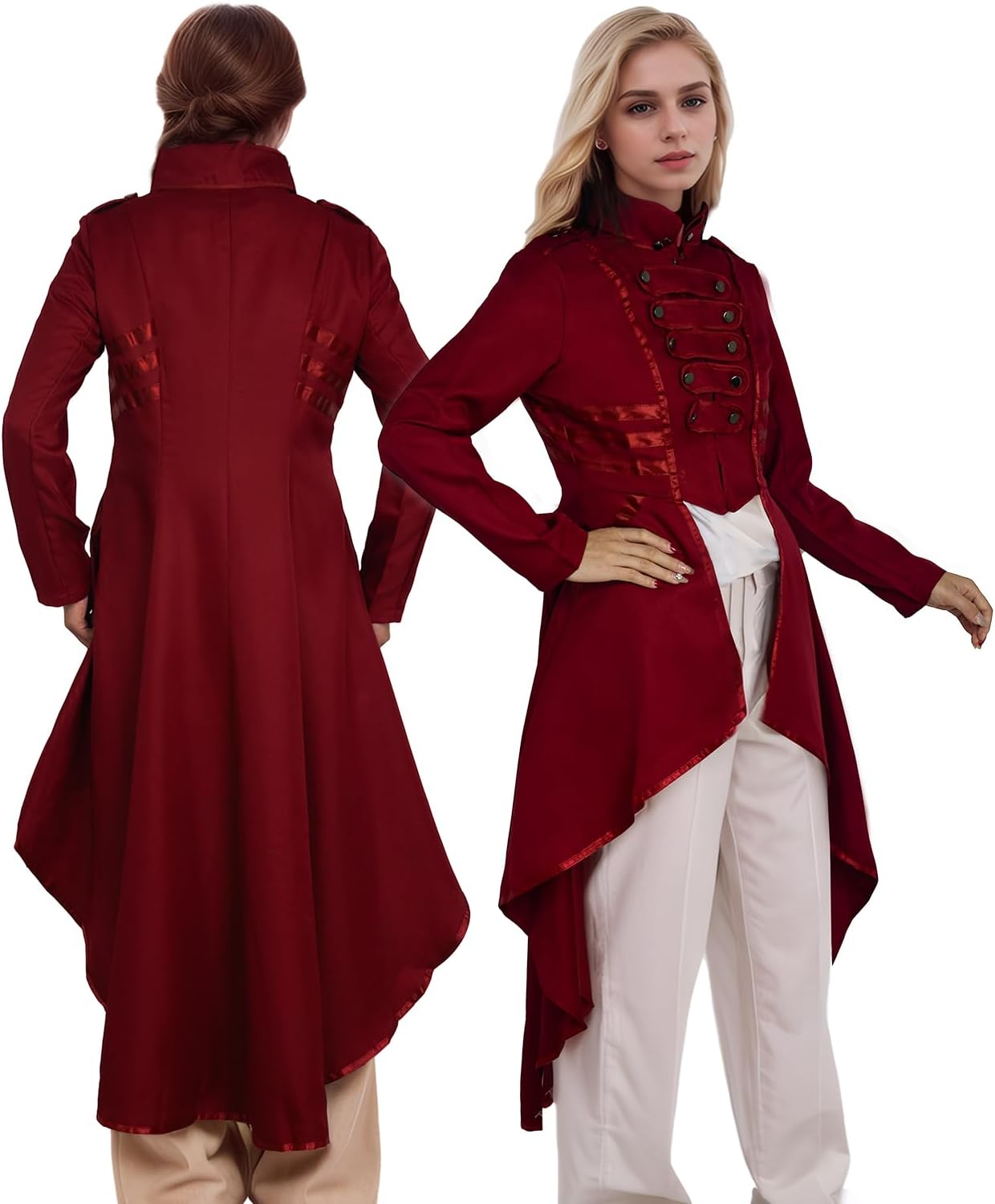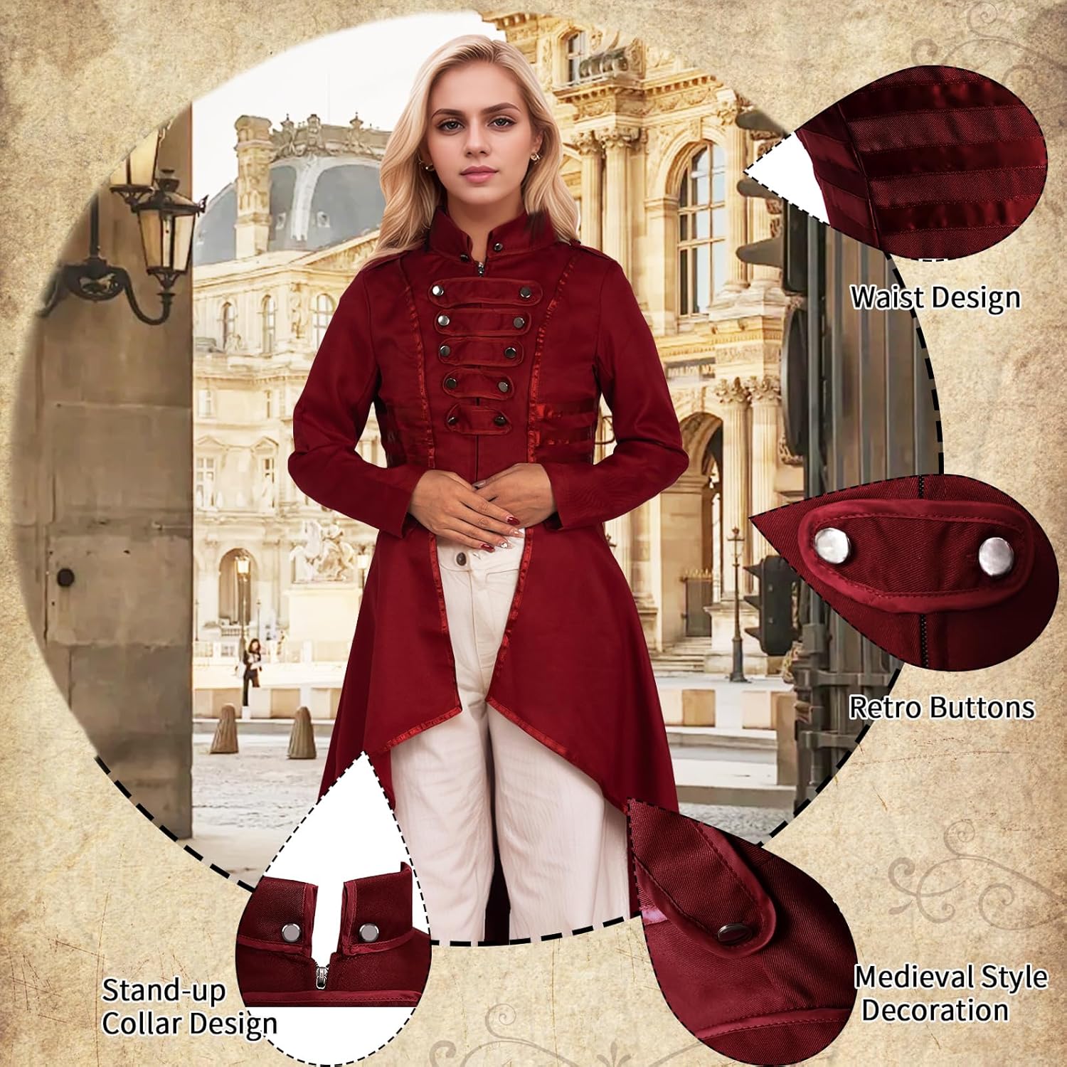 Steampunk, giacca da donna, gotico, frack, palazzo vittoriano, vintage, cappotti, per donne, Halloween, carnevale, feste, cosplay, abbigliamento (rosso, M)