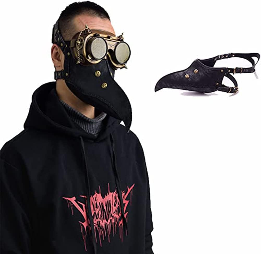 Pelle sintetica di alta qualità, sicura, durevole e comoda da indossare. Cinghia per la testa regolabile, adatta alla maggior parte degli adulti e degli adolescenti. Maschera per testa da medico della peste con mezzo viso e naso lungo, ideale per Halloween, carnevale, festa in maschera, festa punk, club, ecc. Il miglior regalo per te stesso, i tuoi amici e gli amanti del cosplay. Materiale: pelle sintetica. Misura universale, adatta alla maggior parte degli uomini e delle donne. Colore: nero. Dimensioni: taglia unica, cinghia regolabile per la testa. Contenuto della confezione: 1 maschera per peste.