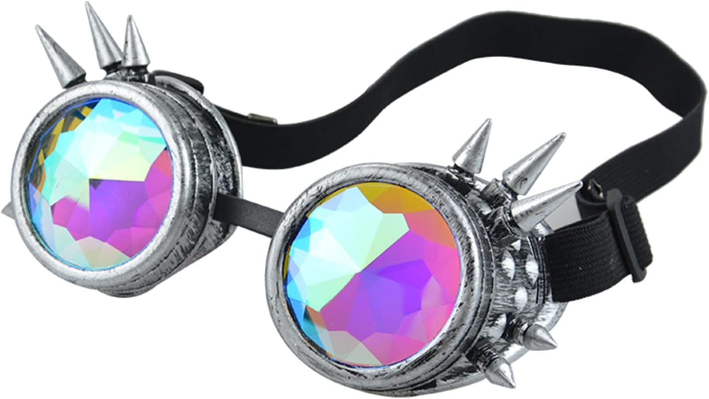 Comodo cinturino regolabile, si adatta a diverse dimensioni della testa con fascia elastica regolabile Bellissimi oggetti di scena per foto: il colore dell'obiettivo può essere cambiato in diverse angolazioni, carino ed elegante, ideale per uscire con per una bella risata, sono anche bellissimi oggetti di scena fotografici Le lenti in cristallo di vetro sfaccettato a specchio spesso arcobaleno sono il modo migliore per girare la testa quando si è in qualsiasi festival o spettacolo musicale convertito Ottime lenti da sole arcobaleno, effetto caleidoscopico intenso con centro trasparente, eleganti ed eleganti, per lenti resistenti che forniscono resistenza Applicazione: questi caleidoscopi possono essere indossati nello spettacolo speciale per festival musicali, Halloween, cosplay, oggetti di scena fotografici e molto altro ancora, puoi scoprire la tua incredibile illusione e creare un viaggio meraviglioso