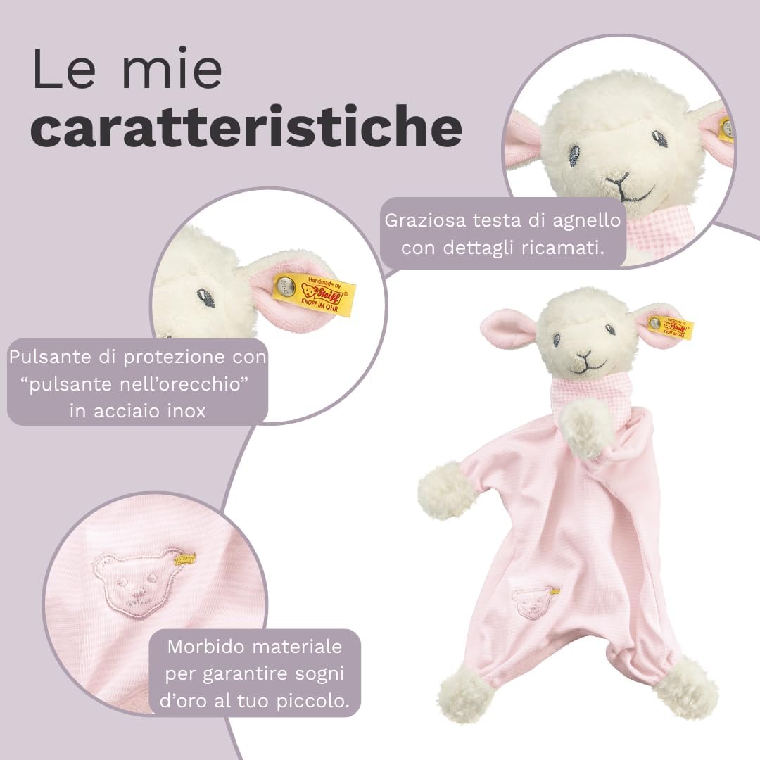 Super morbido agnello bianco con rosa coperta di comfort Steiff ricamo. occhi di sicurezza Pulsante orecchio in ottone placcato con etichetta Steiff dimensione 30 centimetri Adatto dalla nascita