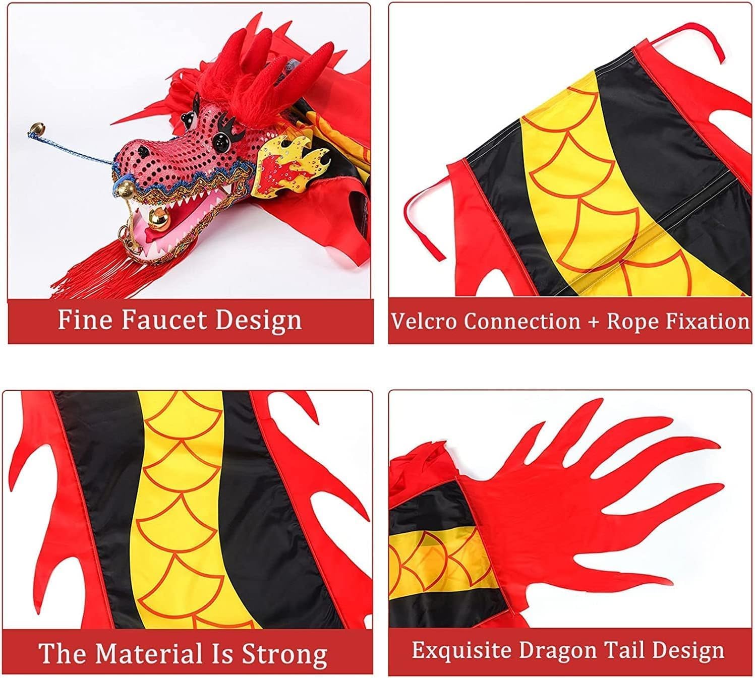 Materiale di alta qualità, il colore del tessuto è particolarmente bello, lo streamer viene fornito con una lunga corda che può essere utilizzata per una varietà di movimenti durante la danza e il gioco. Facili da montare, gli occhielli in metallo sono facili da applicare sulla testa del drago, quindi attaccare il velcro sul corpo e sulla testa del drago, in modo che il corpo del drago possa essere legato con una corda per completare l'installazione. Con le sue caratteristiche, può portare un divertimento senza fine a te e ai tuoi genitori. È anche uno sport/esercizio. L'attrezzatura può essere utilizzata per ballare, fare spinning, ginnastica, allenamenti circensi, ecc. Gioca con fantasia, goditi l'acqua che scorre mentre giri sopra di essa, fai oscillare la cintura svolazzante come una per creare uno straordinario effetto tornado o simula un giro sulle montagne russe dal lato di tuo figlio. (Consigliato per giocare in un'area aperta). Bellissimo design a colori, molto attraente per i bambini.