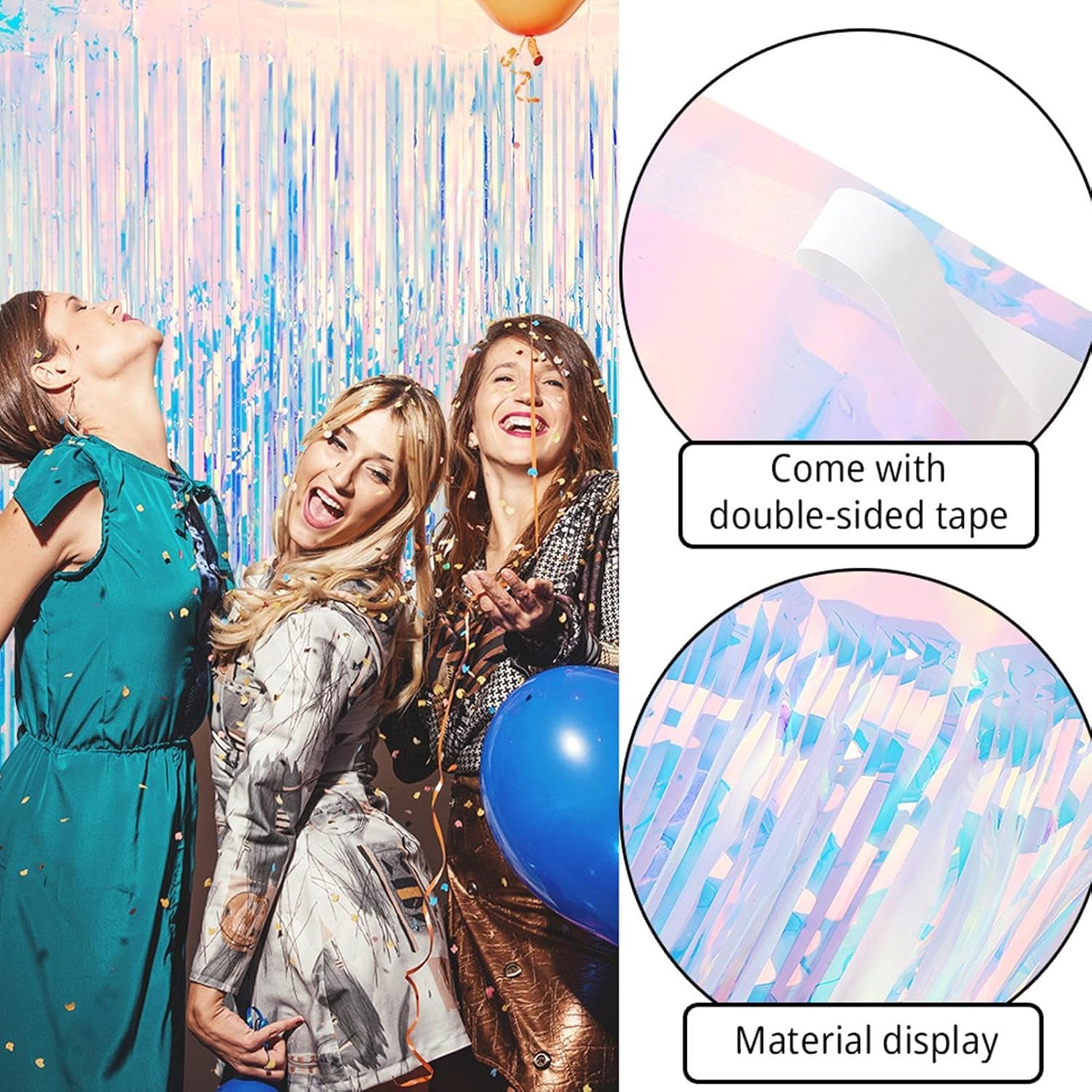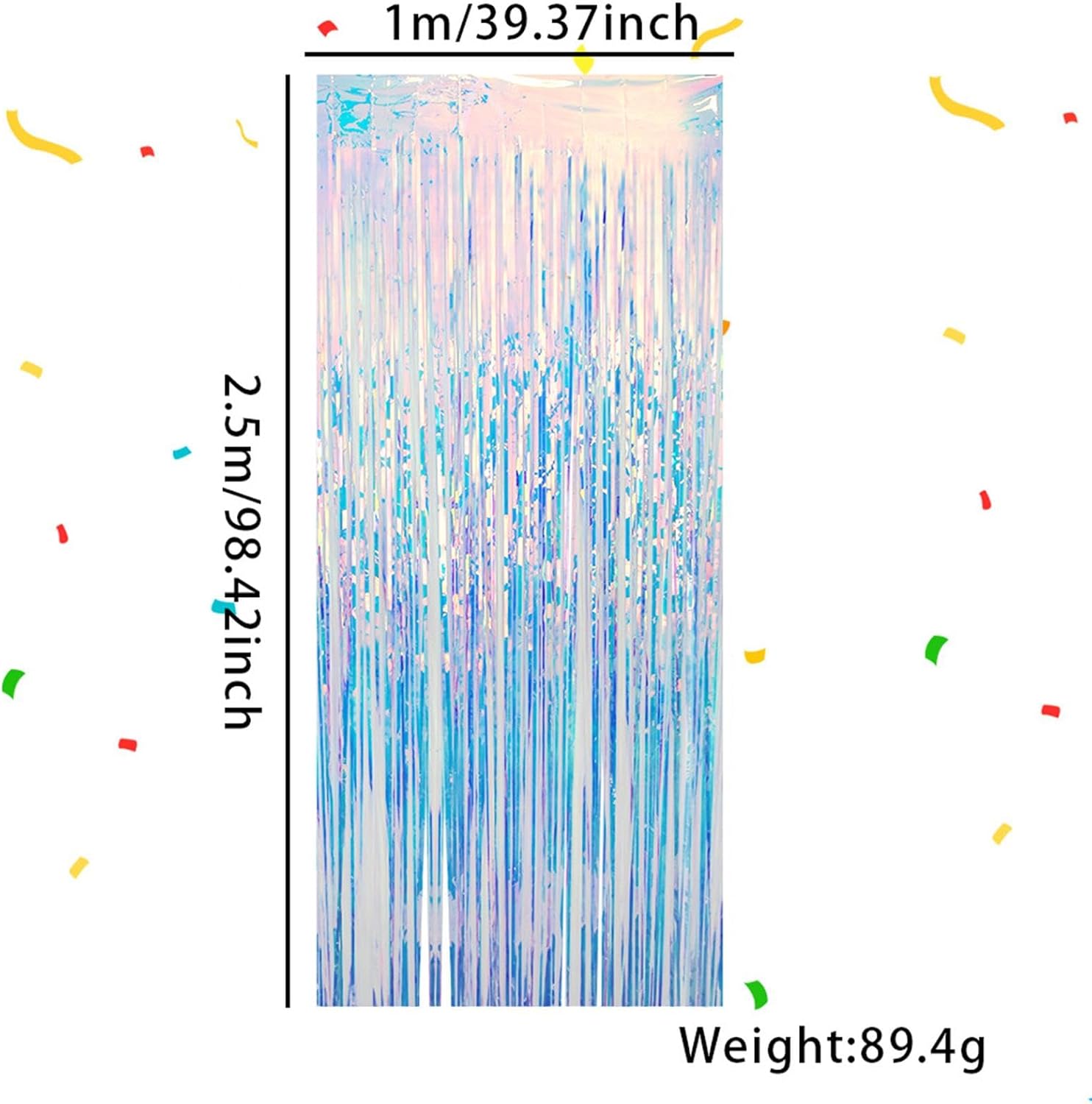MIGLIORA L'ATMOSFERA DELLA FESTA: aumenta l'atmosfera della festa e aggiungi un tocco di incanto con questi abbaglianti streamer. Dimensioni: 1 x 2,5 m, usali per creare uno sfondo bellissimo e romantico che crea l'atmosfera per una celebrazione o un evento indimenticabile.,Decorazioni iridescenti abbaglianti: perfette per feste a tema sirena, Y2K e Polaroid, nonché compleanni, balli studenteschi e occasioni speciali, la nostra decorazione versatile completa una gamma di temi per feste e pone le basi per esperienze indimenticabili Fascino scintillante: eleva le decorazioni della tua festa con la brillantezza scintillante dei nostri streamer iridescenti. La loro lamina arcobaleno riflette una tavolozza di colori scintillanti e aggiunge un tocco di glitter ad ogni occasione. I tuoi ospiti rimarranno incantati dal display elegante e abbagliante Vivacità di lunga durata: realizzati in materiale ecologico, questi streamer iridescenti sono sicuri e inodore, garantendo l'assenza di macchie e scolorimento anche con un uso prolungato, pur essendo resistenti alle alte e basse temperature per un colore uniforme. 【Installazione semplice】 Con questi streamer iridescenti, preparati a trasformare qualsiasi stanza in un luogo di festa abbagliante. Facili da appendere con nastro adesivo o spago, queste bellezze scintillanti sono la tua prima scelta per una celebrazione confortevole