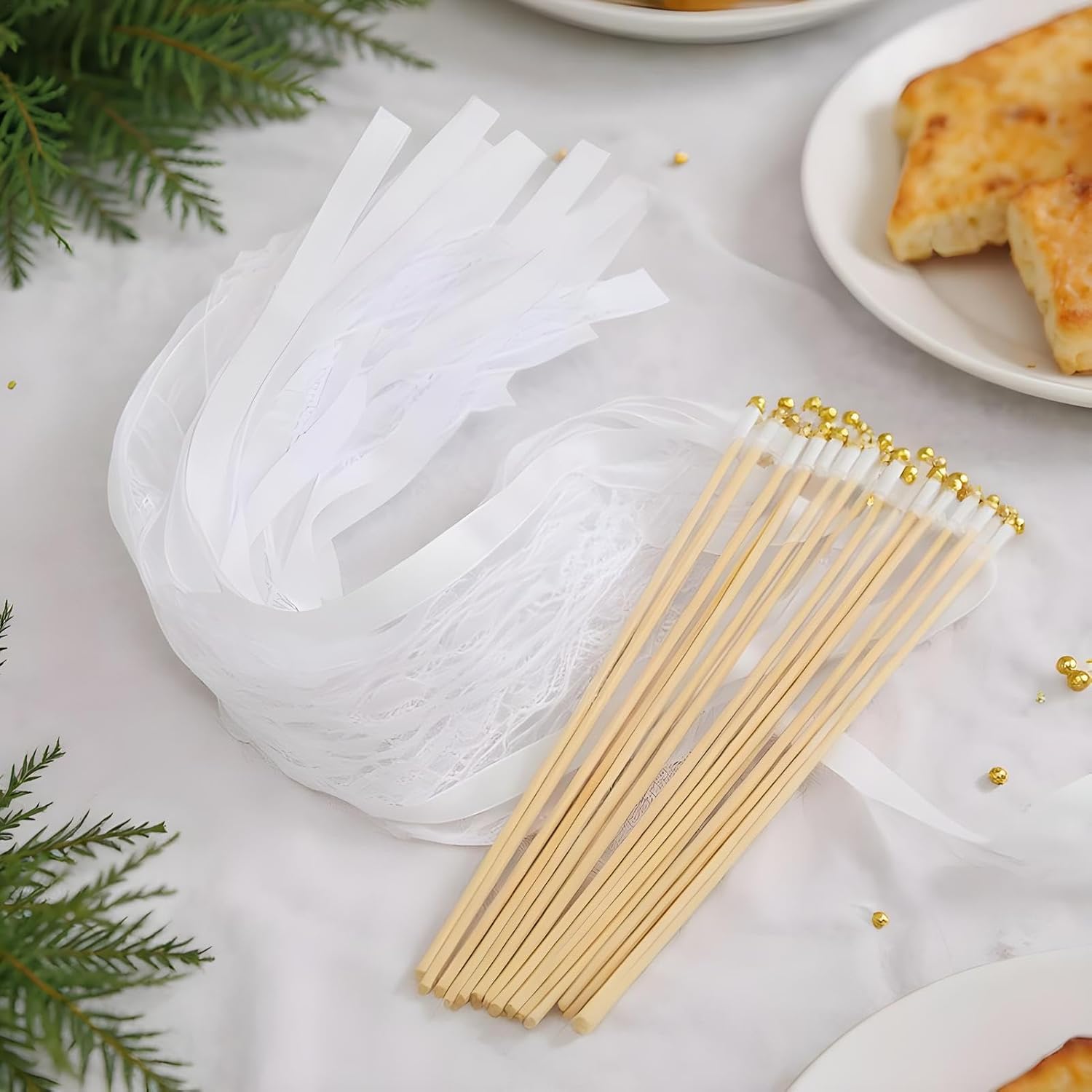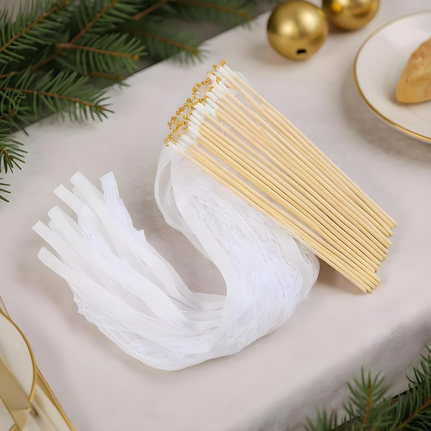 Ampia gamma di applicazioni: ideali per matrimoni, vacanze e spettacoli, nonché attività di classe, queste bacchette migliorano ogni occasione, offrendo stile e funzionalità senza sforzo Campane per feste: presenta una piccola campana che emette suoni, portando gioia e diffondendo piacevoli esperienze uditive durante eventi di matrimonio e altre riunioni festive, naturalmente Materiale resistente: realizzate con materiali affidabili, queste bacchette da sposa garantiscono una costruzione robusta e resistente all'usura, offrendo una maggiore durata per prestazioni costanti in ogni evento Facile da trasportare: con attenzione alla portabilità, queste bacchette da sposa vantano una struttura leggera che garantisce una facile maneggevolezza e facilità d'uso, ogni volta che è necessario migliorare le celebrazioni con il loro fascino Allegria romantica: le bacchette nuziali creano un'atmosfera vivace ma intima, completate da abbinamenti di nastri che aggiungono fascino e festa a ogni occasione speciale