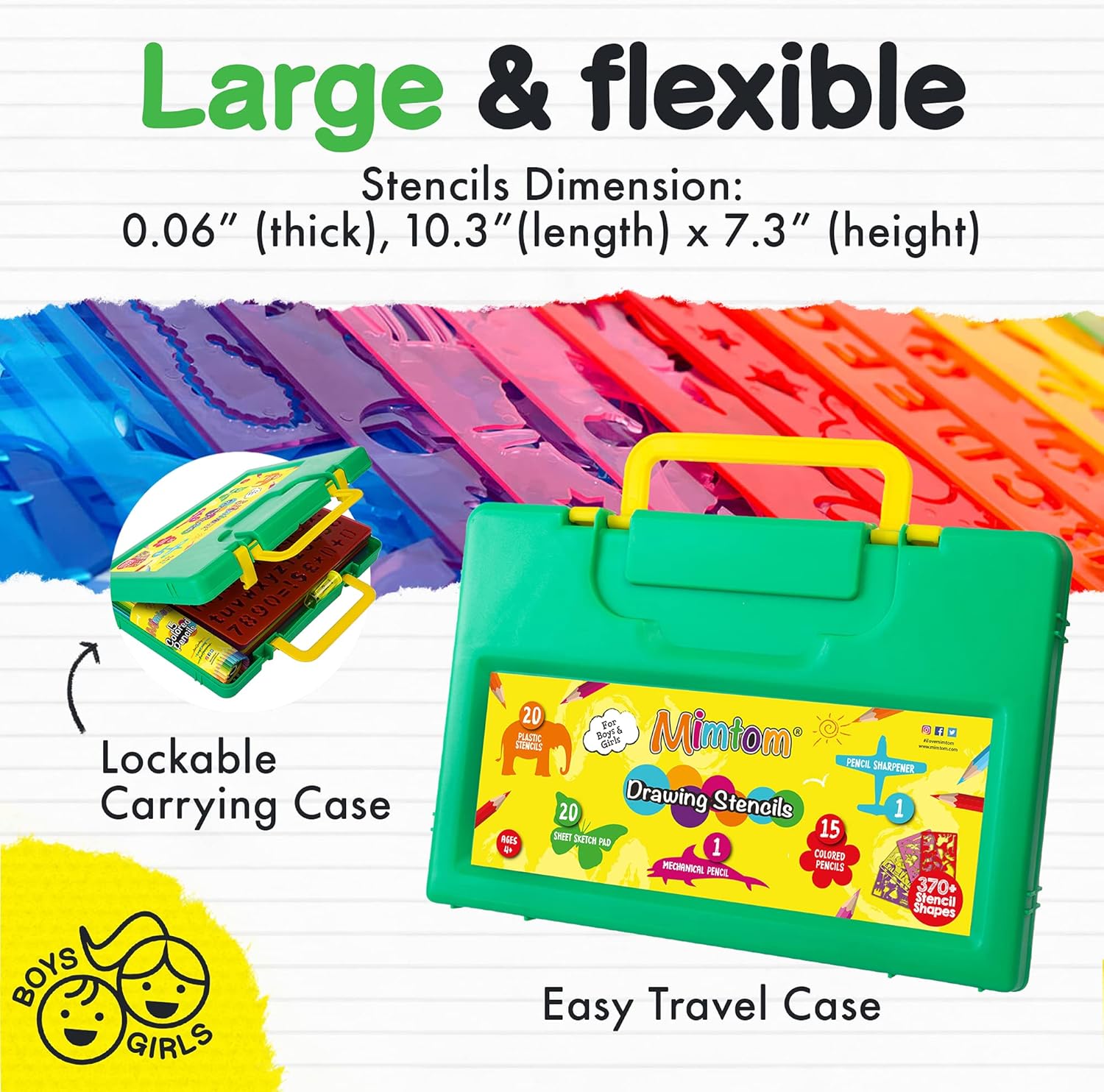 ✅ SET DISEGNO PER BAMBINI DA 58 PEZZI: Gioco per colorare con 14 stencil grandi (26 cm x 18.5 cm), 15 matite colorate / pastelli atossici resistenti, un album da disegno con 20 fogli, forbici di plastica, 3 fogli di adesivi, temperamatite sicuro per bambini con serbatoio porta trucioli, più un matita a mine con gomma a spirale e tappo in plastica. ✅ SET DI COLORI CON ATTIVITÀ PER OGNI OCCASIONE: la nostra valigetta con colori è facile da portare per accompagnare il bambino durante tutte le sue avventure. Da portare in viaggio in auto, al ristorante, in casa di amici o durante una visita a dei parenti. ✅ LIBERA LA SUA CREATIVITÀ!: Più di 370 formine fantasiose per favorire lo sviluppo artistico del tuo bambino per colorare divertenti disegni, creare fantastici disegni per magliette, poster, carte regalo o decorazioni per la casa. ✅ REGALO PER BAMBINI: Un regalo di compleanno che dona il sorriso al tuo piccolo. La migliore ricompensa per mamme, papà, nonne, nonni e baby sitter. ✅ ARTICOLI SICURI PER BAMBINI DI ETA’ SUPERIORE AI 3 ANNI: Tutti i kit di stencil da colorare sono senza da ftalati e sono conformi ai severi requisiti di sicurezza dei giocattoli dell'UE.