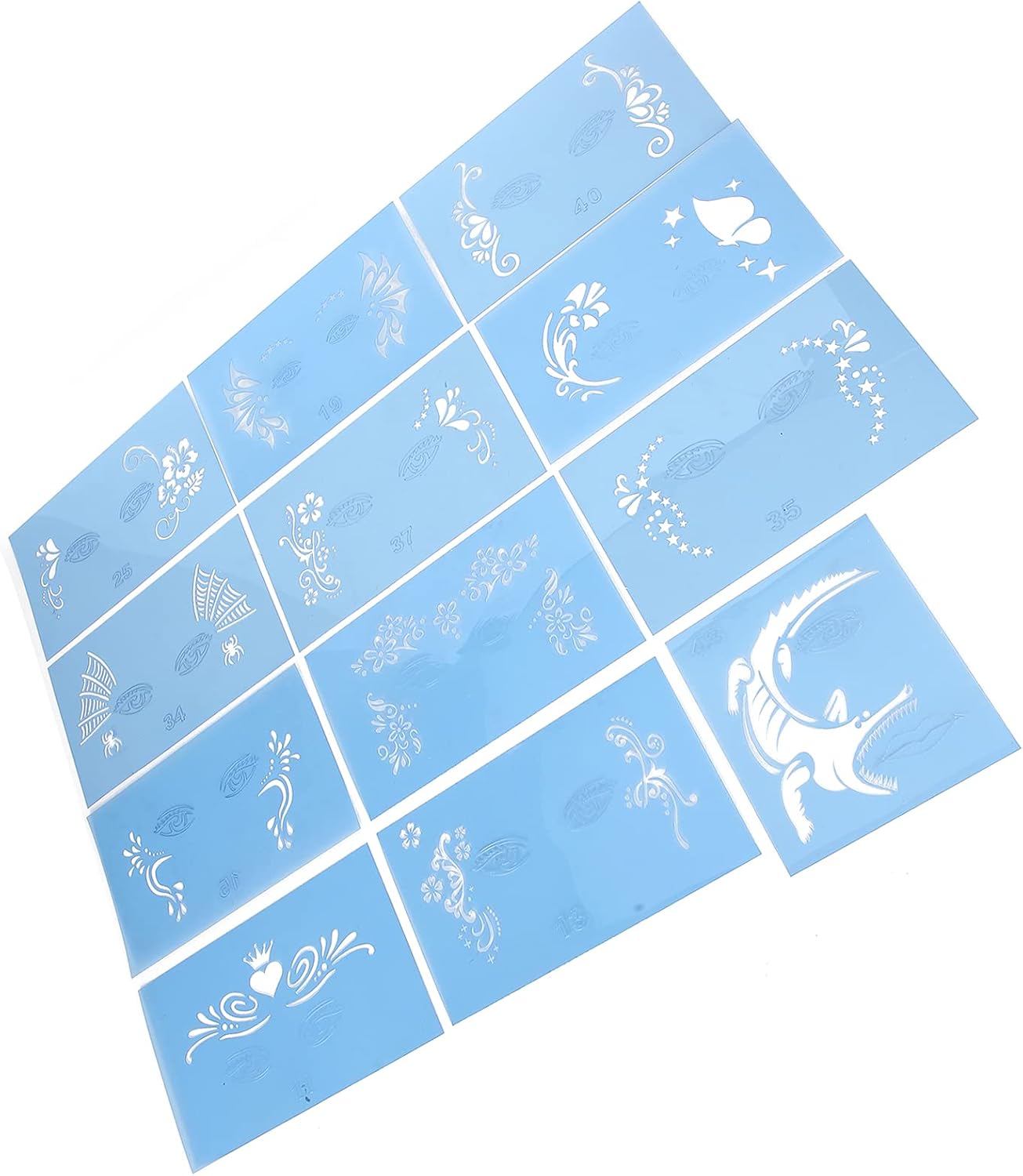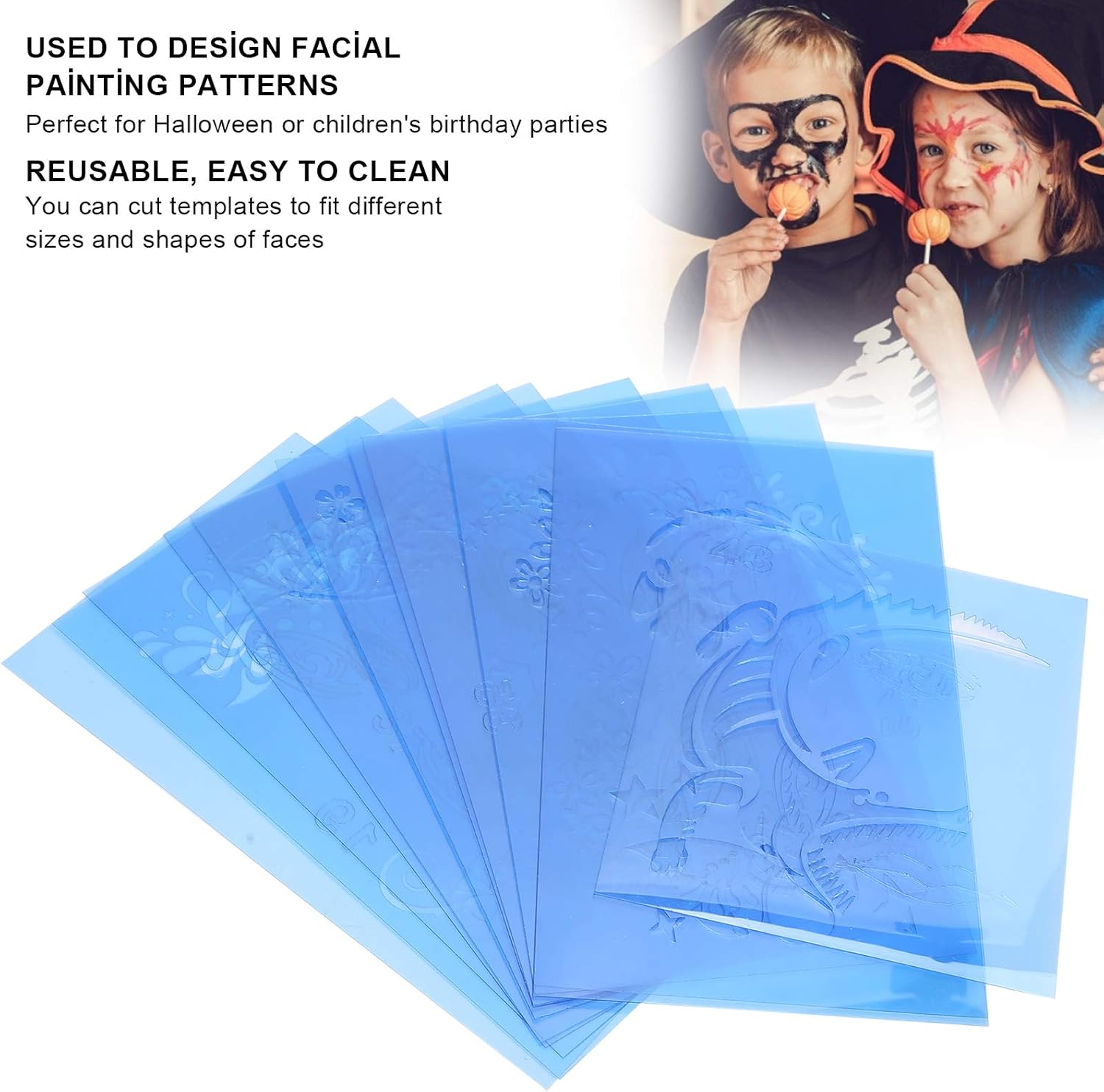 【Modelli adorabili faite】 Sono disponibili 12 stencil per la pittura del viso, sufficienti per le tue esigenze faite; ogni stencil ha un motivo specifico e può essere utilizzato o in combinazione con altri stencil per la pittura del viso per creare un trucco unico 【Materiale sicuro】 Lo stencil per la pittura del viso è realizzato in materiale PET di alta qualità, sicuro ed ecologico, stabile e durevole, innocuo, inodore e i tatuaggi non causano irritazione. Adatto a bambini e adulti 【Riutilizzabile】 Gli stencil per il trucco del viso sono riutilizzabili e facili pulire; Puoi tagliare gli stencil in diverse dimensioni e forme di volti per adattarli alle tue esigenze di trucco 【Versatile】 I modelli di tatuaggi per il viso sono disponibili in una varietà di modelli belli e vivaci per creare decorazioni uniche e belle; ideale per feste come carnevali, Natale, feste di compleanno, Halloween, spettacoli teatrali e feste in maschera 【 di qualità】 Ci impegniamo a fornire prodotti di e servizi premurosi. Se hai domande durante l'acquisto, ti preghiamo di contattarci; Risponderemo alle tue domande entro 24 ore