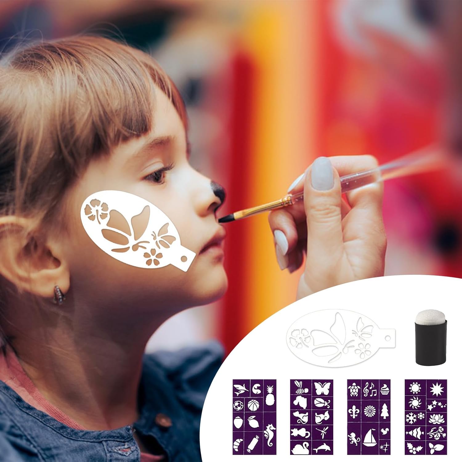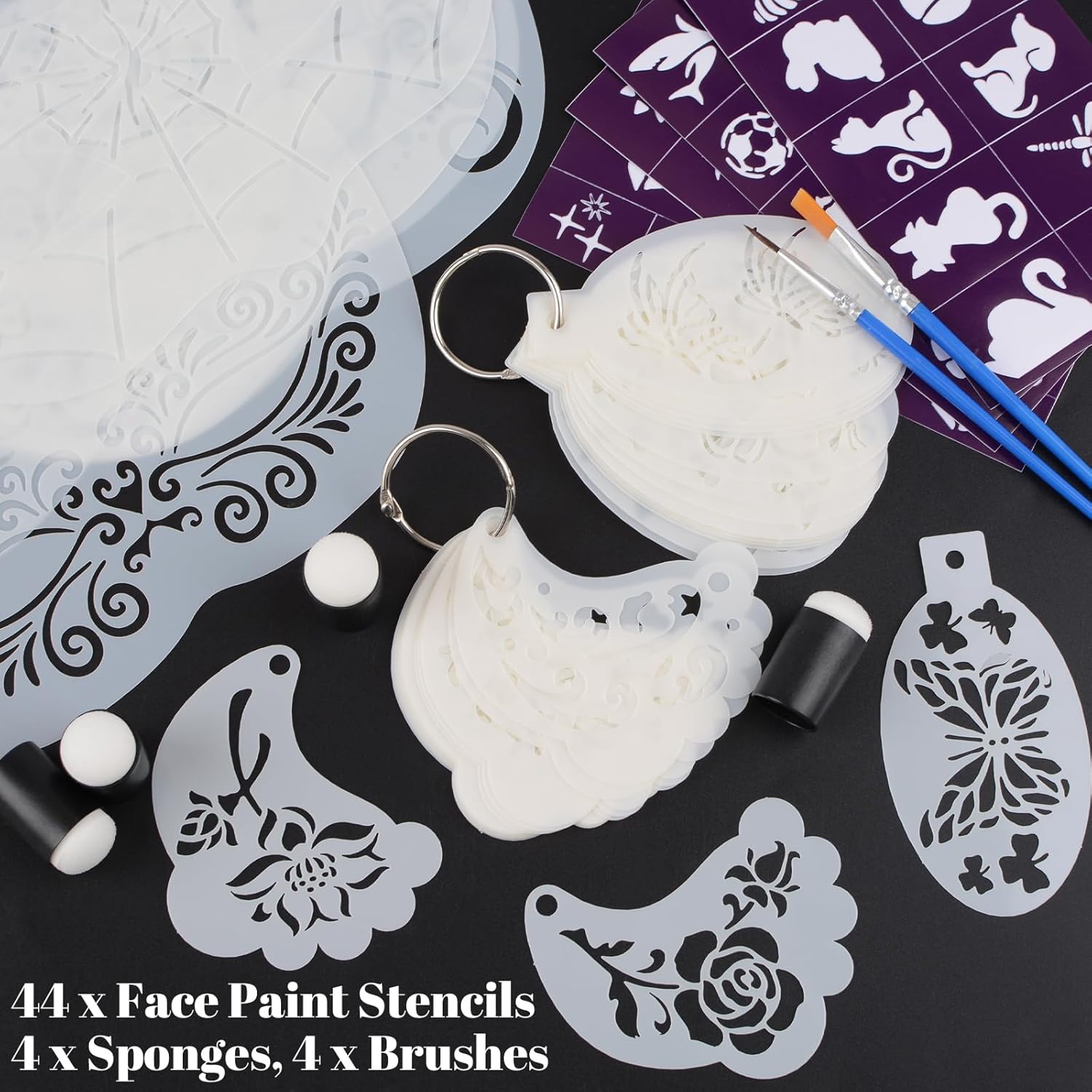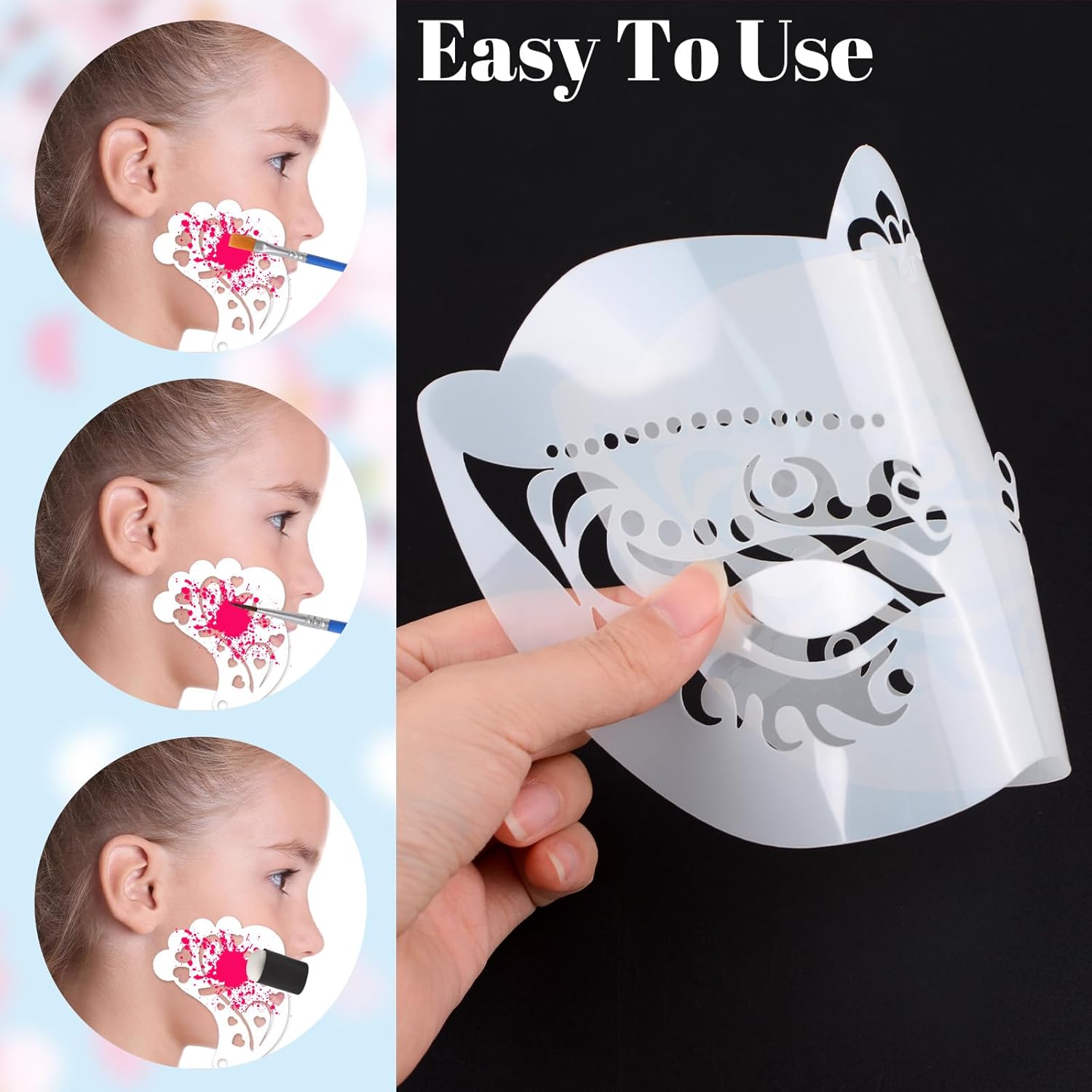Contenuto della confezione: riceverai un set di modelli per pittura del viso, tra cui 40 modelli riutilizzabili di 3 serie, 4 modelli di stampa che possono essere applicati sul viso, 4 gomme in spugna e 4 pennelli, nonché 2 anelli di ferro per riporre i modelli. Dimensioni della confezione: la dimensione del modello per la serie di maschere è di circa 20 x 12 cm, la dimensione del modello per la forma del piede è di 7,8 x 6,6 cm e la dimensione del modello per la forma ovale è di 9,3 x 5 cm. La dimensione complessiva del modello di stampa adesiva viola è di 14 x 8,3 cm e la dimensione dei due anelli di ferro utilizzati per la conservazione è di 3,3 cm. Materiale di qualità: il modello bianco è realizzato in morbido PVC, riutilizzabile e facile da pulire. Il modello viola è realizzato in carta e viene fornito con supporto adesivo, che può essere incollato sul luogo in cui è necessaria la stampa, rendendolo comodo e veloce. La spazzola in spugna nera è realizzata in plastica e spugna, mentre la spazzola blu è in plastica. Diversi pennelli offrono diversi tratti di pittura. Design squisito: il motivo include elementi come maschere a sfera, farfalle, fiori, stelle e piume, che ti fanno sembrare unico e affascinante, diventando al centro della folla. Ampia applicazione: non solo adatto per la pittura del viso, ma anche per realizzare tatuaggi glitterati su altre parti del corpo come mani, braccia o gambe. Perfetto per tutti i tipi di feste, carnevale scolastico e festival come Natale e Halloween.