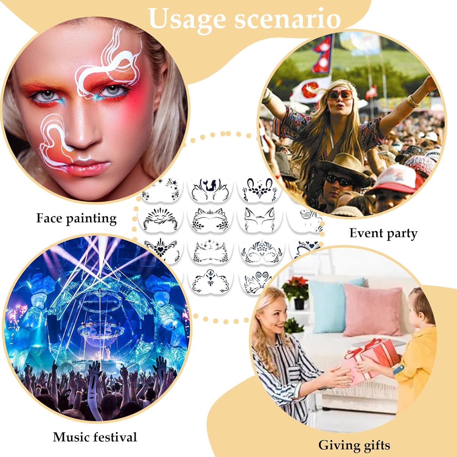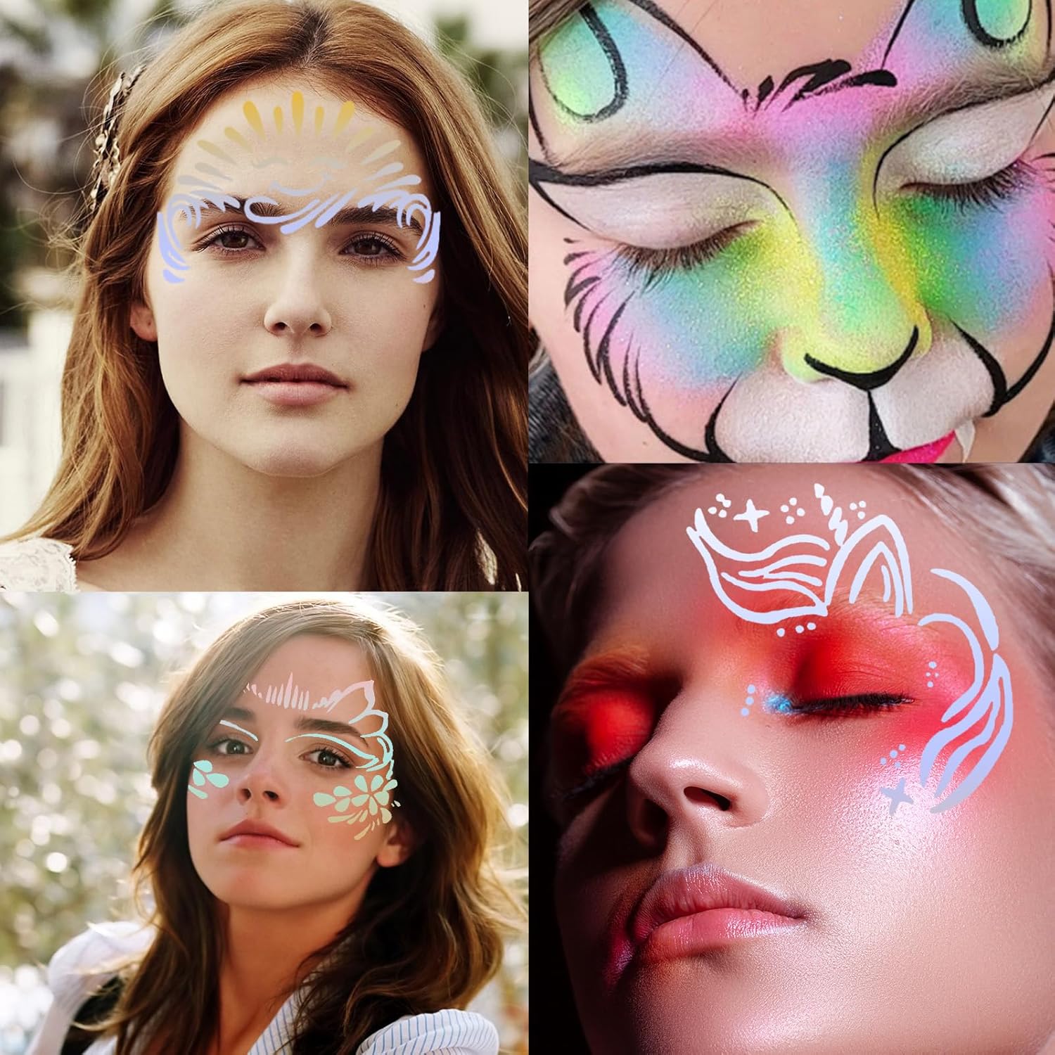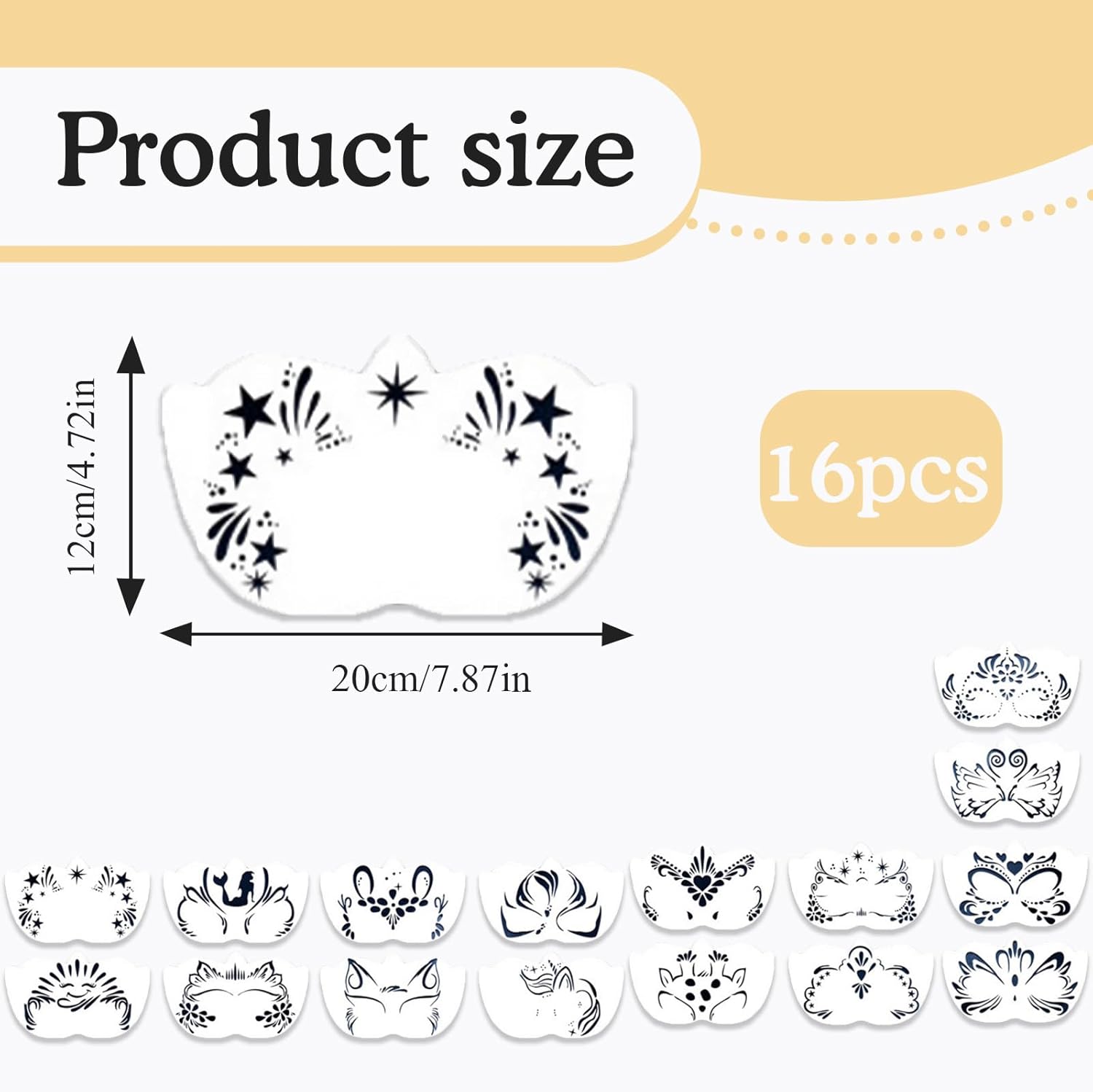 Materiale di Alta Qualità, Sicuro e Durevole: Questo stencil per trucco del viso è realizzato con cura in PET di alta qualità. Il PET offre un'eccellente sicurezza e protezione ambientale, è atossico e inodore e non causa irritazioni o danni alla pelle dell'utente. Può essere utilizzato con sicurezza sia da bambini che da adulti. Puoi utilizzare stencil per pittura del viso per il truccabimbi e la pittura acrilica senza preoccuparti della qualità del modello, fornendo un supporto stabile e duraturo per la creazione, ed è la scelta ideale per appassionati e professionisti del truccabimbi. Motivi Ricchi, Design Creativo: Una varietà di motivi è accuratamente progettata in stencil per la pittura del viso, che spaziano da simpatici personaggi dei cartoni animati a misteriosi elementi fantasy, da eleganti fiori a figure geometriche alla moda. Questi ricchi motivi possono soddisfare pienamente le diverse esigenze creative nel truccabimbi e nella pittura acrilica. Che si tratti di aggiungere un'atmosfera gioiosa alla festa di compleanno di un bambino o di mostrare uno stile unico in una mostra d'arte, questi motivi stencil tatuaggio temporaneo possono infondere infinita creatività e fascino personale nell'opera. Riutilizzabile, Economico e Conveniente: Questo stencil tatuaggi viso halloween ha un'eccellente riutilizzabilità, che ne migliora notevolmente il rapporto qualità-prezzo. Dopo un utilizzo, può essere riutilizzato con una pulizia e una manutenzione adeguate, risparmiando il costo di acquisti frequenti di modelli. Puoi utilizzare questi pittura halloween stencil ripetutamente per la creazione in momenti e occasioni diverse ed esplorare costantemente nuovi stili ed effetti di pittura. Specifiche Moderate, Funzionamento Pratico: Il design con specifiche di 12*20 cm è molto attento. Quando si utilizza il face painting modello di pittura per compleanno, queste dimensioni possono coprire facilmente l'area intorno agli occhi e disegnare motivi in modo semplice e preciso. Allo stesso tempo, modelli di pittura del viso non occupa troppo spazio ed è facile da trasportare in diverse occasioni. Che tu stia uscendo per partecipare ad attività, viaggiando o creando a casa, puoi facilmente metterlo in borsa e iniziare un viaggio creativo nella pittura sempre e ovunque, aggiungendo più colore e divertimento alla tua vita. Diversi Scenari Applicabili: Questo stencil riutilizzabili per pittura del viso è adatto a una varietà di scenari. A una festa vivace, puoi usarlo per creare un trucco unico per te o per i tuoi amici; durante le feste e le celebrazioni, disegna motivi adatti all'occasione per aggiungere un'atmosfera gioiosa; nelle attività per bambini, aiutali a realizzare una pittura creativa del viso; durante gli spettacoli teatrali, crea un'immagine distintiva per gli attori, rendendo ogni occasione più emozionante grazie a questi squisiti motivi face painting.