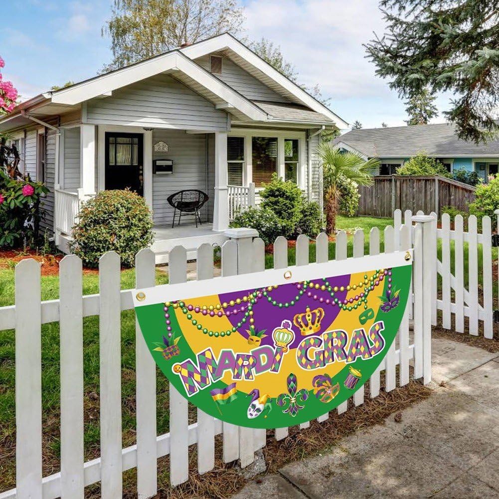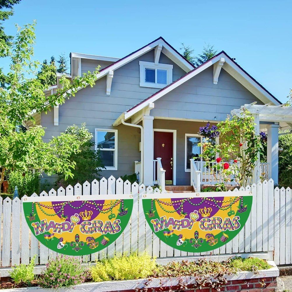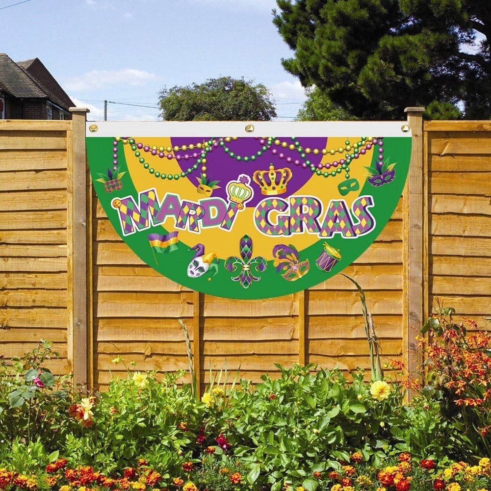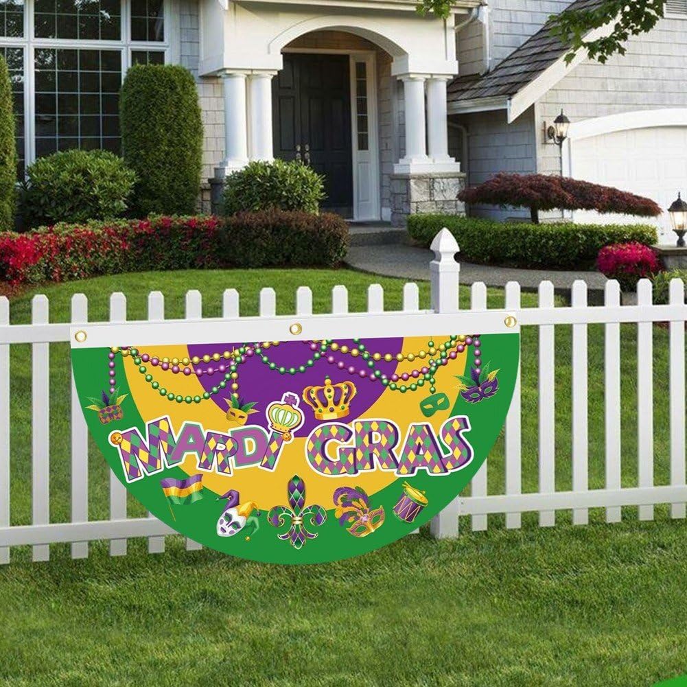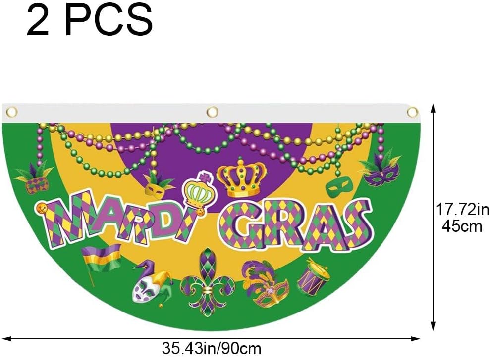 [Bel design]: la bandiera plissettata a forma di ventaglio del Mardi Gras ha 3 occhielli in ottone, facili da appendere. Utilizzando una tecnologia di stampa avanzata per garantire che le immagini siano molto chiare e i colori siano vibranti. [Dimensioni] Ogni bandiera del fan del Mardi Gras misura 17,72 * 35,43 pollici / 45 * 90 cm, dimensione adatta per uso interno ed esterno. [Materiali] La nostra bandiera plissettata a ventaglio Mardi Gras è realizzata in tessuto poliestere di qualità durevole, impermeabile, leggera, con doppio bordo con una bella lavorazione artigianale. [Ampia applicazione]: questa bandiera plissettata a ventaglio del Mardi Gras è un'ottima aggiunta per le decorazioni delle feste domestiche del Mardi Gras. Può essere utilizzato per decorare la casa, il giardino, il prato, la recinzione, la stanza o ovunque tu voglia. [Design] Bandiera dei tifosi del Mardi Gras con i classici colori del Mardi Gras, tra cui giallo, verde e viola, design che ti trasporteranno immediatamente nelle vivaci strade di New Orleans.