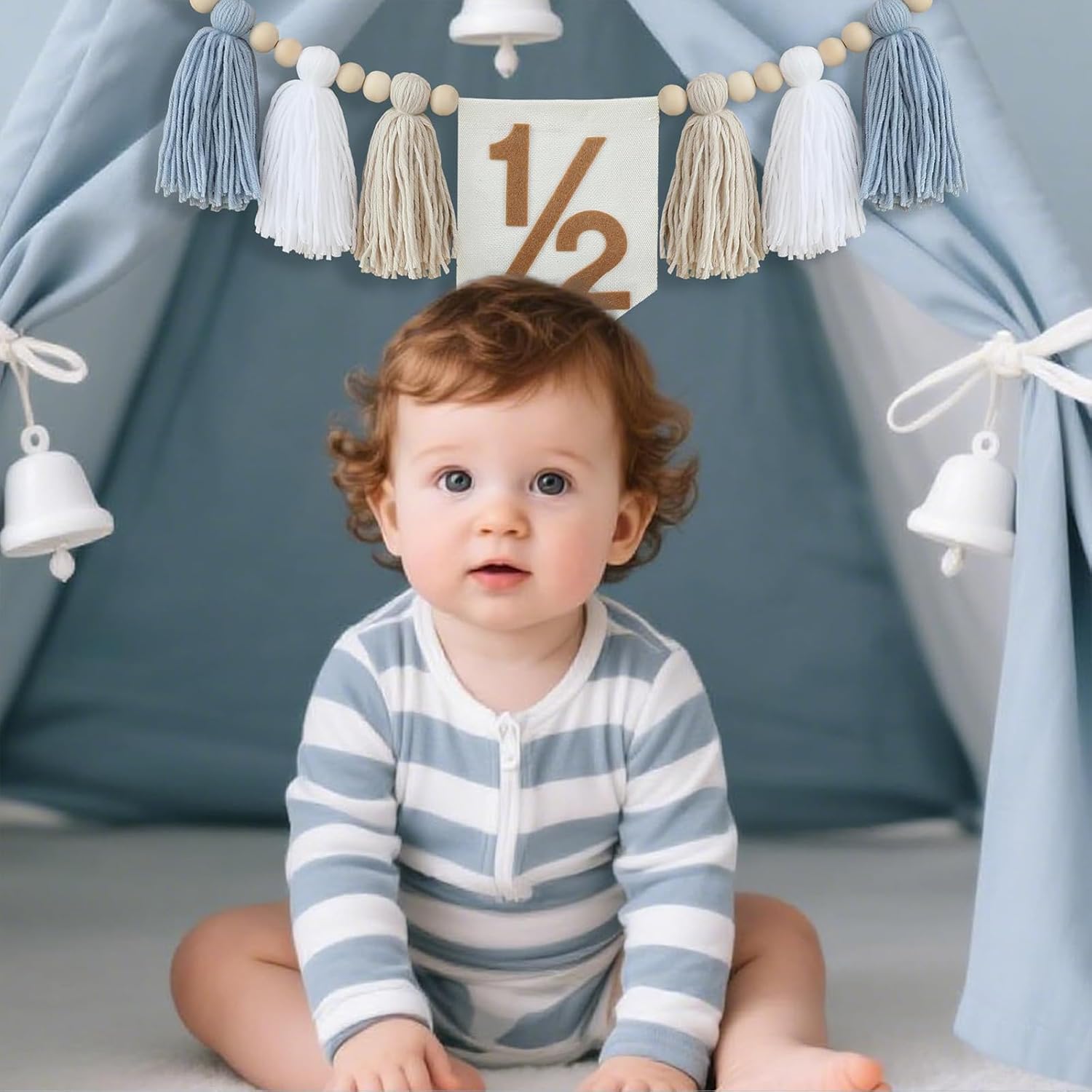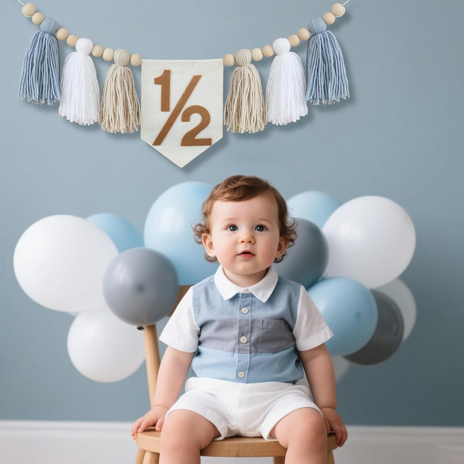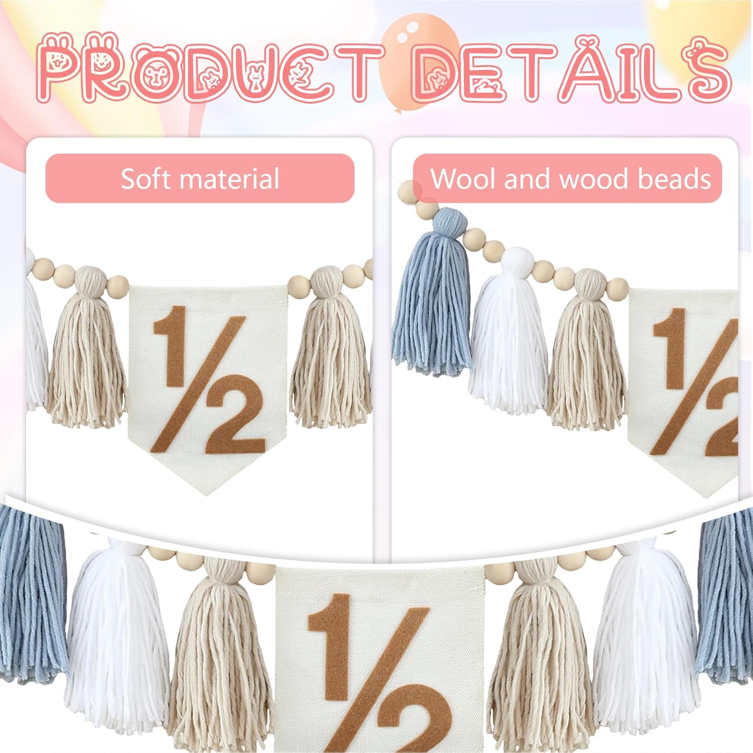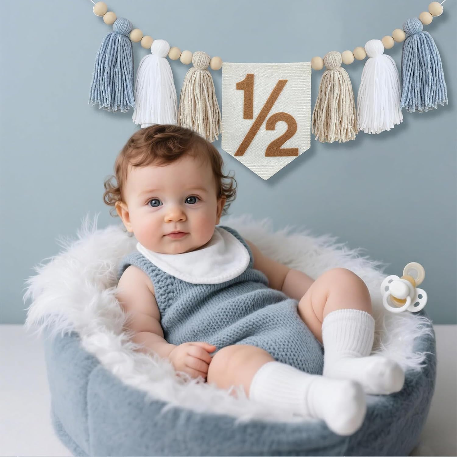 【Design di prodotto unico】 Questo seggiolone banner per il semestre è progettato con perline di legno e nappe soffici, dona eleganza e divertimento alla celebrazione del vostro piccolo bambino, rendendolo il centro dell'attenzione nel giorno speciale; questa serie è disponibile anche in colori Boho Khaki e Nappe Rosa. 【Esperienza d'uso di alta qualità】Leggero, sicuro e perfettamente proporzionato per i seggioloni; lo striscione è riutilizzabile e il suo design unico crea punti di interesse decorativi per il sesto mese di vita di vostro figlio. 【Applicazione Versatile】Perfetto per celebrazioni dei 6 mesi, compleanni dei bebè, feste in interno o esterno, sessioni di Cake Smash o servizi fotografici familiari; crea ricordi indimenticabili e si abbina armoniosamente con palloncini, decorazioni per tavoli e torte. 【Conservare un bel ricordo】Dopo la festa, lo striscione può servire come decorazione per la cameretta del bambino o essere conservato come cimelio visivo; supporta la celebrazione di importanti traguardi nel primo anno di vita. 【Consigli per Decorazioni e Styling】 Combina lo striscione con colori blu, pastello, palloncini, decorazioni per torte e accessori giocattolo per scatti fotografici, allestimenti per compleanni o sfondi da Cake Smash, rendendo indimenticabile il mezzo compleanno.