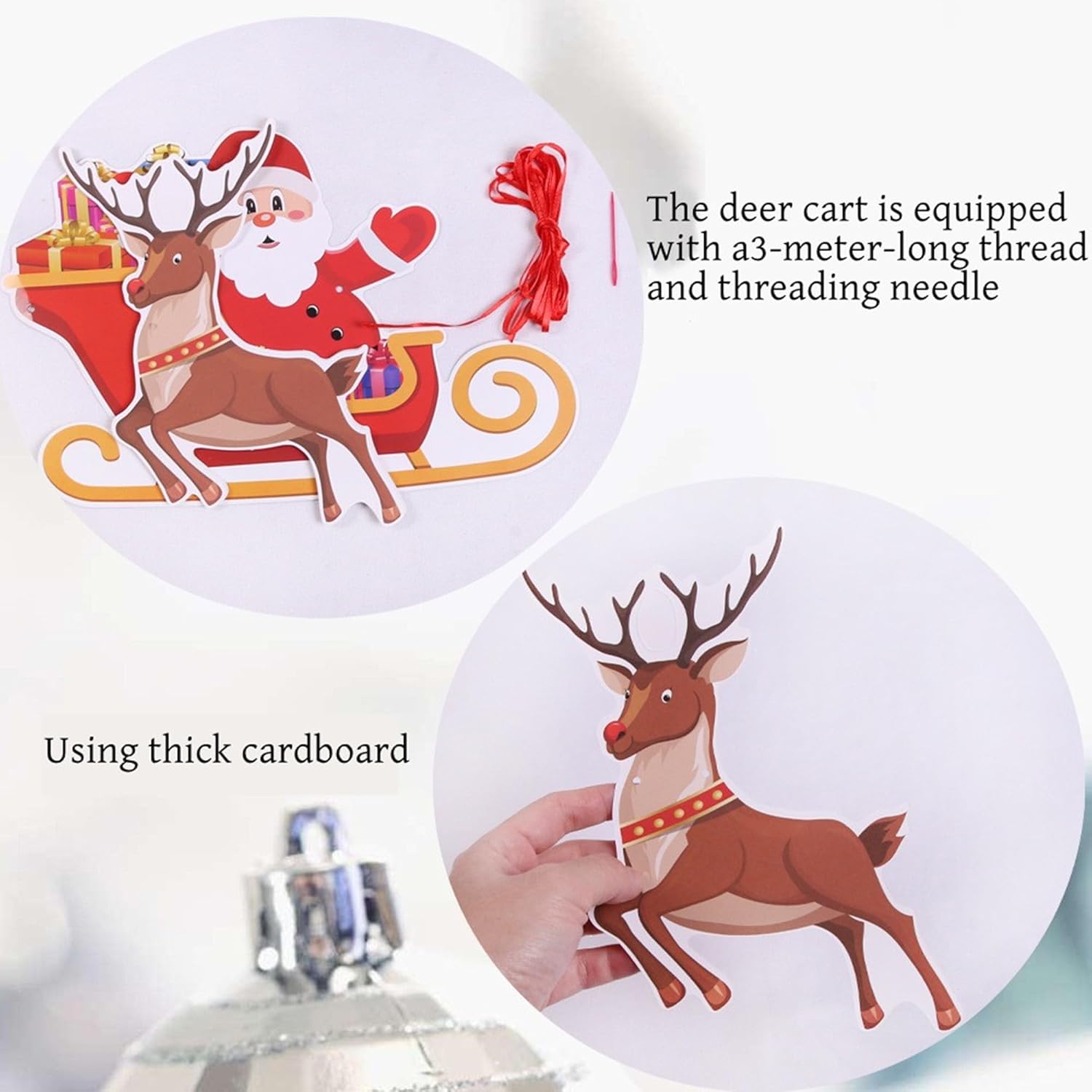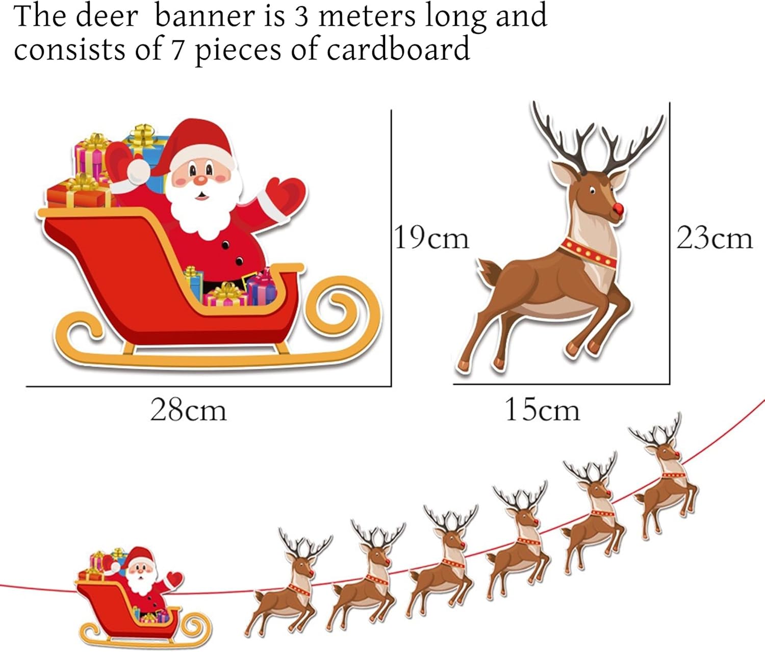 Le produit multimédia n'a pas pu être chargé. I’m starting to prepare for Christmas, and with grandkids regularly visiting it’s nice to have some cuter decorations up for them, And this Santa and reindeer banner is just perfect. The card pieces come seperate with pre-punched holes, and includes a reel of thin ribbon and a large-eyed needle, so threading it is simple. Design-wise, it’s cute and jolly, and nice and colourful. And it’s great that the pieces are all double sided, so you’re not limited where you position it. All in all, at £3.99 at time of reviewing, this is good value.