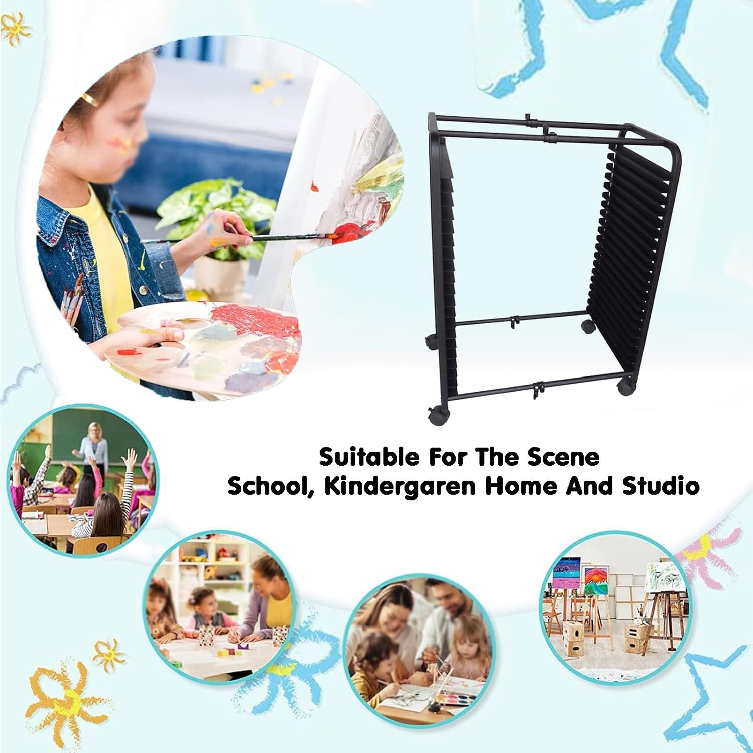RUOTE MOBILI ----- Ci sono 4 ruote piroettanti sul rack artistico for l'aula, che può essere facilmente spostato su qualsiasi superficie liscia e piana, nel frattempo, è dotato di freni for mantenerlo fermo, che sarà stabile for sostenere i tuoi lavori artistici COSTRUZIONE ROBUSTA ----- Lo stendibiancheria è realizzato in metallo, durevole e di lunga durata, con una distanza di 3 cm tra i rack for garantire che l'arte rimanga pulita RACCOGLITORI for L'ASCIUGATURA ARTISTICA ----- L'asciugatura non è mai stata così semplice, gli stendibiancheria offrono molto spazio for posizionare in modo semplice e sicuro nuove creazioni di artisti, come stampe a getto d'inchiostro, tele, acquerelli o dipinti acrilici, poster e altre opere d'arte, for tenerli lontani essere macchiato o spiegazzato POSTI APPLICABILI ----- Molto adatto for asili nido, aule scolastiche, centri di prima educazione, case o studi e altri luoghi in cui è necessaria la pittura a olio secca FACILE DA ASSEMBLARE ----- Non sono necessari strumenti aggiuntivi for assemblare il supporto artistico, basta collegare insieme i telai superiore e inferiore, installare le rotelle, una persona può assemblare facilmente
