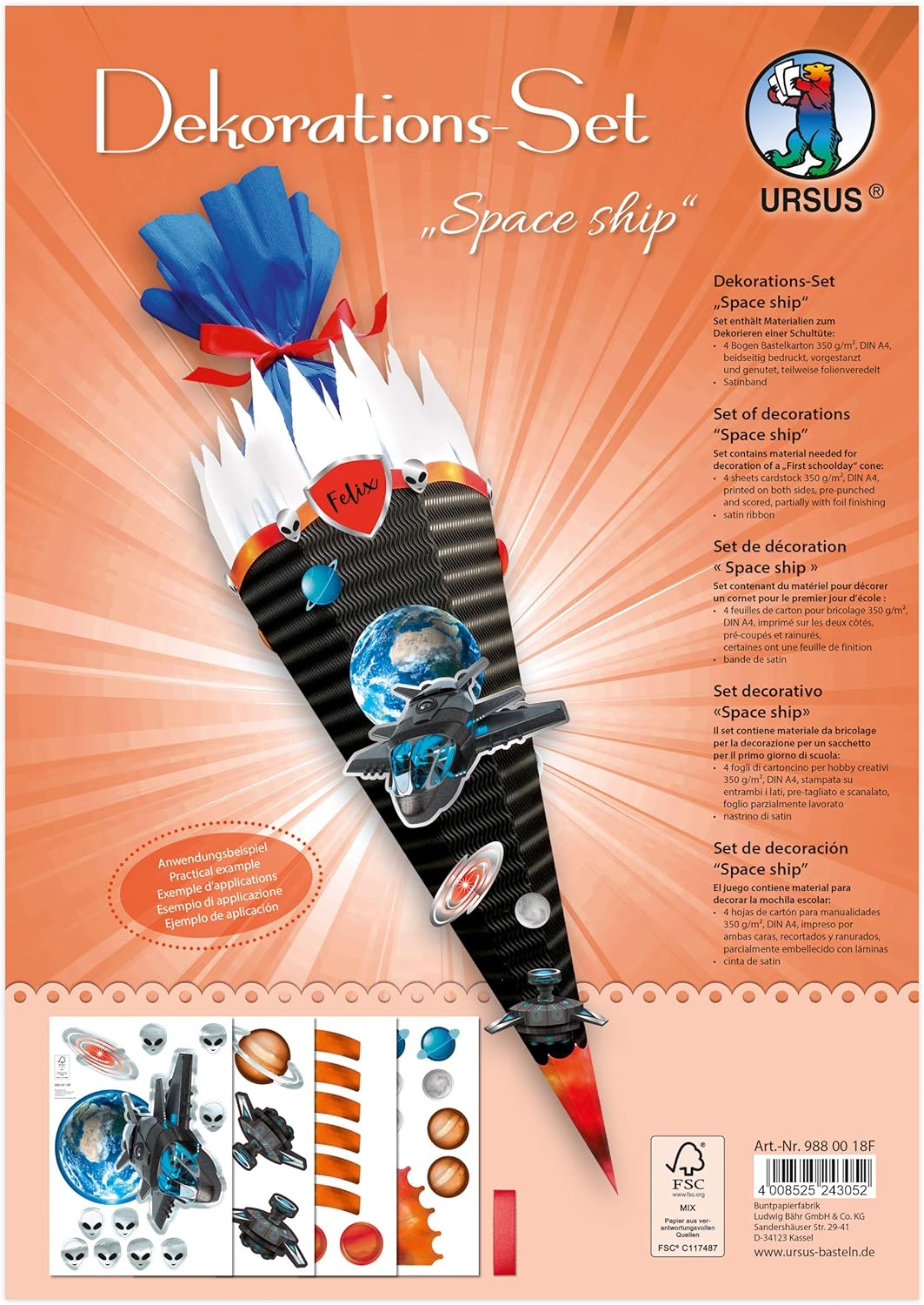 Molto spazio per la scuola, per confezionare tutte le sorprese Buona chiusura con chiusura in tessuto e nastrino cucito per il fiocco Senza PFC: con l'impregnazione BIONIC-FINISH ECO il produttore rinuncia al PFC dannoso per l'ambiente e garantisce comunque sostanze idrorepellenti Adatto per la vita: grazie alla stampa allover il cono si adatta perfettamente al torneo e ha quindi lo stesso design
