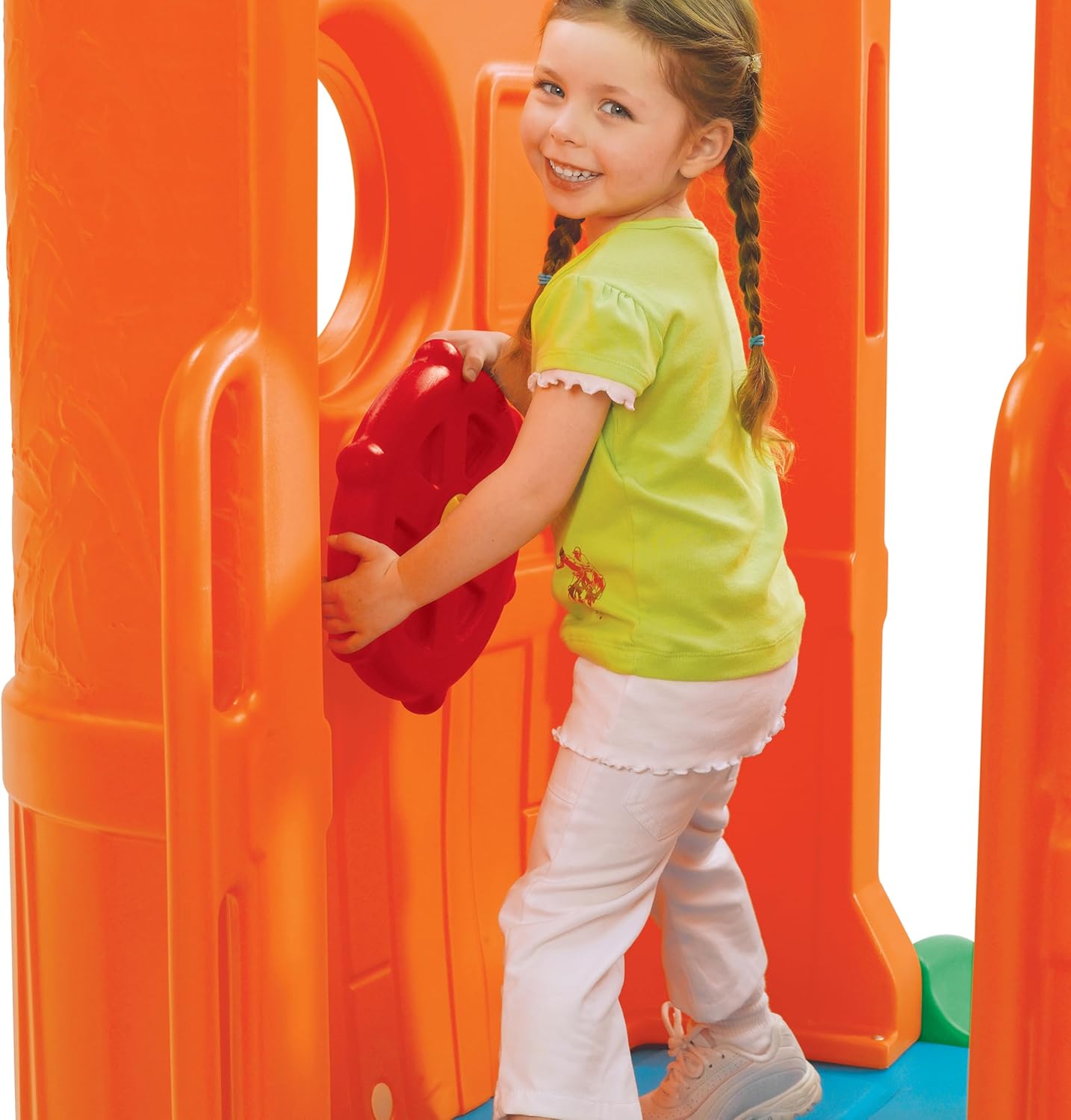 PARCO GIOCHI CON TANTE POSSIBILITÀ DI GIOCO: Porta il parco giochi nel tuo giardino con il Clubhouse Climber di Step2. Su questa attrezzatura per giocare e arrampicarsi, i tuoi piccoli possono scivolare giù per lo scivolo, strisciare nel tunnel, giocare alla guardia del castello nella torre o attraversare il ponte incorporato! Il divertimento è garantito al 1 %!.. ALTA QUALITÀ: L'attrezzatura da gioco è fatta di plastica EverTough Roto-modellata e presenta una resistenza e una durata insuperabili. Ideale per un gioco spensierato con una manutenzione minima! L'attrezzatura da gioco è facile e veloce da pulire. Basta usare salviette disinfettanti o un normale detergente domestico. CONSEGNA: L'ambito di consegna comprende le torri della Clubhouse, il ponte di collegamento, gli accessori del volante, 2 scivoli e i gradini. L'attrezzatura da gioco è adatta ai bambini a partire dai 3 anni. DIMENSIONI: 232 x 348 x 178 cm. Il carico massimo è di circa 11 kg. STEP2: Step2 progetta e produce grandi prodotti educativi per bambini dai 9 mesi ai 1 anni. Per interni ed esterni, per giocare e imparare. La gamma comprende tavoli da gioco d'acqua, cucine da gioco e attrezzature da gioco. I prodotti Step2 sono innovativi e offrono anni di divertimento!