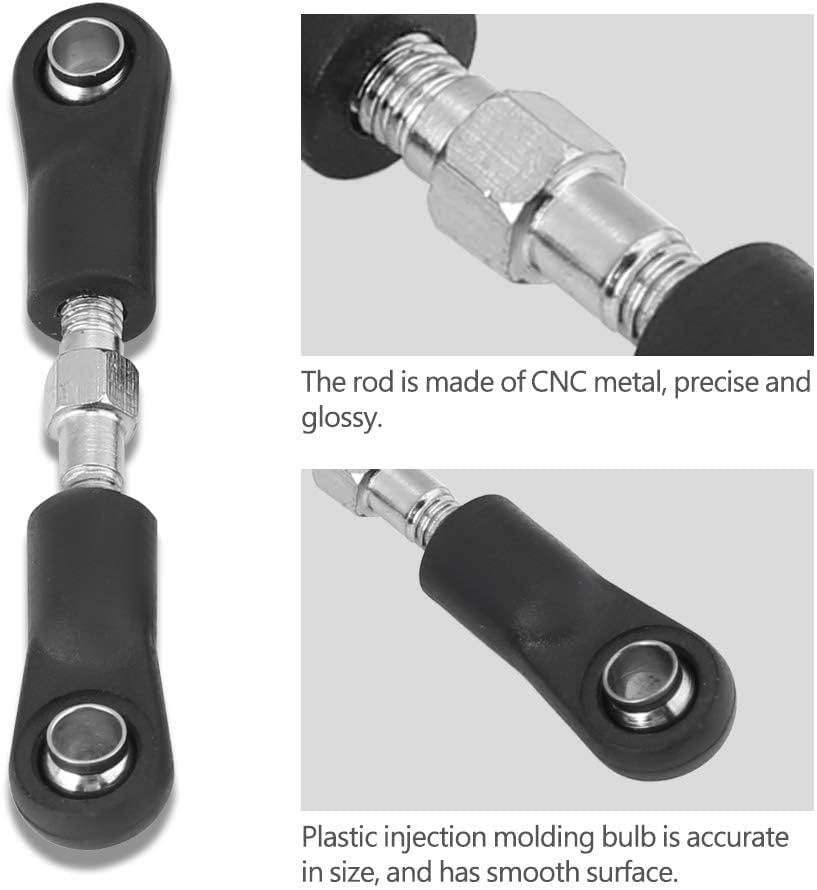 PER MODELLO ZD IN SCALA 1/16: La barra dello sterzo RC è progettata per il modello ZD in scala 1/16 ed è l'accessorio di ricambio ideale per potenziare la tua auto RC. La barra dello sterzo RC è prodotta in modo professionale e perfettamente adatta alle auto RC fuoristrada in scala 1/16 FLESSIBILE E ROBUSTA: I collegamenti del servo dello sterzo sono realizzati in plastica + metallo, flessibili e robusti. Lunghezza totale delle barre dello sterzo: circa 52 mm/2 pollici, lunghezza totale delle barre del servo: circa 45 mm/1,8 pollici LAVORAZIONE CNC: la barra dello sterzo RC è lavorata a CNC per la produzione di metallo, offrendo i vantaggi di una buona flessibilità, alta precisione e qualità costante. Garantisce la conformità alle specifiche dell'attrezzatura originale FACILE DA INSTALLARE E RIMUOVERE: Il collegamento dello sterzo RC in metallo è facile da installare e rimuovere, contribuendo a migliorare le prestazioni complessive dell'auto RC senza doversi preoccupare di complicate procedure di installazione e utilizzo. È preferito dagli hobbisti e dagli appassionati SUPERFICIE LISCIA E NUOVO LOOK: Il bulbo stampato a iniezione in plastica di questo tirante è di dimensioni precise e ha una superficie liscia, con un nuovo look e una finitura raffinata. È di alta qualità e leggero