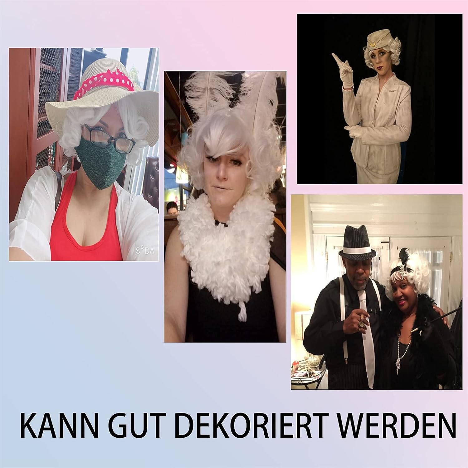 Ritardante di fiamma: Realizzato in fibra kanekalon giapponese, previene la combustione ed evita il fuoco. Test approvato con il test cutaneo, non vi è alcuna sensazione di agopuntura e nessuna allergia cutanea. Parrucca per donna adulto: dall'aspetto naturale e dal tatto morbido, dalla buona consistenza, dal forte senso e dallo stile duraturo. Passa e si muove come veri capelli umani, può essere passata per uno vero senza danneggiare i tuoi capelli. Women Wigs: perfetto per l'uso quotidiano, i cosplay di anime di Halloween, le feste in maschera e gli eventi a tema o solo per un cambio di look. A Free Wig Cap: Item include anche un classico berretto da parrucca per aiutarti a indossare la parrucca e creare un look ordinato Cappuccio regolabile per parrucca: il 100% di rete rosa traspirante all'interno della rete ti fa sentire a tuo agio quando indossi. Ci sono due cinghie di regolazione sui due lati della parrucca, che possono essere intrecciate in una posizione fissa per adattarsi a taglie differenti.100% nuovo di zecca parrucca manichino maschile / femminile