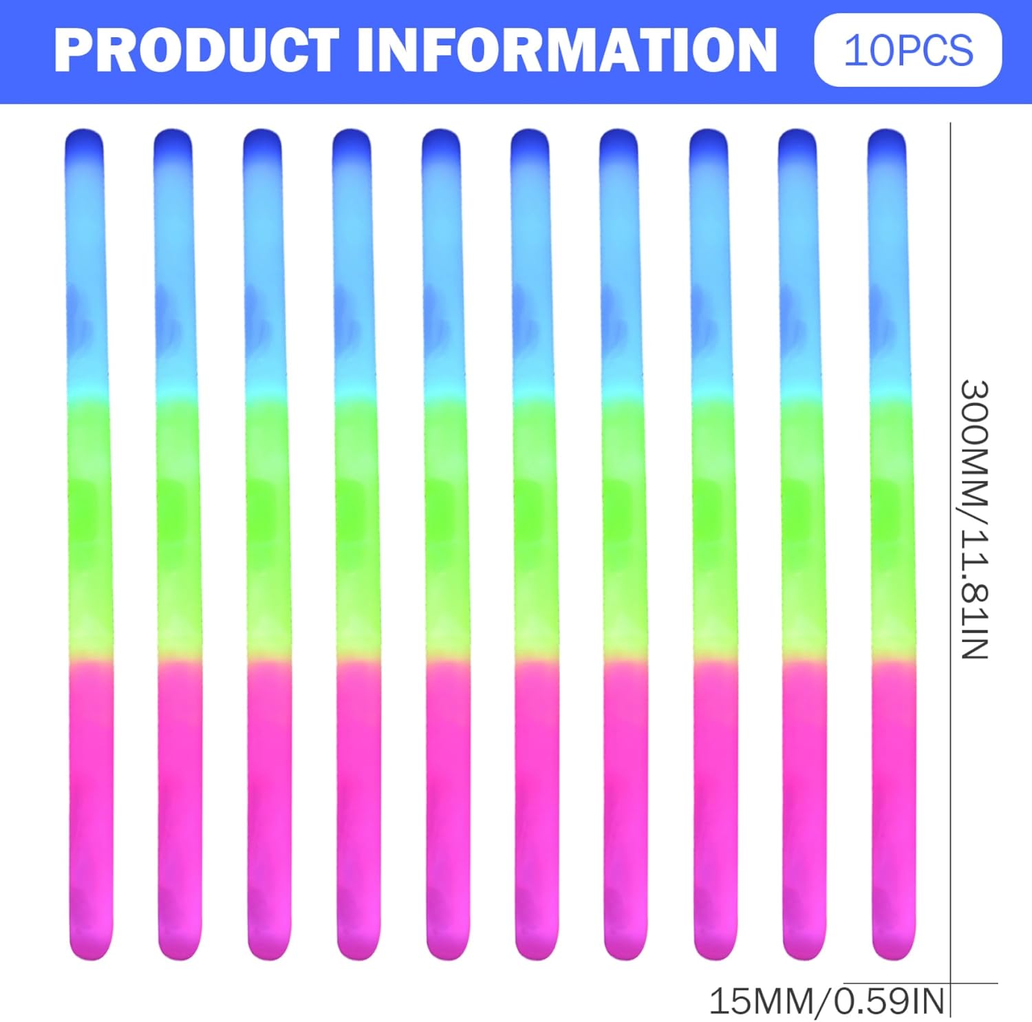 Accessori per feste versatili: ideale per matrimoni, rave, Halloween, compleanni e concerti, questi bastoncini di illuminazione da 12 pollici aiutano a creare l'umore o servire come oggetti di scena entusiasmanti, rendendo qualsiasi raduno indimenticabile evidenziando l'atmosfera unica del tuo evento. Facile da usare e condividere: semplicemente accenderli con un clic, non è necessario agitare, rendendoli convenienti per tutte le età e facili da distribuire tra gli ospiti, migliorare la partecipazione e il divertimento del gruppo durante le celebrazioni. Sicuro e di lunga durata: realizzati con luci di plastica e LED non tossiche, questi bastoncini luminosi offrono un'alternativa sicura ai tradizionali bastoncini chimici con tempo di utilizzo prolungato, garantendo ore di divertimento senza sbiadire o rottura. Vibranti illuminazioni a LED: questi bastoncini LED da 10 pezzi emettono una luce luminosa e colorata che migliora istantaneamente qualsiasi evento o celebrazione, creando un'atmosfera eccitante e festosa che affascina tutti tutti..Perfetto per feste, concerti e feste notturne. Leggero e portatile: compatto e facile da trasportare, questi bastoncini di bagliore in schiuma a LED si adattano comodamente a mani e borse, rendendoli perfetti per uso in movimento, eventi all'aperto o come aggiunta divertente a corse notturne, campeggio o festival.