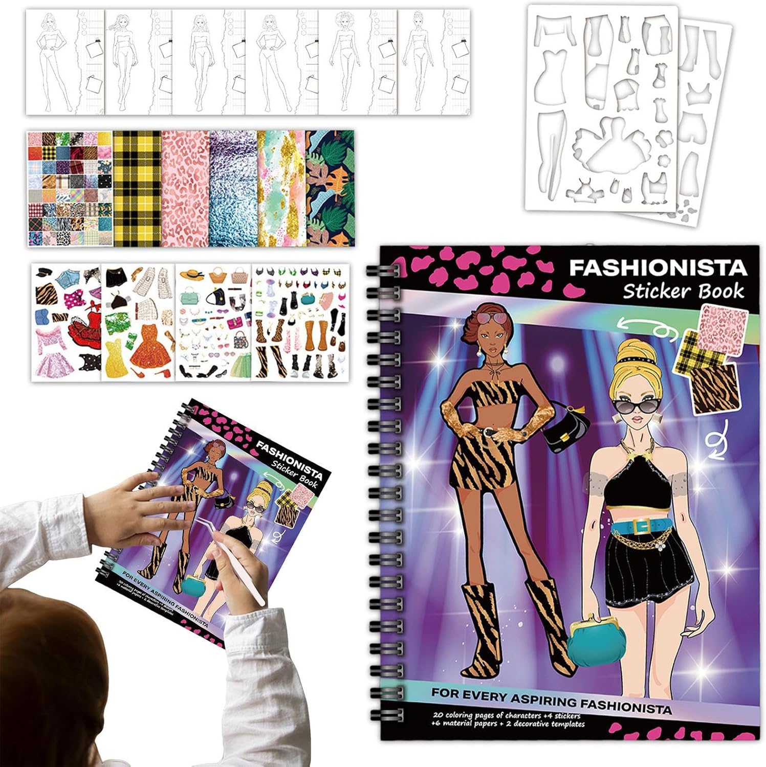 Creatività multiuso: Ispira l'esplorazione fashion e l'autonomia espressiva mediante un libro adesivi creativamente inclusivo, accompagnando la transizione dall'infanzia all'adolescenza con attività di scoperta dello stile Gioco Creativo: Progettato per ispirare i piccoli, questo set unisce arte e gioco interattivo per promuovere lo sviluppo creativo e migliorare le capacità espressive in modo coinvolgente attraverso attività manuali appassionanti Gioco Collaborativo Familiare: Unite la famiglia con questo libro da colorare interattivo che funge anche da gioco di condiviso, ideale per rafforzare il genitore-figlio e stimolare la fantasia durante attività creative piacevoli * Italian Translation: Divertimento Outfit Fantasioso: Goditi un libro di adesivi sul fashion design con oltre 100 adesivi di vestiti, varietà di contenuti ricca e maggiore creatività sugli outfit abbinata a pagine da colorare con schizzi di figure per esplorazione artistica Apprendimento Attivo: Sviluppa abilità cognitive con attività coinvolgenti progettate per migliorare capacità motorie fini e coordinazione occhio-mano, offrendo esperienze creative che aumentano concentrazione e competenze tramite movimenti di precisione