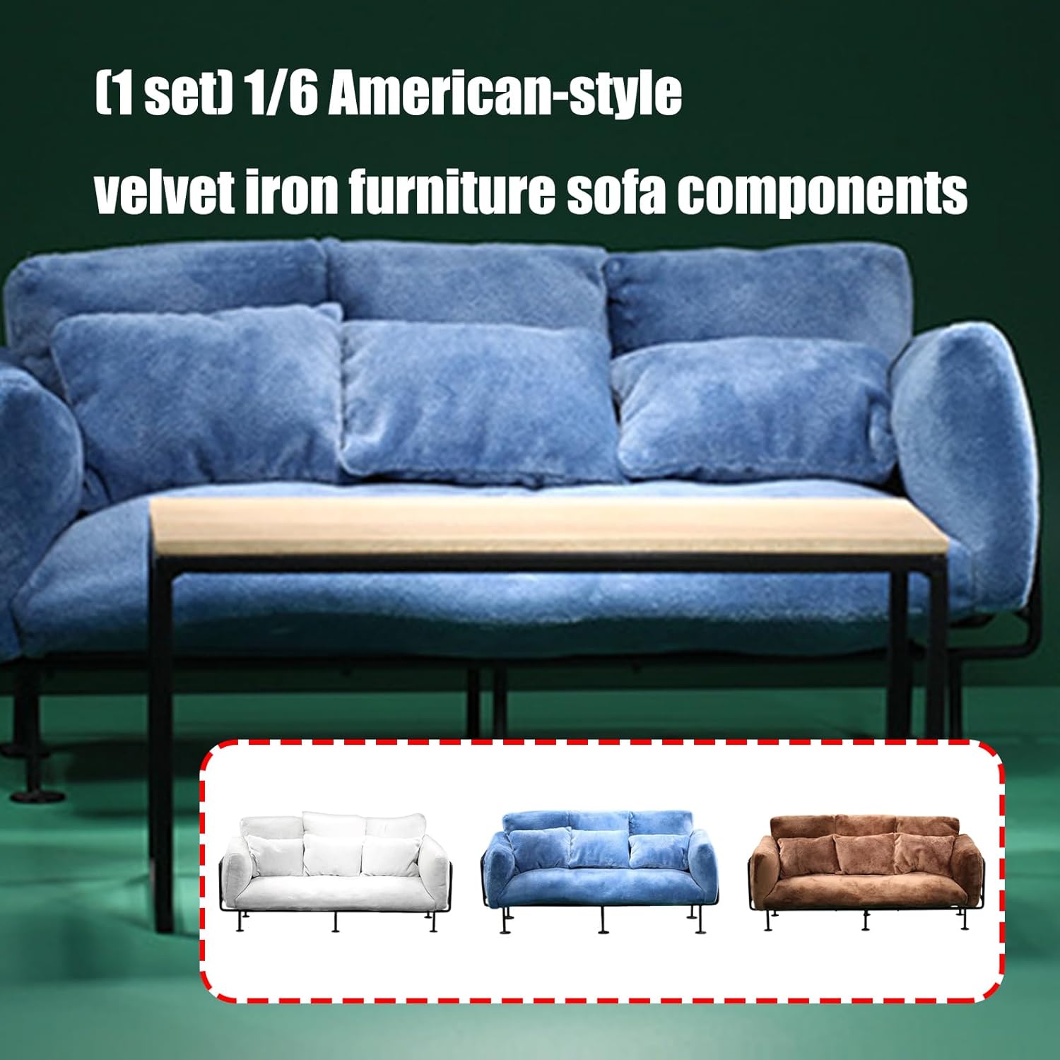 Ideale per collezionisti e hobbisti che cercano mobili di alta qualità per figurine anime o modelli di robot in un ambiente curato I componenti modulari consentono una facile personalizzazione, adattandosi ai vincoli di spazio mantenendo una sofisticata estetica del design europeo Le superfici in tessuto antimacchia semplificano la manutenzione per frequenti cambi di layout, preservando condizioni incontaminate su display da collezione dinamici e fotografie Scala perfettamente per configurazioni di scena, scene di action figure o come elegante centrotavola in miniatura in decorazioni paesaggistiche in appartamento studio La tappezzeria vellutata di alta qualità incontra la struttura in ferro battuto in questo set di divani in stile europeo, con struttura in ferro per un uso duraturo
