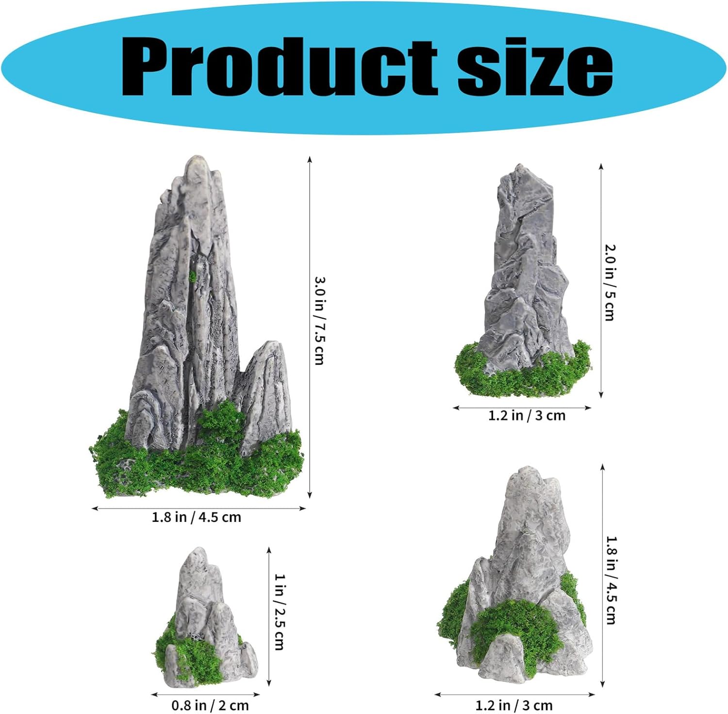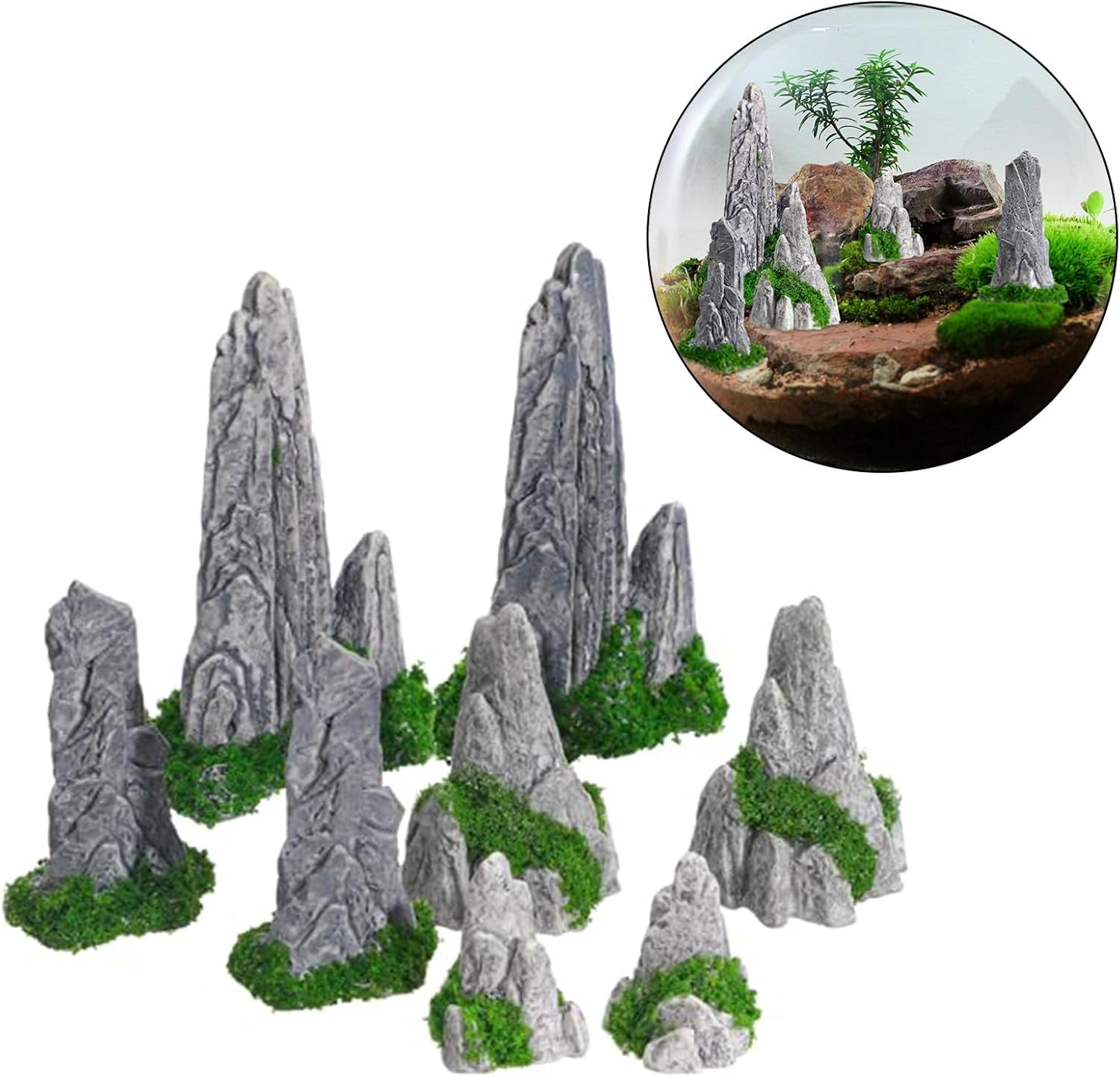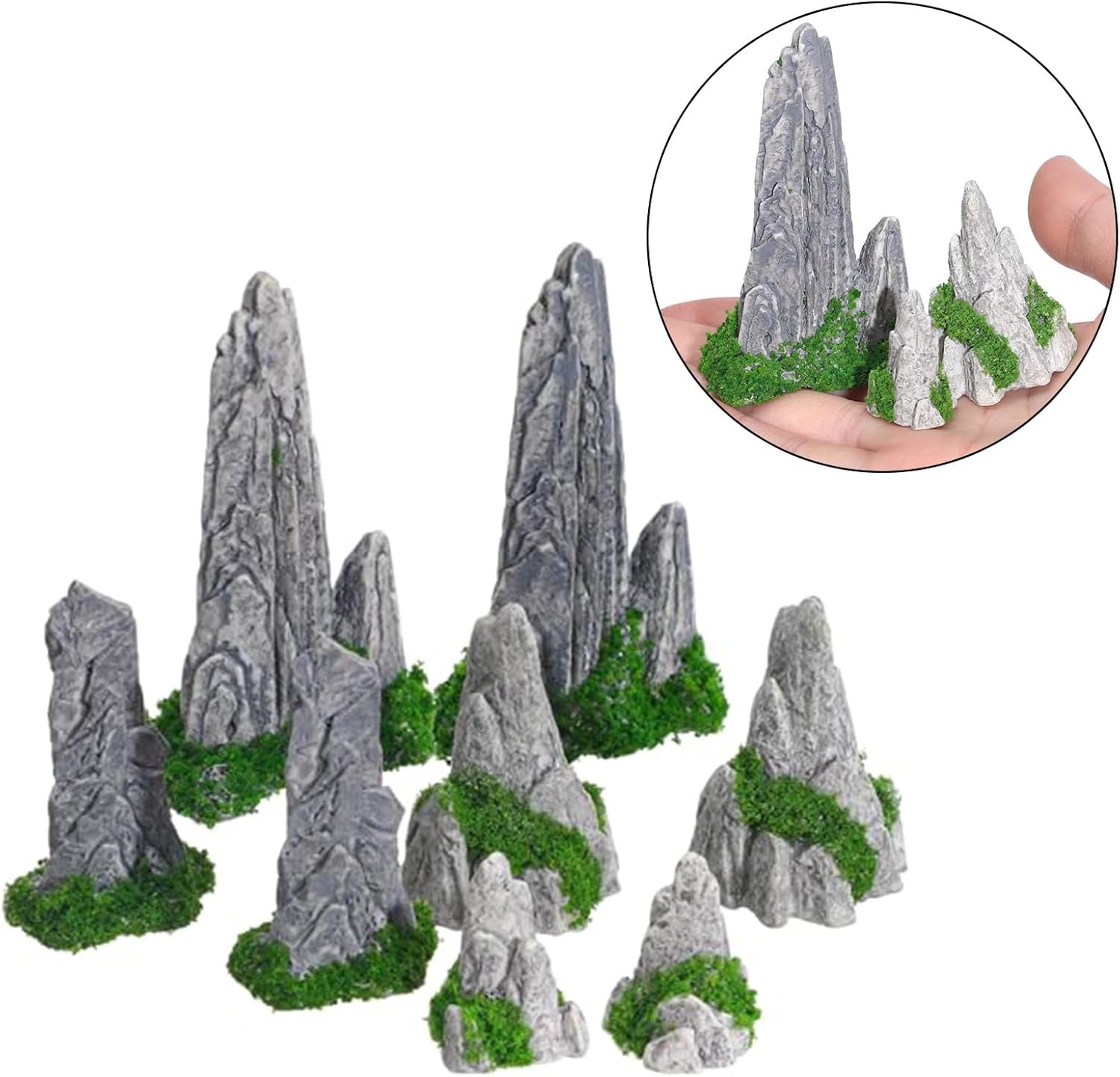 Robum Build: queste decorazioni in resina sono resistenti alle condizioni meteorologiche e alla luce solare per garantire che rimangano indipendentemente da essere utilizzate all'interno o all'esterno Applicazioni creative: ideali per la casa o per progetti artistici, queste decorazioni in resina offrono possibilità fantasiose e fanno il compito di rendere paesaggi attraenti sia divertenti che stimolanti COLLEZIONE FLESSIBILE: questo set contiene diverse misure e tipi di decorazioni montuose, che consentono diverse composizioni di creare disegni paesaggistici unici per qualsiasi ambiente, dai piccoli display del desktop ai grandi spazi esterni Estetica naturale: queste decorazioni montuose in miniatura aggiungeranno raffinatezza e curiosità alle tue terrazze, al ponte o agli interni che si distinguono come decorazione centrale Aspetto realistico: ogni decorazione da montagna in miniatura in resina meticolosamente realizzata e formata, mostrando intricate caratteristiche simili al modello roccioso naturale e dona una sensazione realistica al tuo paesaggio o terrazzo