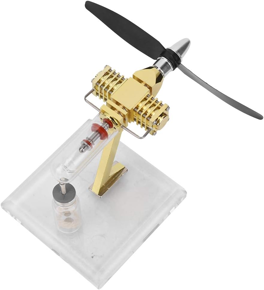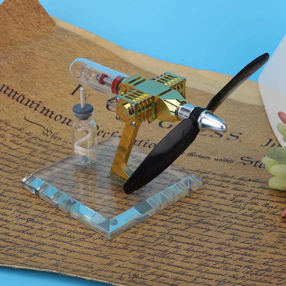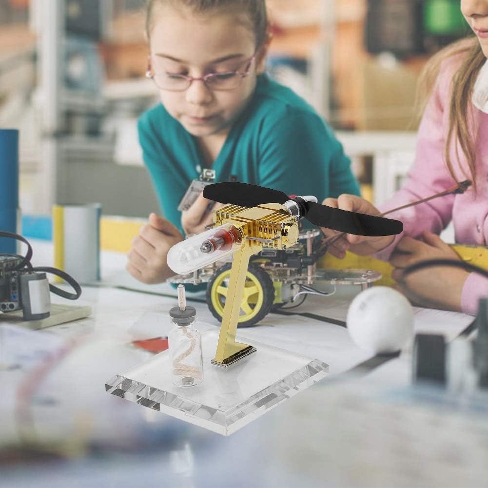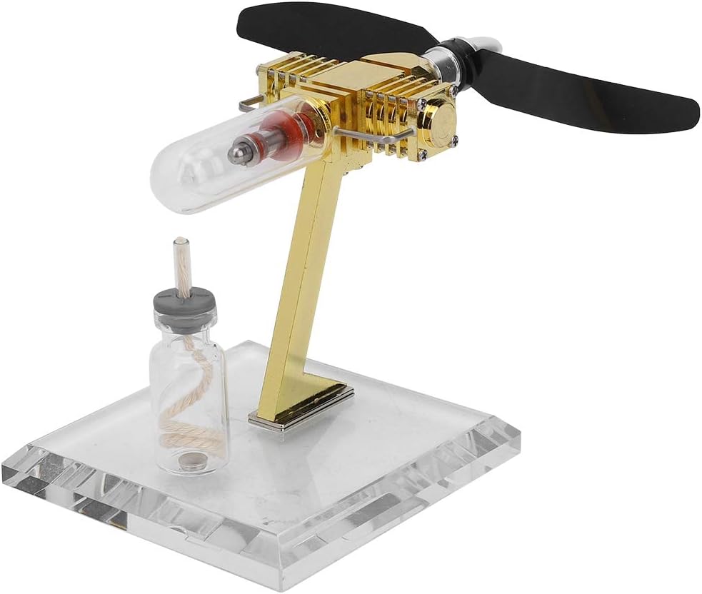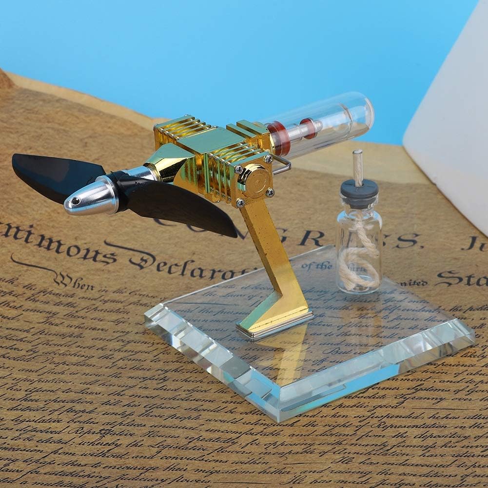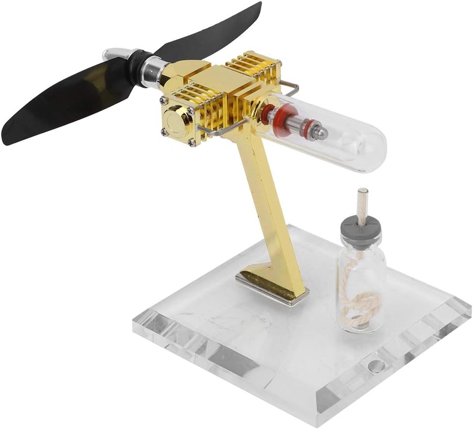 Il motore è come motore a vapore in cui tutto il calore del motore fluisce dentro e fuori attraverso la parete del motore. Velocità di rotazione fino a 3700 giri/min, ottima per gli amanti del vapore. motore Stirling è motore termico che funziona mediante compressione ed espansione ciclica di aria o altro gas, il fluido di lavoro, a diversi livelli di temperatura in modo tale che vi sia una conversione netta di energia termica in lavoro meccanico. Attraverso l'operazione pratica, puoi osservare l'intero processo del motore stirling Velocità di rotazione fino a 3700 giri/min, ottima per gli amanti del vapore.