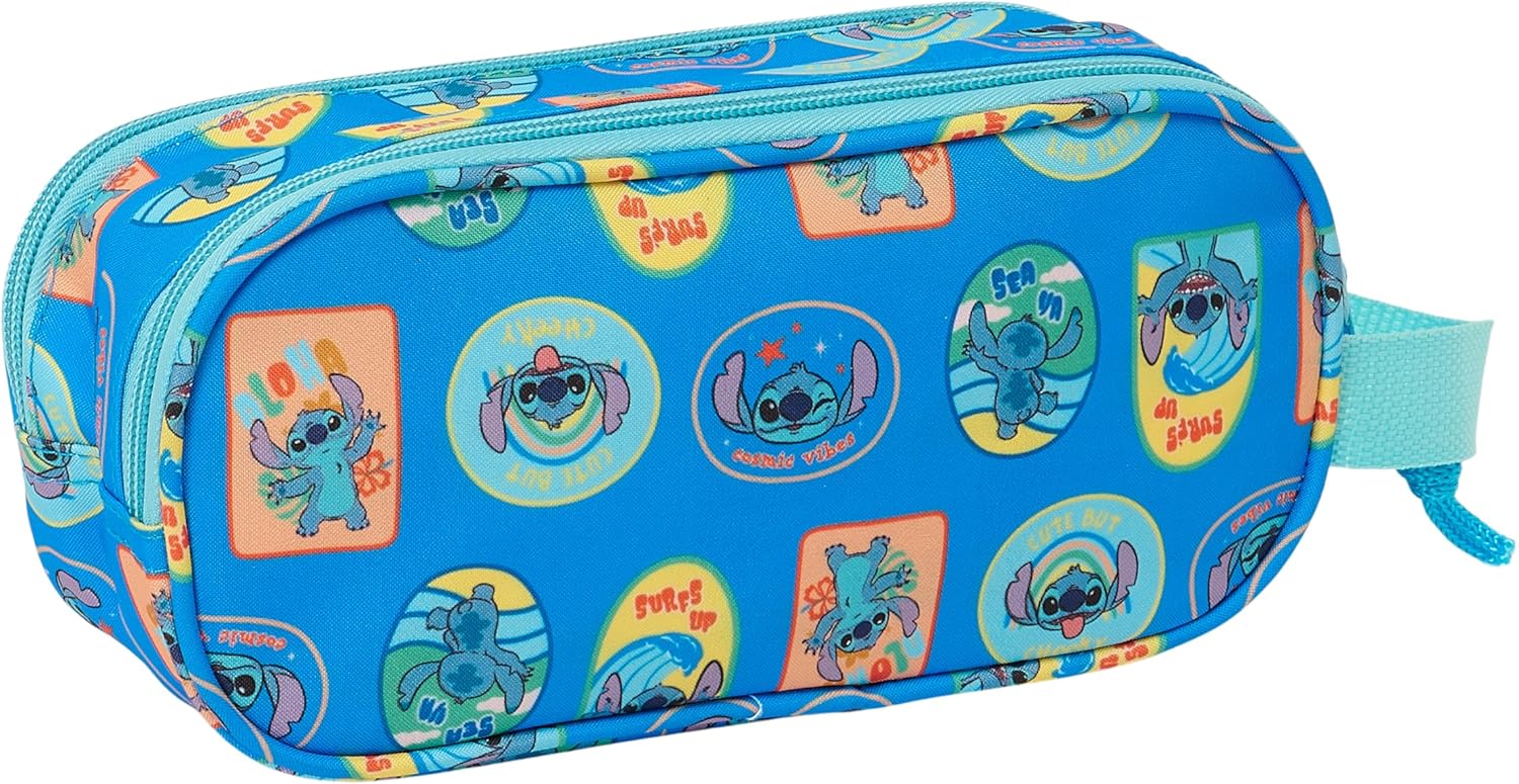 Stitch 3D - Astuccio doppio 3D, astuccio per bambini, ideale per bambini in età scolastica, comodo e versatile, qualità e resistenza, 21 x 6 x 8 cm, colore blu, blu, Estándar, Casual