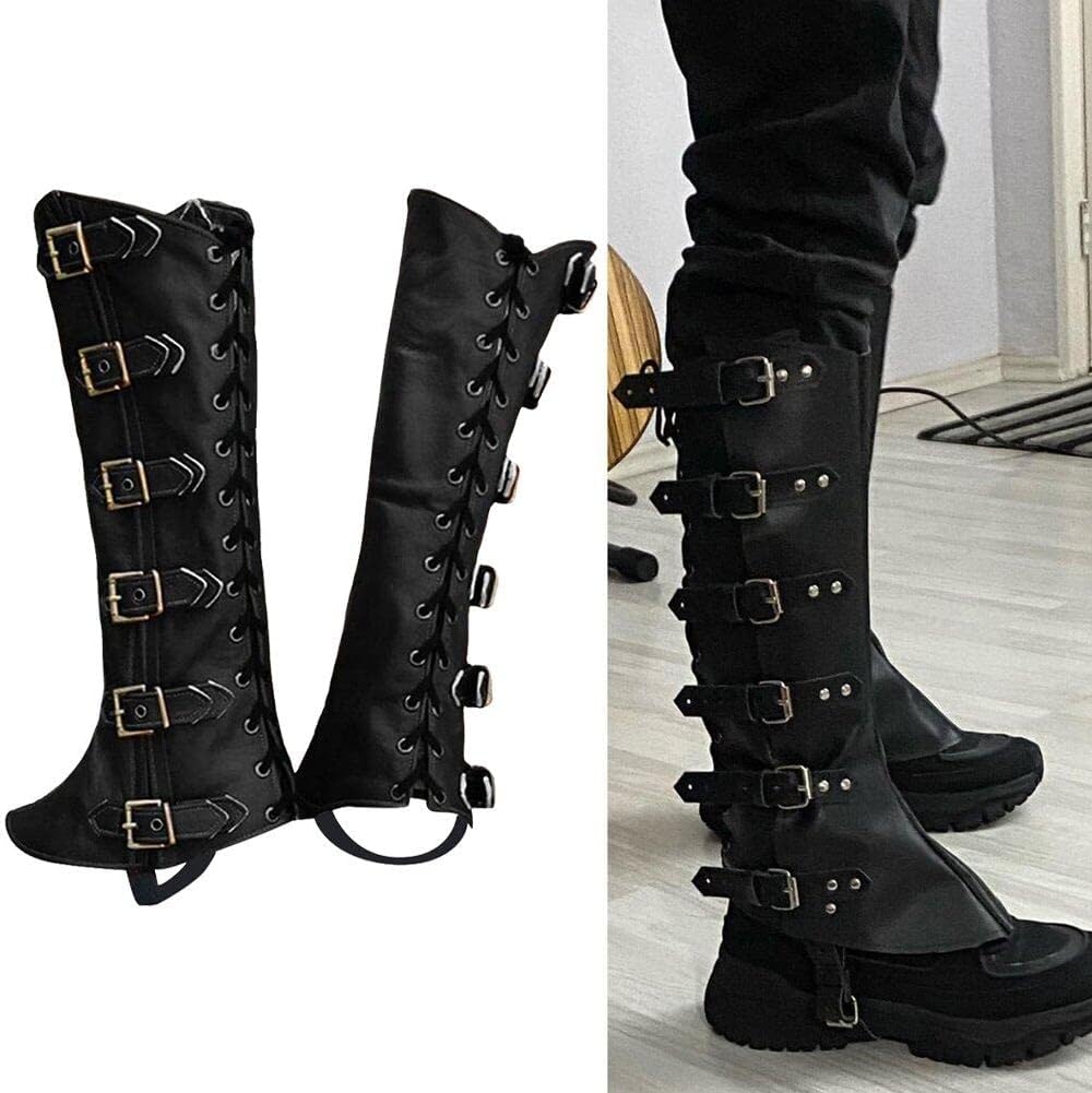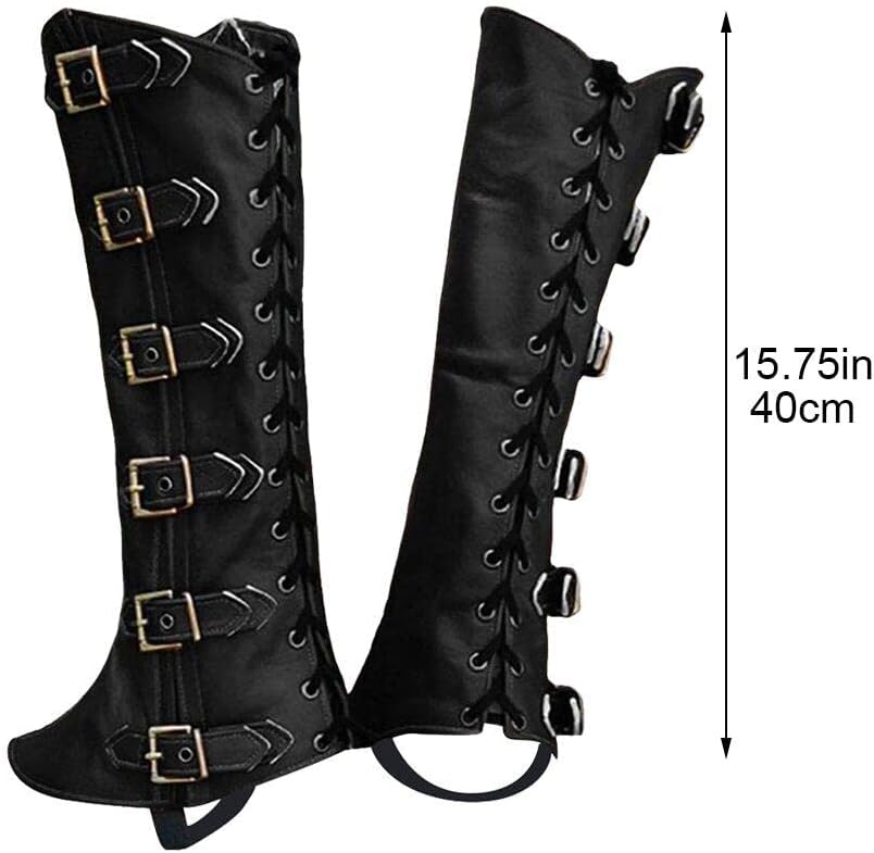 Stile vintage: la nostra scarpa per la protezione delle gambe può essere abbinata a qualsiasi abbigliamento vintage per darti il perfetto look di metà secolo o rinascimentale. Dimensioni: circa 40 cm di lunghezza, la dimensione può essere regolata in base all'altezza. Lo stile è uno stile medievale. Design: questi copristivali per la protezione delle gambe possono regolare la tenuta a piacimento in base alle tue esigenze, il design antiscivolo garantisce la sicurezza del tuo piede. Materiale premium: realizzate in materiale PU ecologico, queste ghette protettive per le gambe sono robuste e durevoli per mantenere le gambe dei pantaloni pulite e ordinate su terreni accidentati o cespugli. Applicazione: scarpe protettive per le gambe in PU in stile medievale adatte a vari, come cosplay, mascherate, spettacoli teatrali, rievocazioni storiche, ecc. È molto adatto per Halloween, Natale e altri festival.