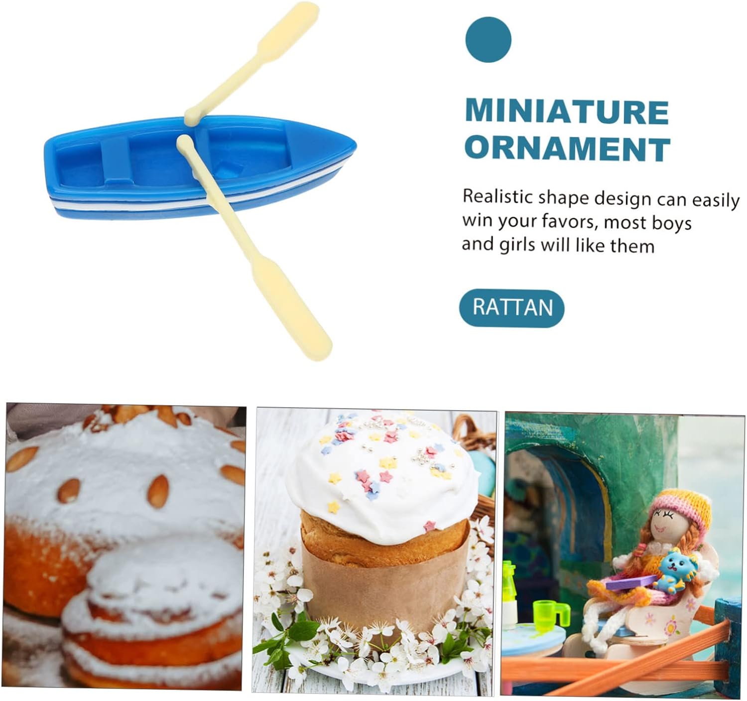 Modello di barca da pesca: scelta di materiale in resina, pregevole fattura, questo ornamento è liscio, resistente e di , decorazioni . Decorazione della ruota : dimensioni ridotte, aspetto adorabile, questo è un oggetto in miniatura per e case delle bambole per bambini, modello di pesca. Decorazioni per barche in miniatura: questo è un set di modelli di barche e remi progettati con graziose mini forme, pregevole fattura, non facile da sbiadire, mini statuetta di barca a vela. Forniture per decorazioni per la casa: questo adorabile lavoretto è molto adatto ai bambini, può essere un ottimo giocattolo e il miglior compagno di gioco per loro, arredamento . Ornamento per la camera dei bambini: stile barca da pesca in miniatura, questa semplice decorazione è molto alla moda e piena di senso dell'arte, mini contenitori.