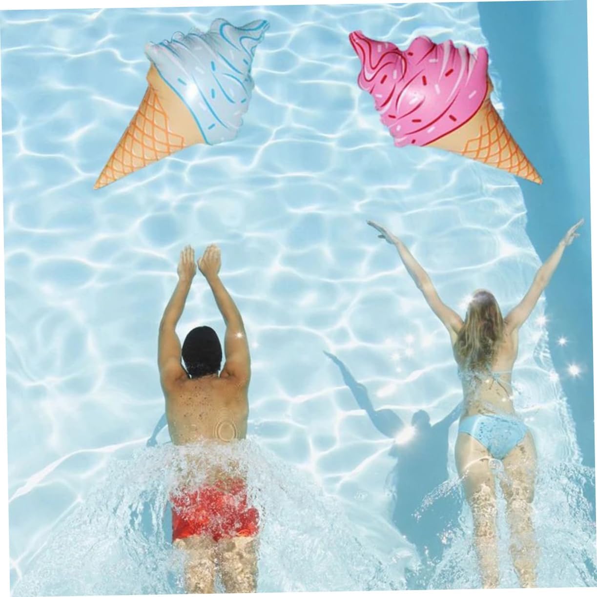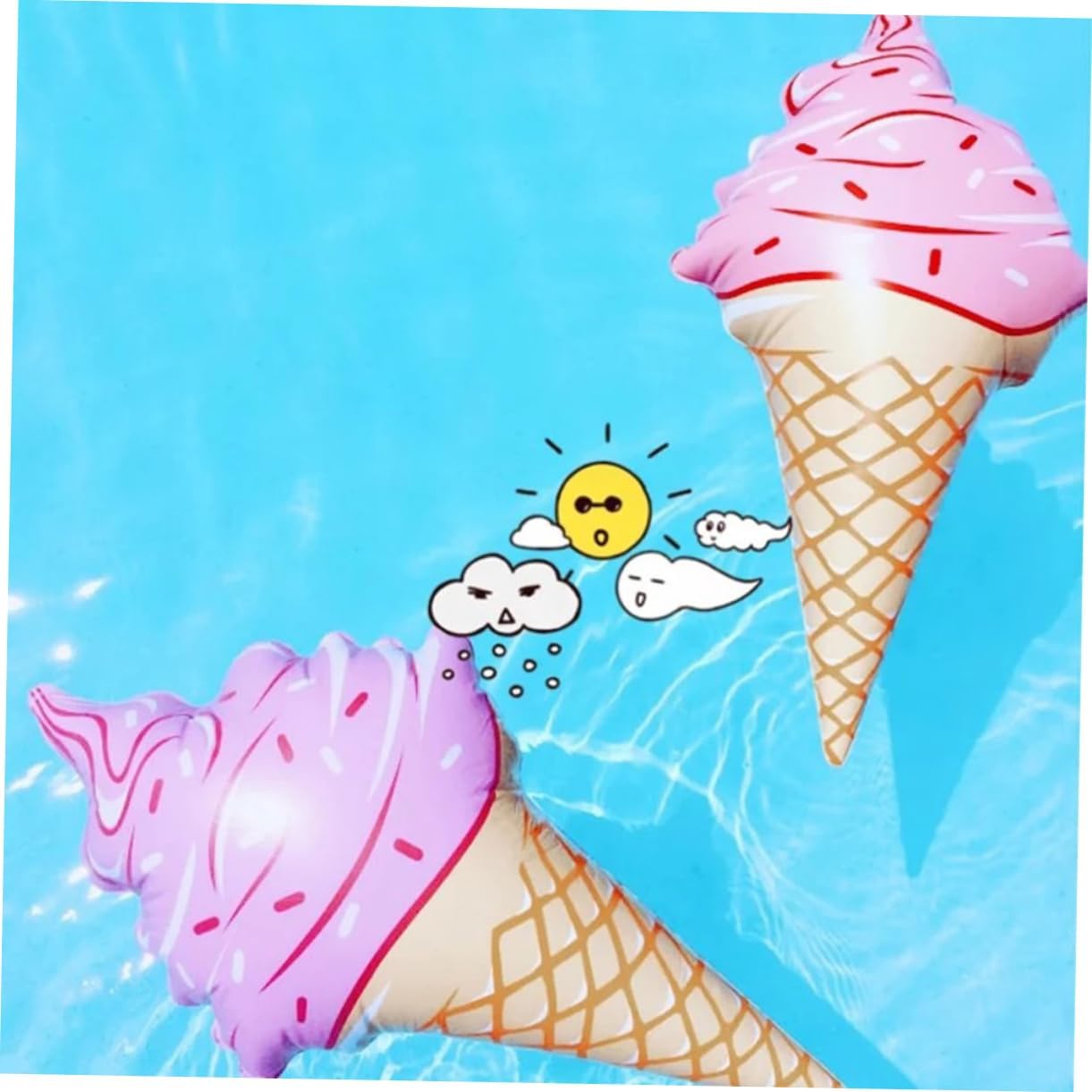 Coni gelato gonfiabili: questi gelati gonfiabili saranno il regalo perfetto per ogni amante del gelato! I bambini adoreranno questi gonfiabili per decorare la loro stanza. Giochi da piscina: realizzati in PVC. Combinato con l'anti-sgonfiaggio, puoi godertelo per ore e ore! apprezzerai appieno la finitura quando ci giochi. Giocattoli: questi coni gelato gonfiabili attirano l'attenzione durante le feste di compleanno dei bambini. Portali alle feste in piscina e gonfiali in modo che possano diventare galleggianti giganti e galleggiare!