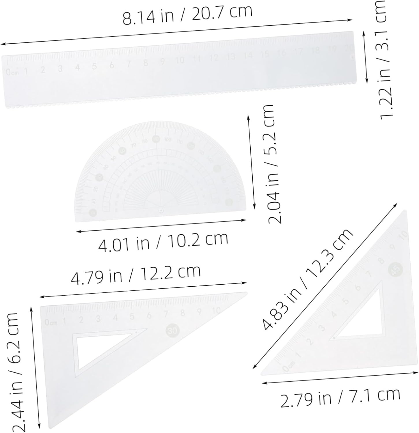 Goniometro per geometria: con numero di scala, garantisce la precisione, un set di strumenti di disegno eccellente e utile per te, disegno del righello triangolare Cancelleria per studenti: la testa del righello antiscivolo dal design ergonomico lo rende comodo, kit righello multifunzionale Accessorio da disegno: il set include un righello diritto, un triangolo e un goniometro, fornendoti gli strumenti necessari per misurazioni precise di angoli e lunghezze, righello e goniometro Forniture per la classe: e altre festività, facendo sentire loro il tuo e cura, goniometro per la geometria della classe Geometrico triangolare: il kit righello può essere utilizzato in classe, ufficio, casa o lavoro, ovunque e ogni volta che è necessario utilizzarlo, kit di misurazione righello