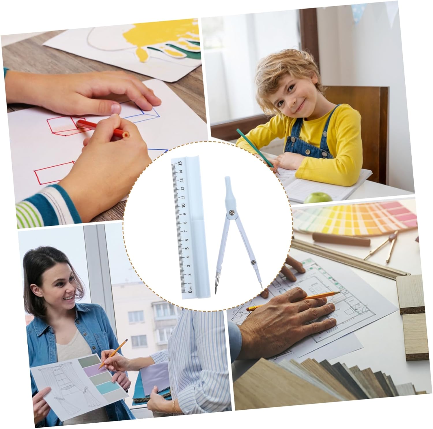 Estensore per matita: questo strumento innovativo combina bussola, penna e righello in solo, aumentando significativamente la tua efficienza in vari compiti, bussola per la scuola Scriba in carburo: il suo design elegante e moderno aggiunge un tocco di raffinatezza alla tua scrivania, rendendolo non solo strumento ma anche un accessorio elegante che abbina a qualsiasi arredamento per ufficio e materiale scolastico universitario Kit di materiale scolastico: il suo design elegante e contemporaneo non ha solo scopo pratico ma aggiunge anche un tocco di tuo spazio di lavoro, rendendolo visivamente accattivante, divisori in metallo Materiale estetico per il rientro a scuola: compatto e portatile, questo strumento è per studenti, professionisti e hobbisti che necessitano di una soluzione affidabile, in movimento, con una bussola professionale Quaderno di esercizi di geometria: realizzato in plastica e materiali metallici, questo strumento garantisce una durata eccezionale e prestazioni affidabili nel tempo, goniometro