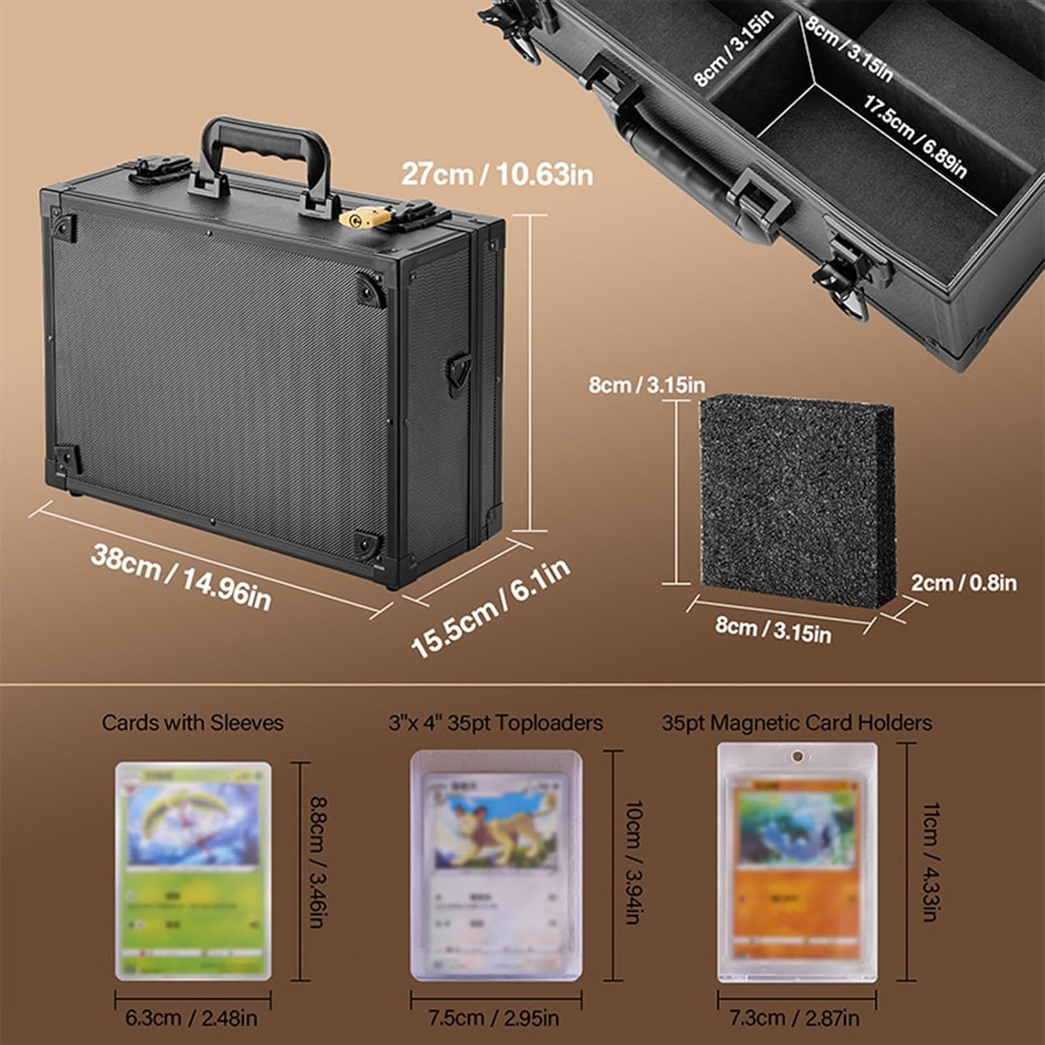 Ampio spazio: abbastanza spazioso da contenere in sicurezza più di 600 carte o più di 140 supporti per schede magnetiche per l'archiviazione organizzata e protetta della tua collezione Protezione sicura della carta: il lucchetto aggiunto fornisce una protezione infallibile da furti, urti e graffi, mantenendo le tue carte commerciali al sicuro nei 6 strati di imbottitura in schiuma Misura conveniente: trasporta senza sforzo la tua collezione di carte a conferenze, fiere ed eventi con la maniglia ergonomica e la tracolla regolabile per un facile trasporto Ampia applicazione: con il suo design robusto, questa scatola portaoggetti è perfetta per proteggere e organizzare la tua collezione di preziose carte commerciali, ideale per qualsiasi appassionato di carte Mantieni le carte ordinate: con 6 scomparti per ospitare vari tipi di carte da baseball e commerciali, mantieni la tua collezione organizzata e facile da accedere
