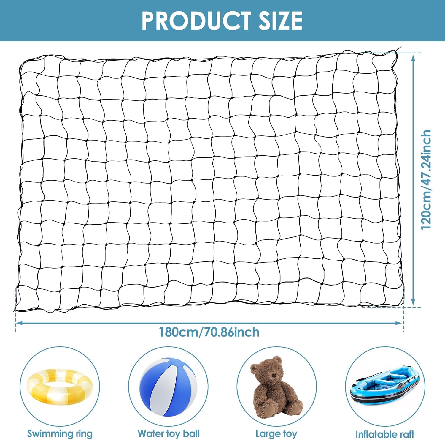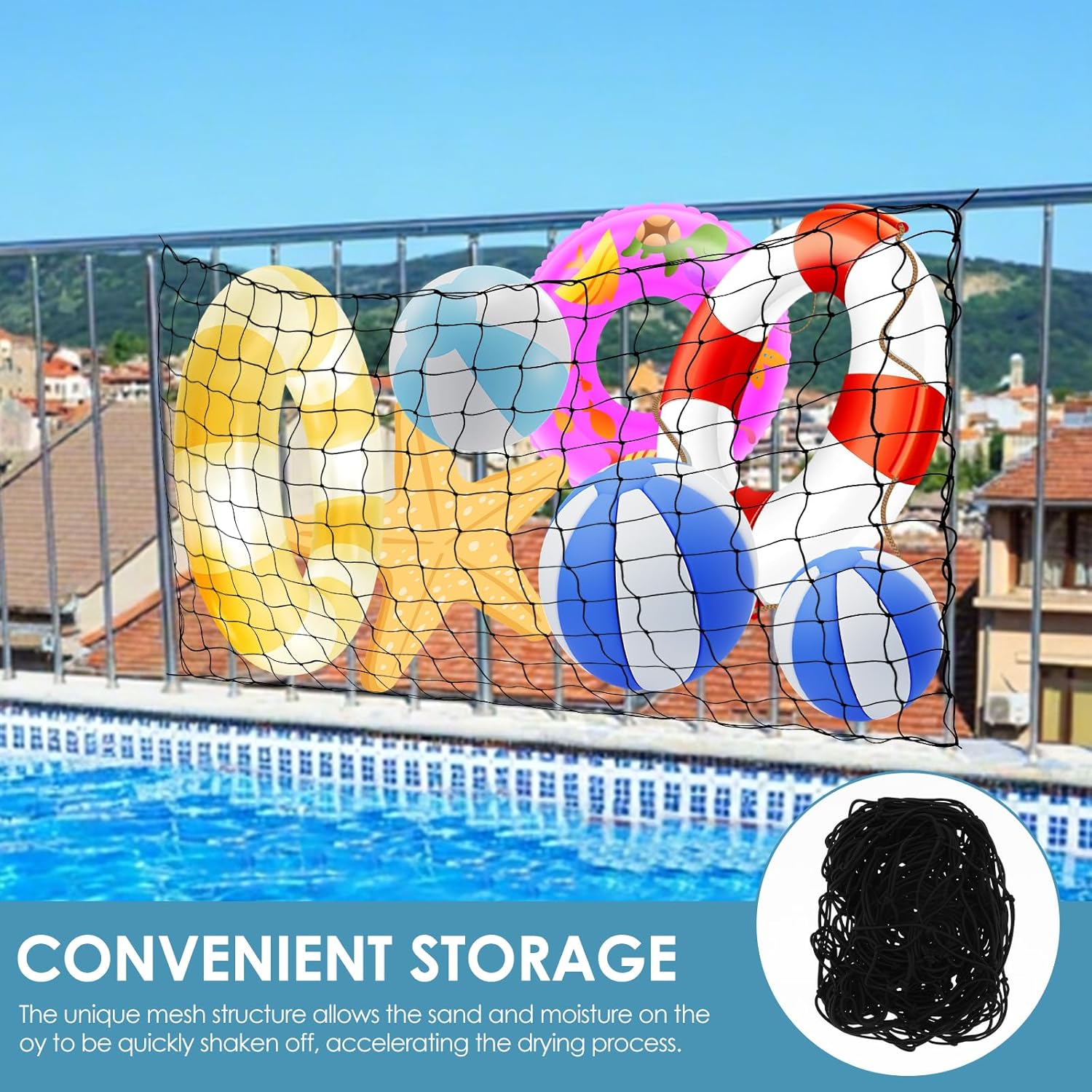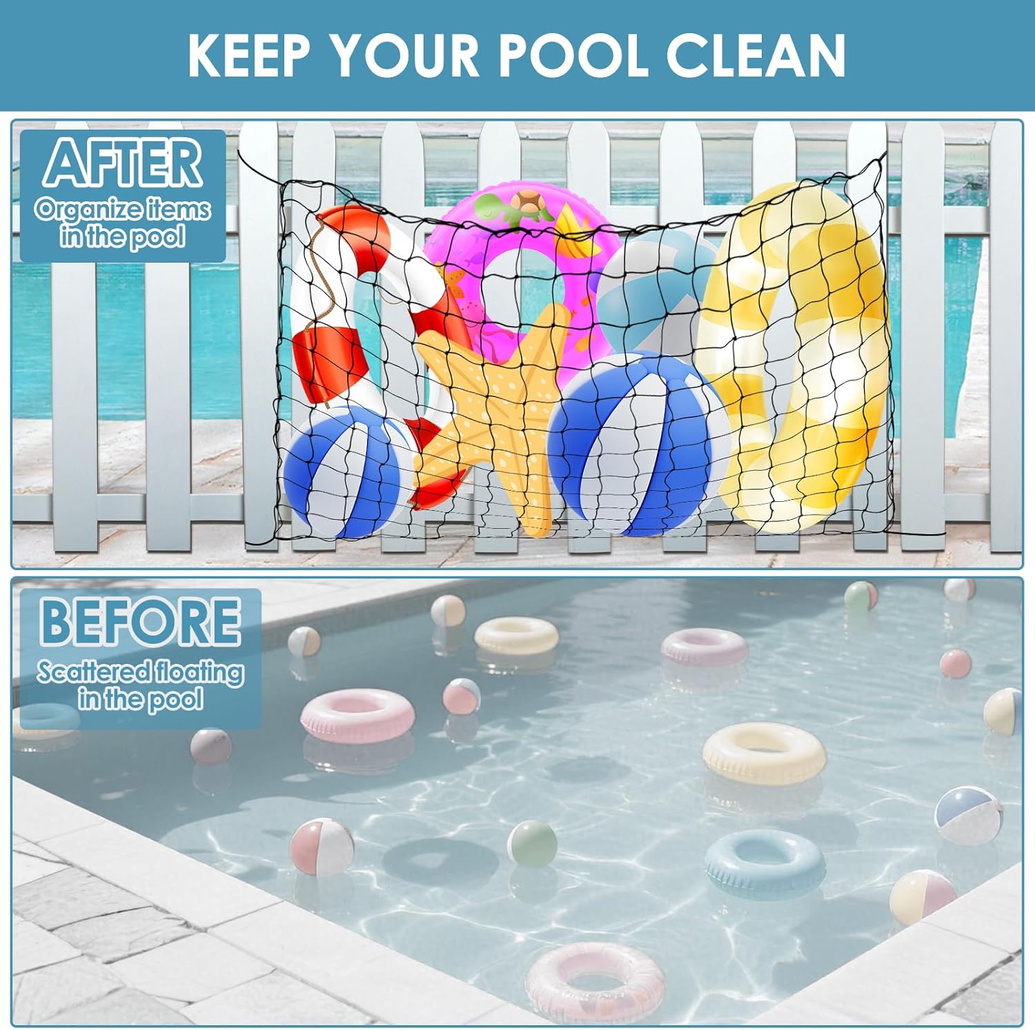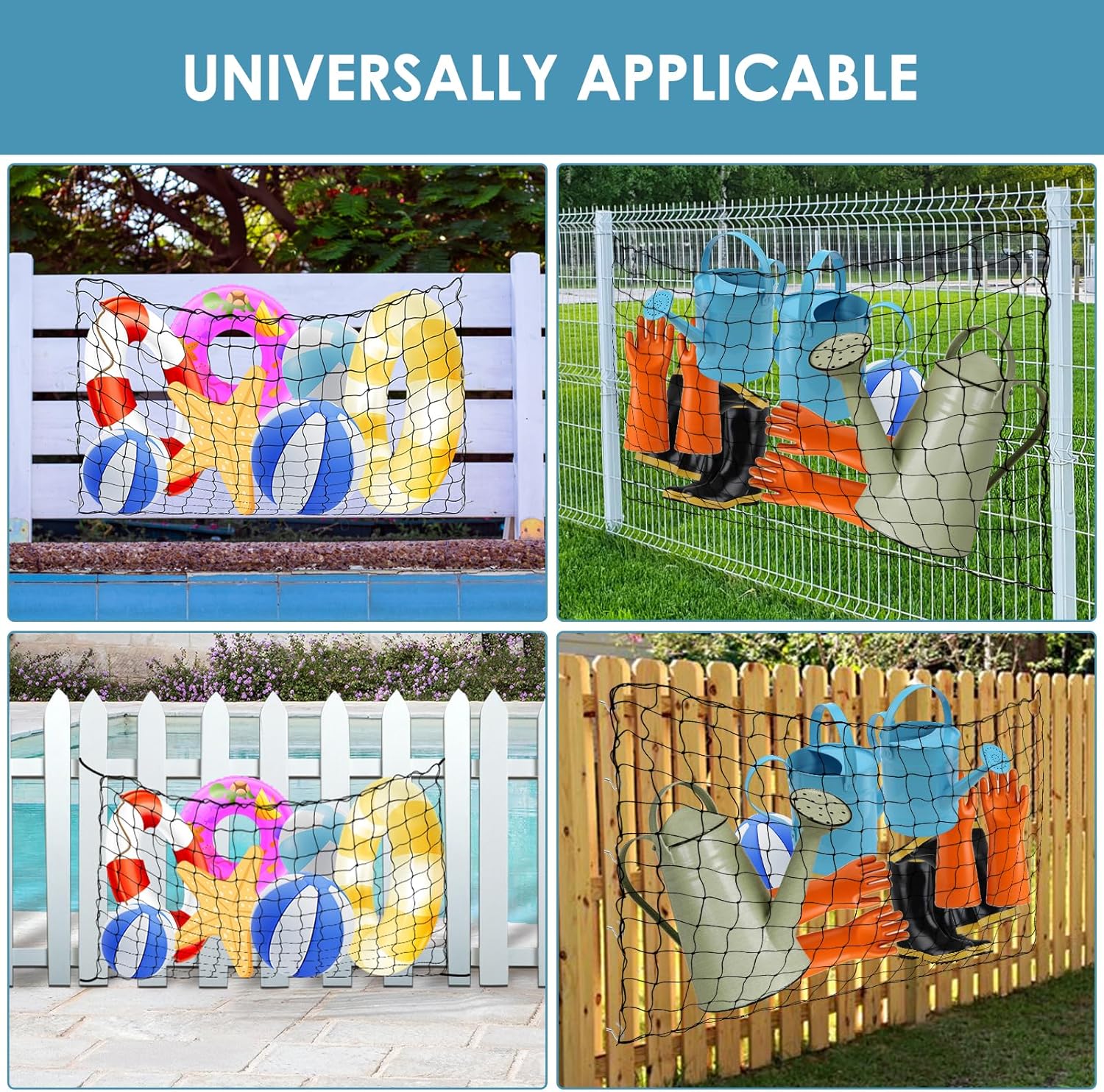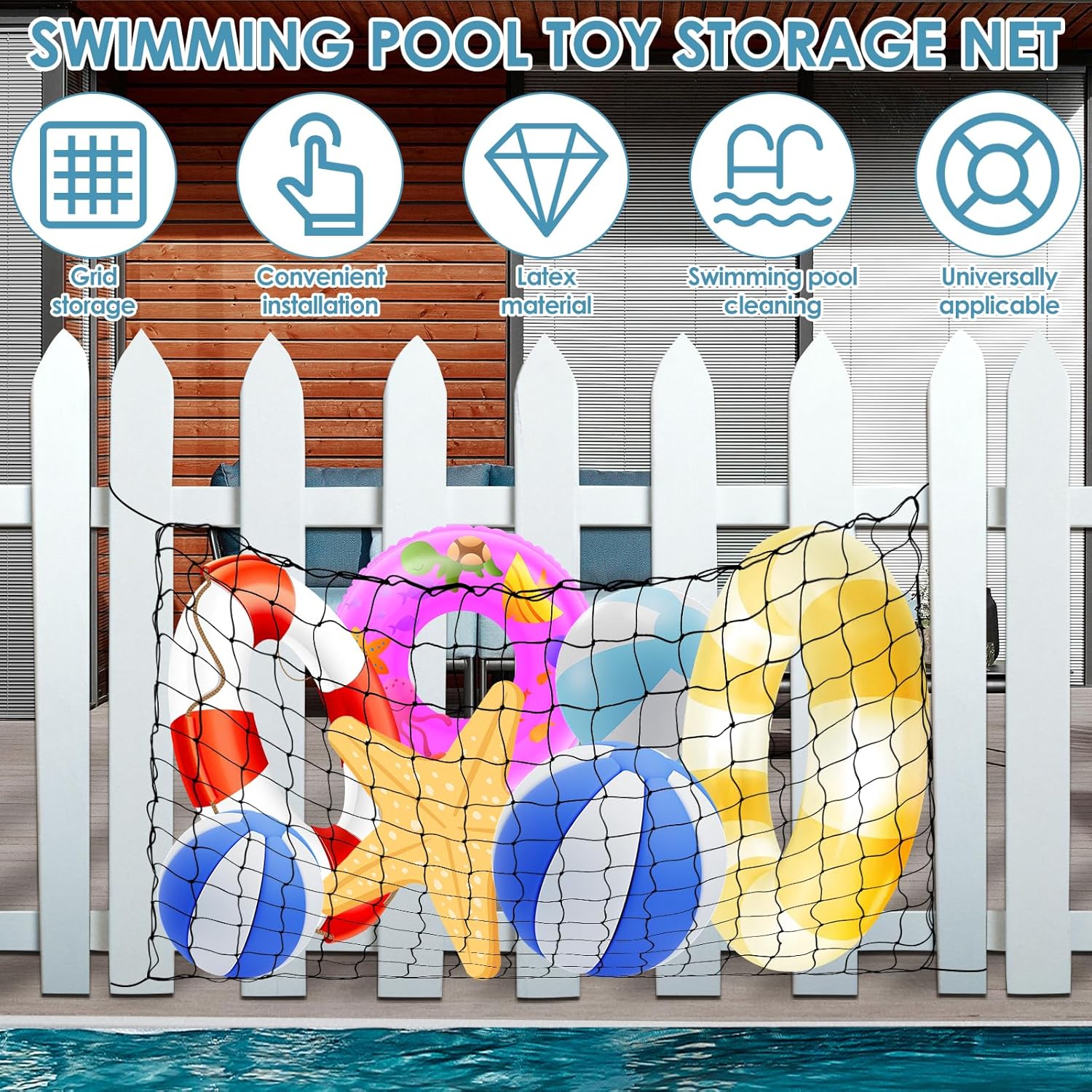 Spazioso contenitore elastico: questa rete per riporre i giocattoli da piscina misura 180 x 120 cm in piano e presenta un design a rete elastica che può facilmente ospitare giochi acquatici di grandi dimensioni come gommoni e galleggianti, mantenendo la piscina pulita e organizzata. Facile da pulire: l'esclusiva struttura a rete scuote rapidamente sabbia e acqua, previene l'umidità e si asciuga rapidamente, mentre per pulirlo è sufficiente un semplice risciacquo. Materiale di alta qualità: realizzato con corde in lattice spesse 4 mm che forniscono prestazioni eccellenti anche alla luce solare diretta o in condizioni umide e garantiscono un uso duraturo. Installazione rapida e senza problemi: 20 ganci per un facile fissaggio a recinzioni in legno o vinile (richiede corde di recinzione) e si piega in modo compatto quando non in uso per riporlo e trasportarlo comodamente. Uso multifunzionale: perfetto non solo per i giochi da piscina, ma ottimo anche per scale, magazzini, recinzioni, portici e aree piscina fuori terra, fornendo soluzioni organizzative versatili.