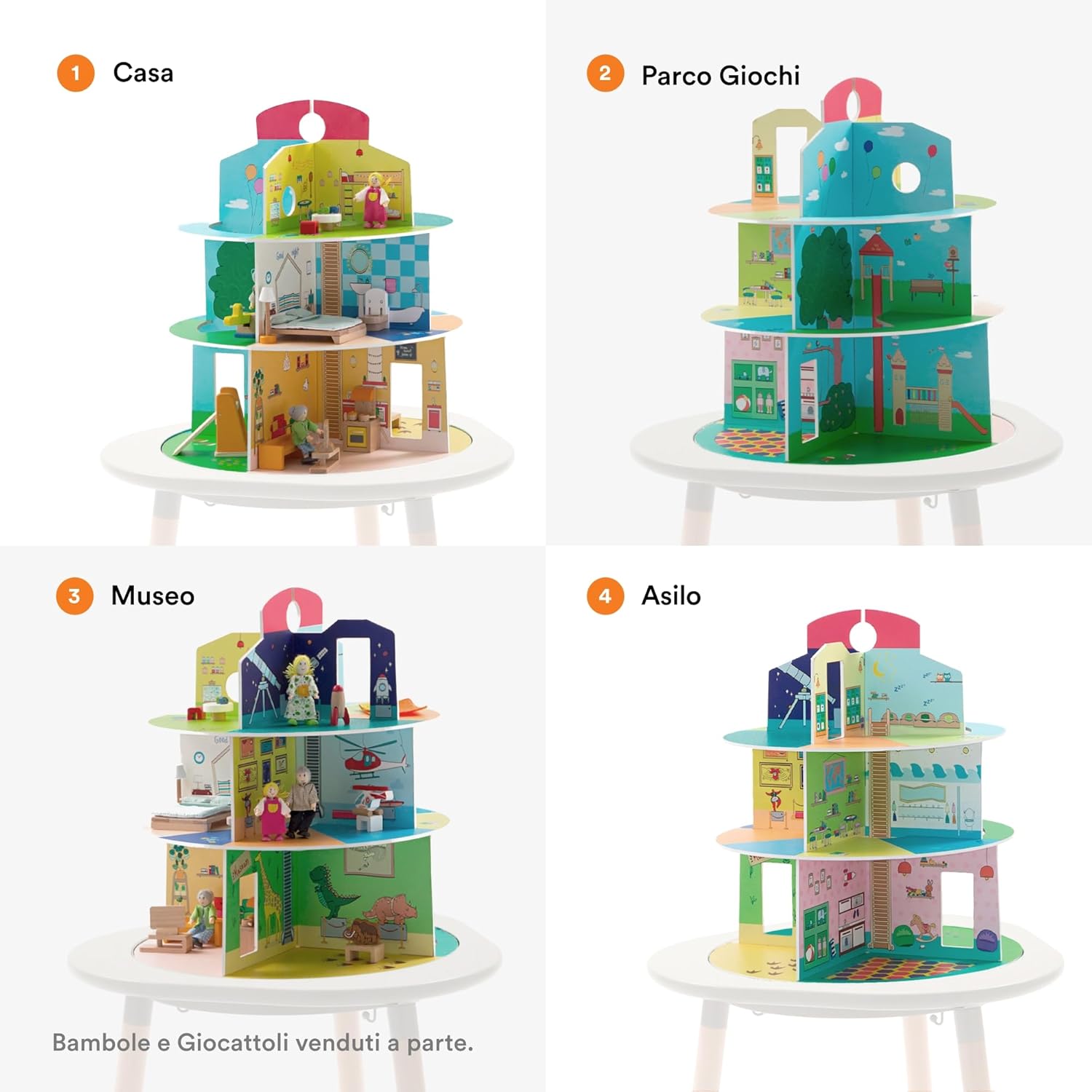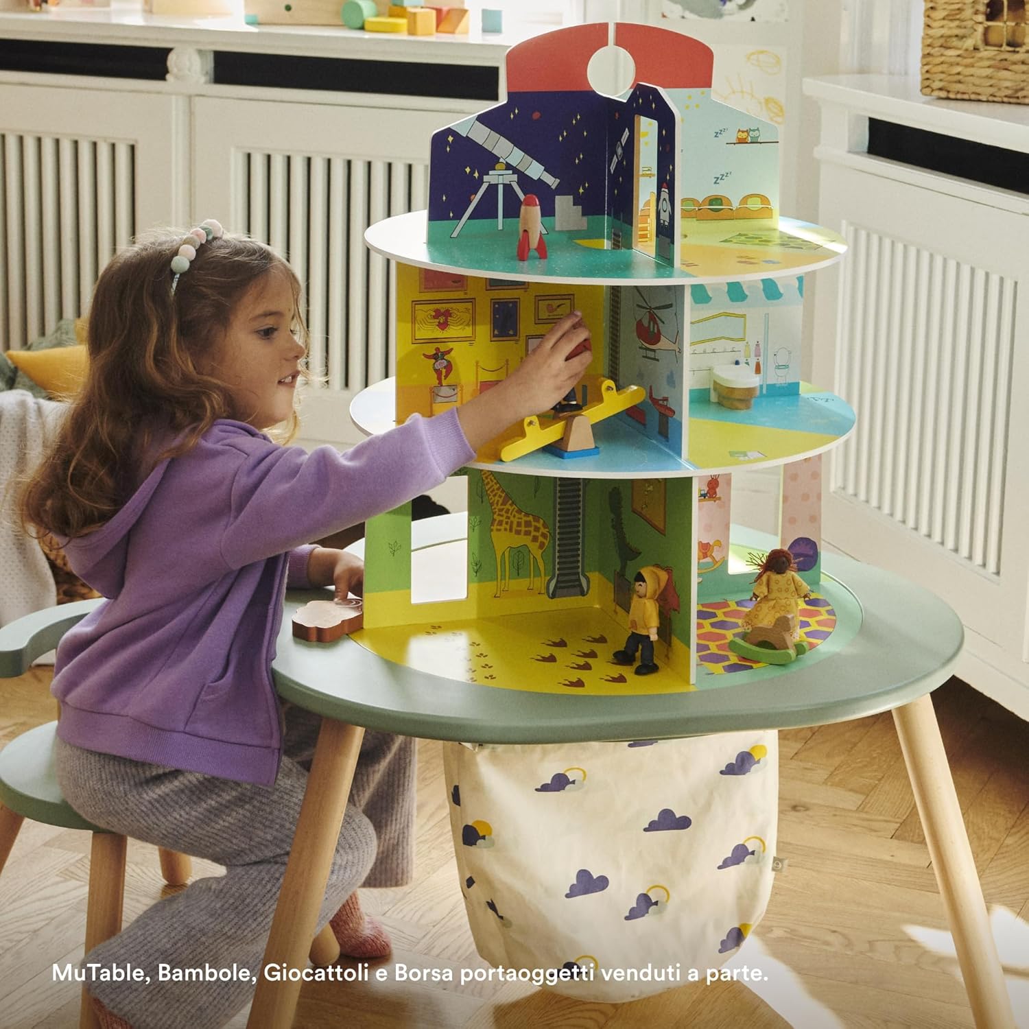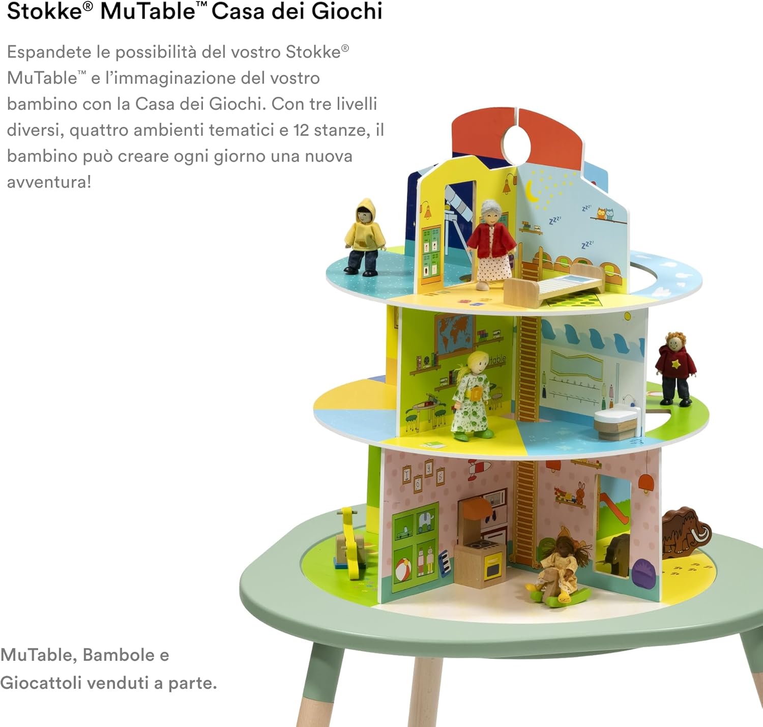 AVVENTURE INFINITE - Espandere le possibilità del vostro Stokke MuTable e l'immaginazione del vostro bambino con la Casa dei Giochi. Con 3 livelli diversi, 4 ambienti tematici e 12 stanze, il bambino può creare ogni giorno una nuova avventura! AMBIENTI TEMATIZZATI - La Casa dei Giochi presenta un Parco Giochi con un maestoso castello, una Casa completa di scale in legno, un Museo con animali esotici e dinosauri e un Asilo. STIMOLARE LA CREATIVITÀ - Incoraggiate i vostri piccoli a essere creativi e a inventare le loro storie. Sia che giochino da soli o con fratelli e amici, questo stile di gioco favorisce lo sviluppo e il coinvolgimento. FACILE DA USARE, CONSERVARE E PULIRE - La Casa dei Giochi in legno si adatta perfettamente al MuTable e non richiede viti, può essere appiattita e riposta facilmente quando non è in uso! Inoltre, è facile da pulire. DESIGN CON UNO SCOPO - Stokke è entrata nel settore dei mobili e degli accessori per bambini nel 1972 e da allora tutti i nostri prodotti sono stati progettati per sfidare l'ordinario, favorire uno sviluppo sano e alimentare il legame familiare.